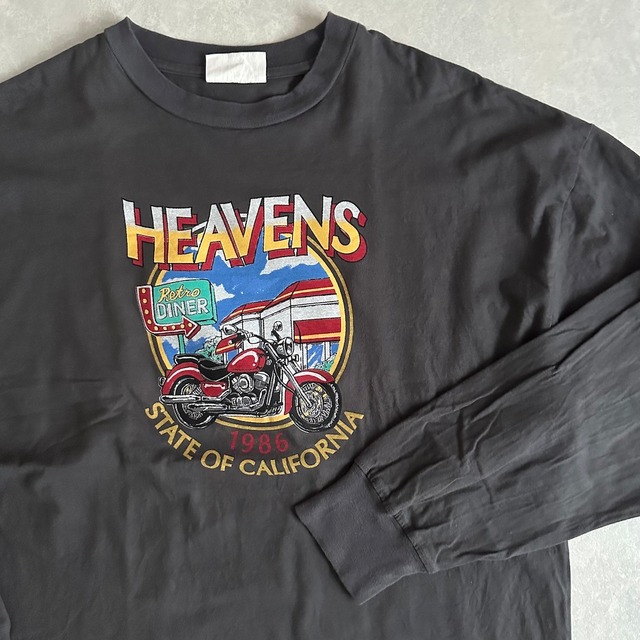 ヴィンテージ風アメカジバイクプリントクルーネックロングスリーブカットソー長袖Tシャツ グレー F 古着 メンズ