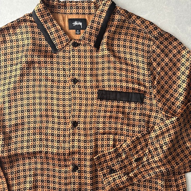 【STUSSY】モノグラム風グラフィカル総柄シャツ 総柄 M 古着 メンズ