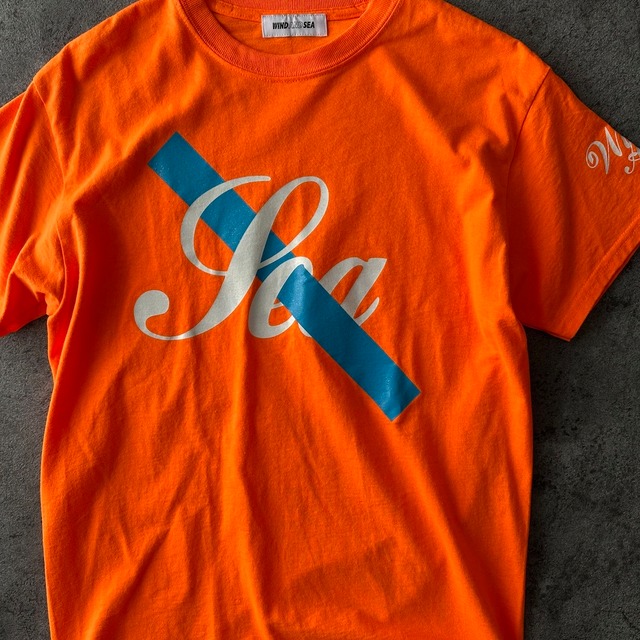 【WIND AND SEA】美品プリント半袖Tシャツ オレンジ M 古着 メンズ