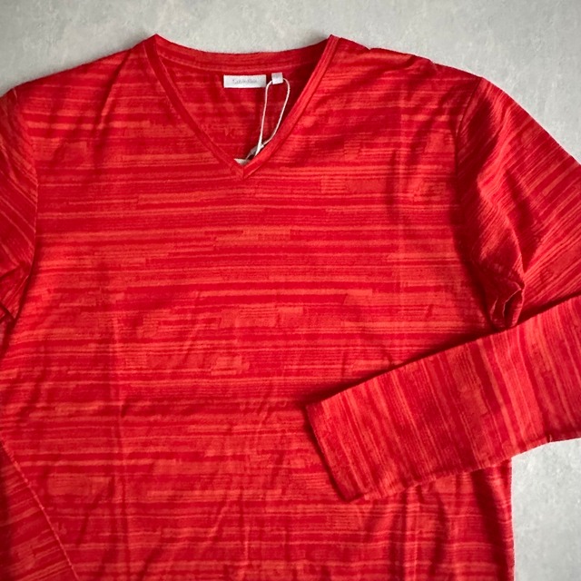 【Calvin Klein】Vネックボーダーロングスリーブカットソー長袖Tシャツ ボーダー柄 M 古着 メンズ