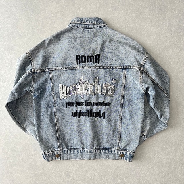 ビジュースパンコール刺繍デニムジャケット ブルー F 古着 メンズ