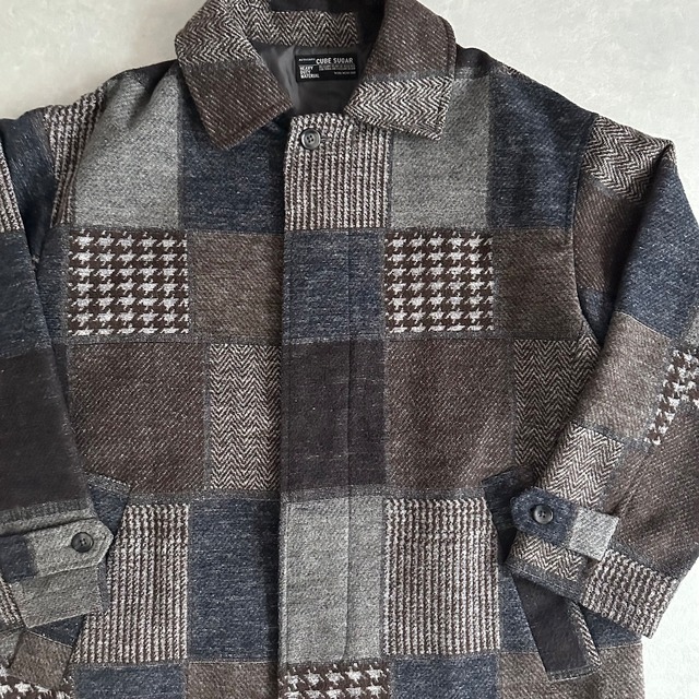 クレイジーチェックステンカラーコート チェック柄 M 古着 メンズ