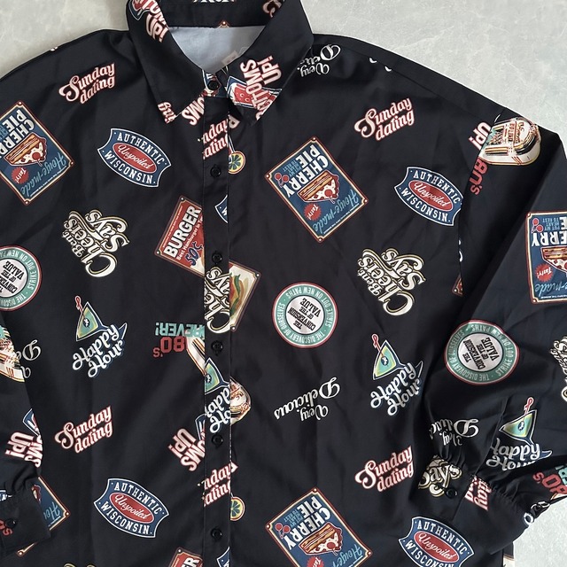 アメリカングラフィックポップ柄シャツ 総柄 L 古着 レディース