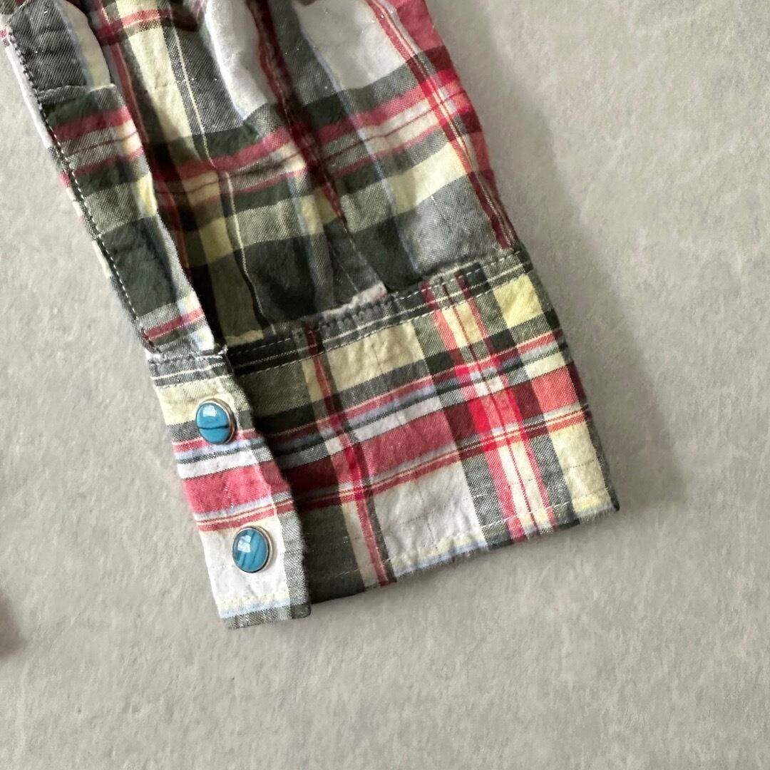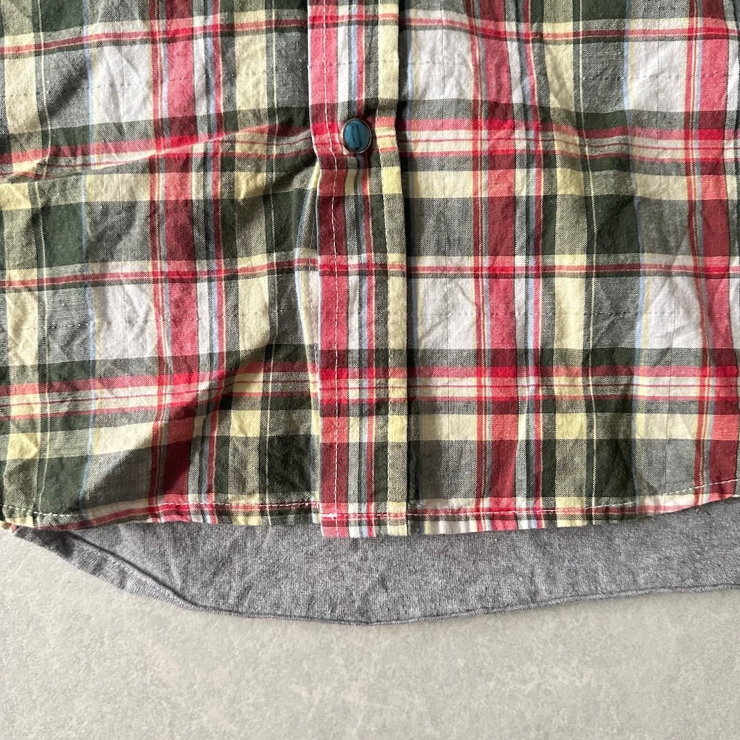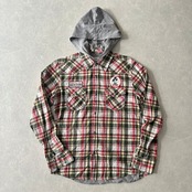 取り外しフード付きチェック柄ワッペンシャツ チェック柄 M 古着 メンズ