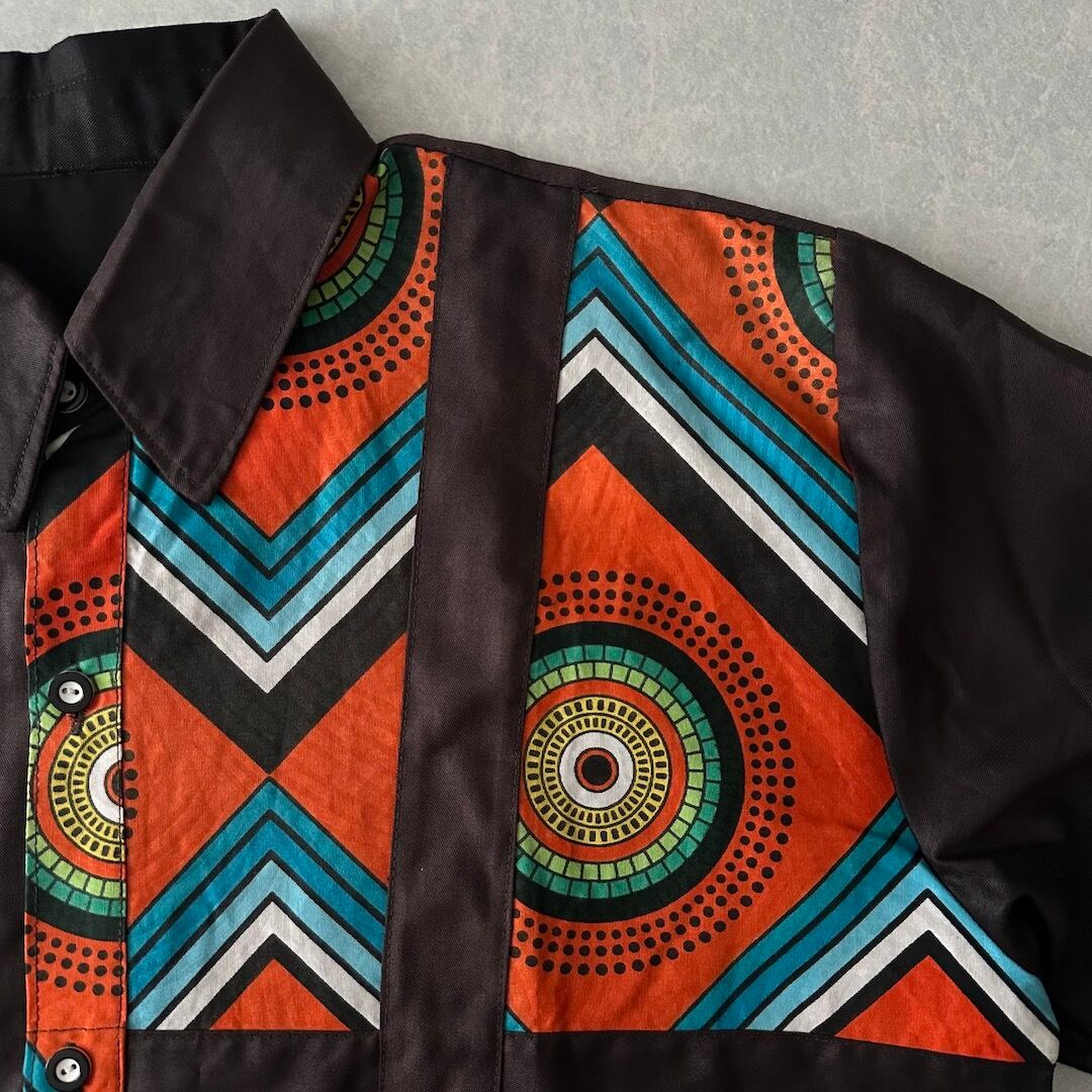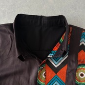 アジアンネイティブ柄アシンメトリー半袖シャツ ブラウン L 古着 メンズ