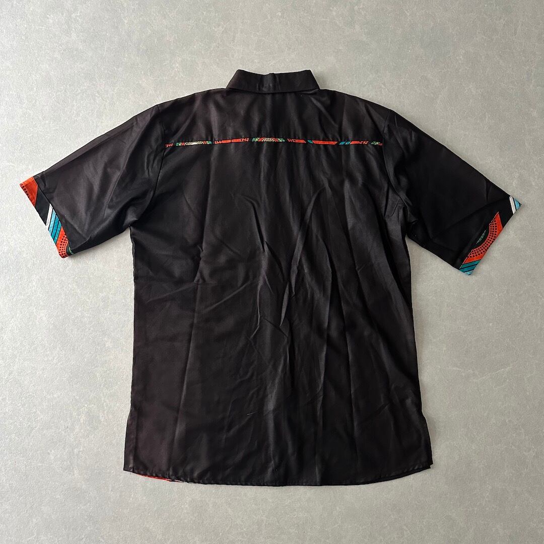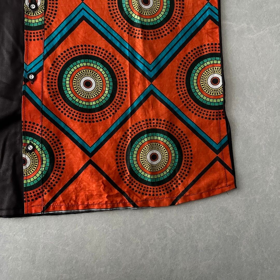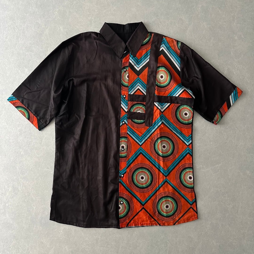 アジアン ネイティブ柄 アシンメトリー 半袖 シャツ ブラウン L 古着 メンズ 古着男子 オレンジ