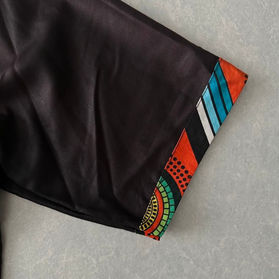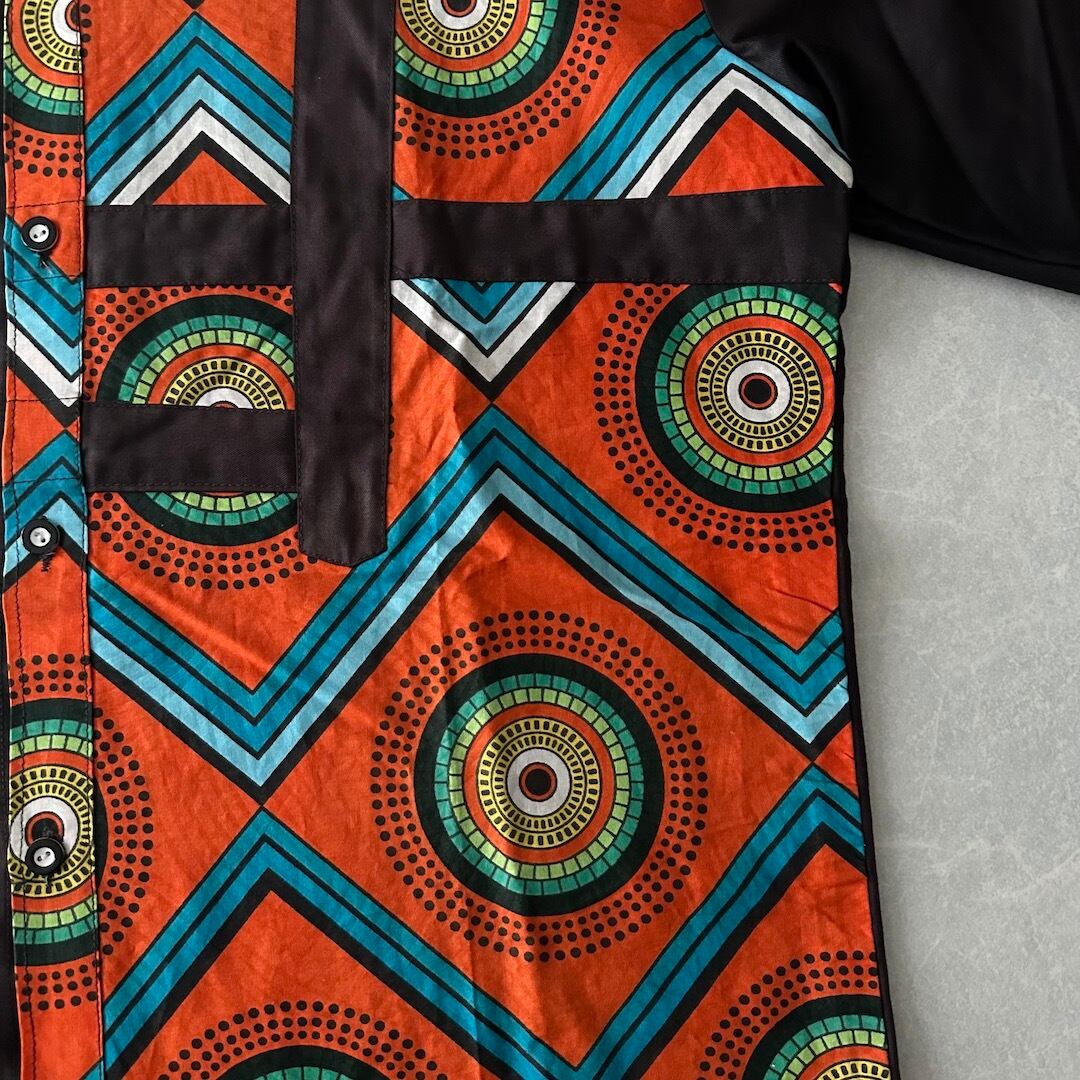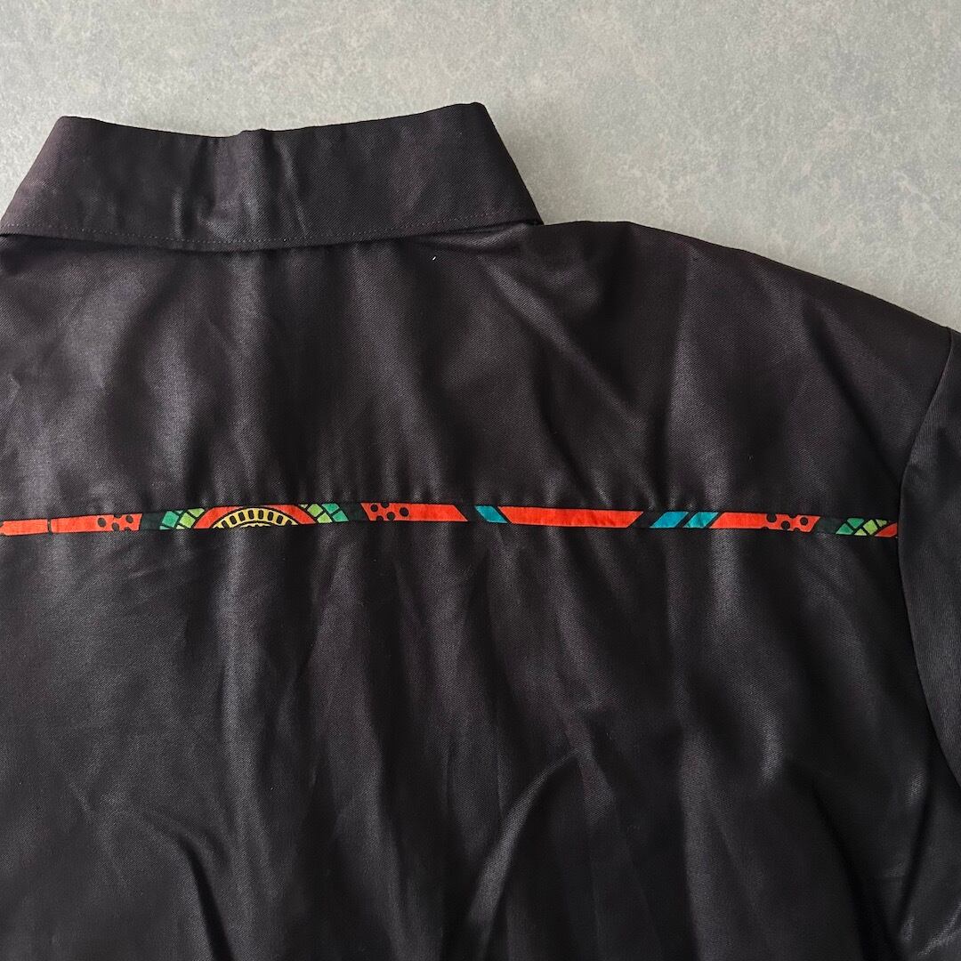 アジアン ネイティブ柄 アシンメトリー 半袖 シャツ ブラウン L 古着 メンズ 古着男子 オレンジ