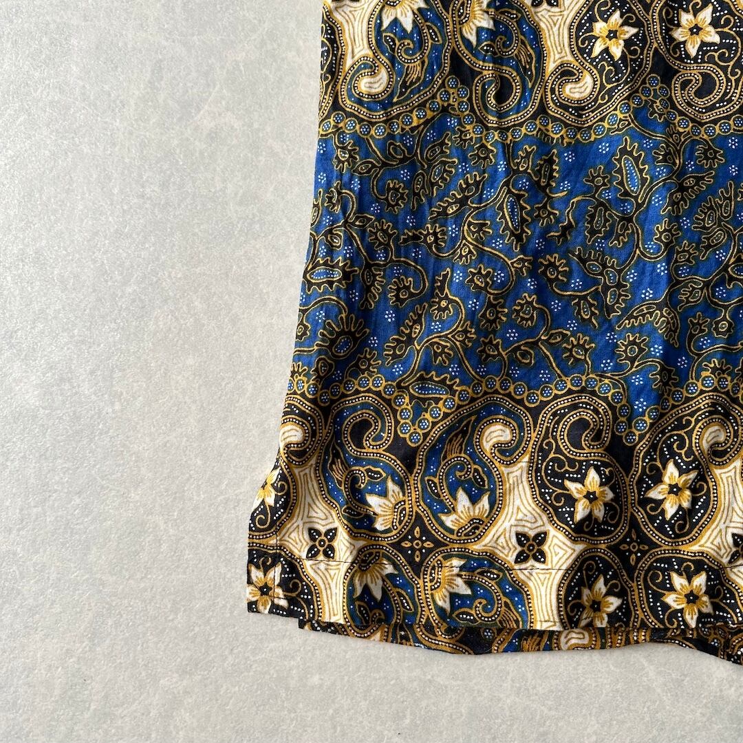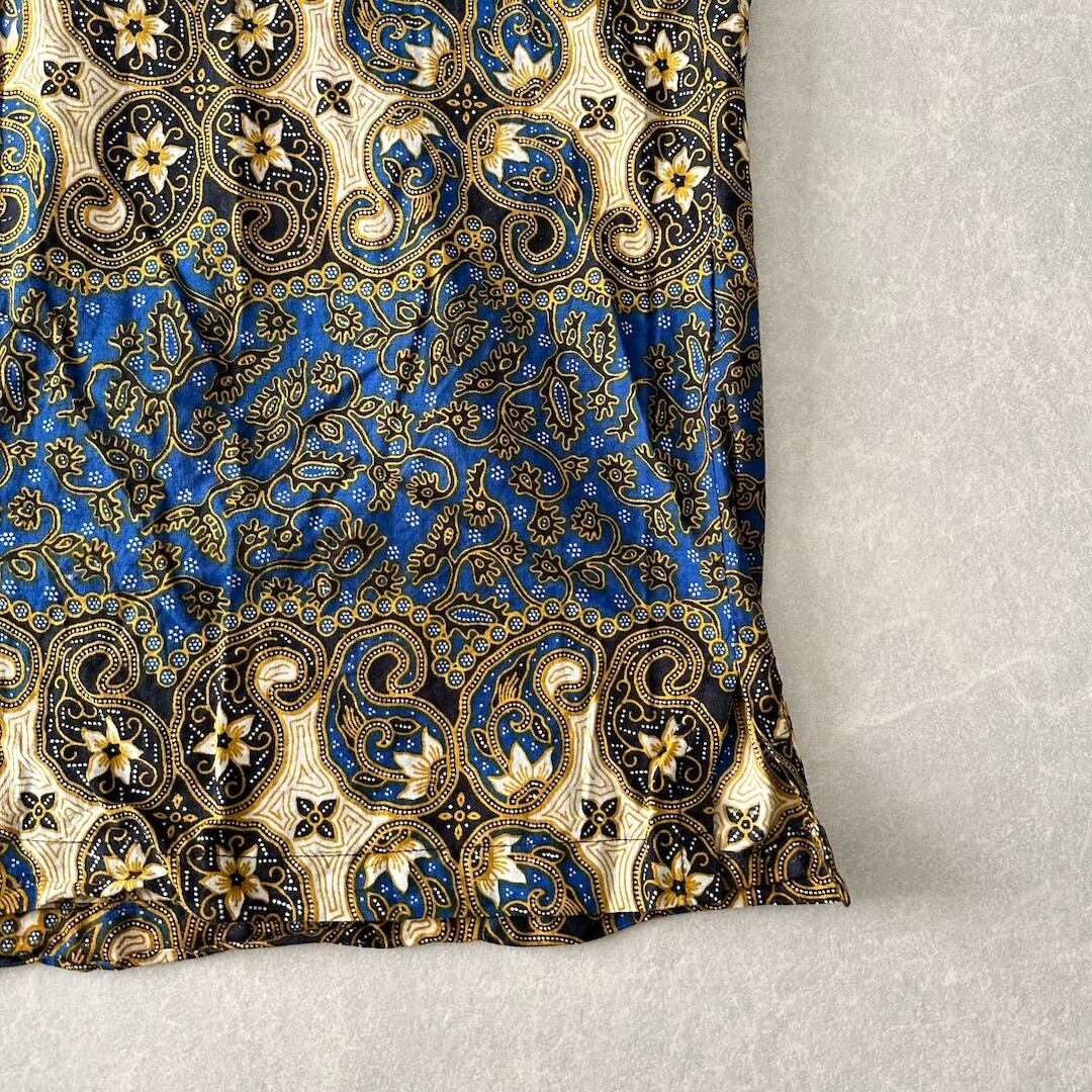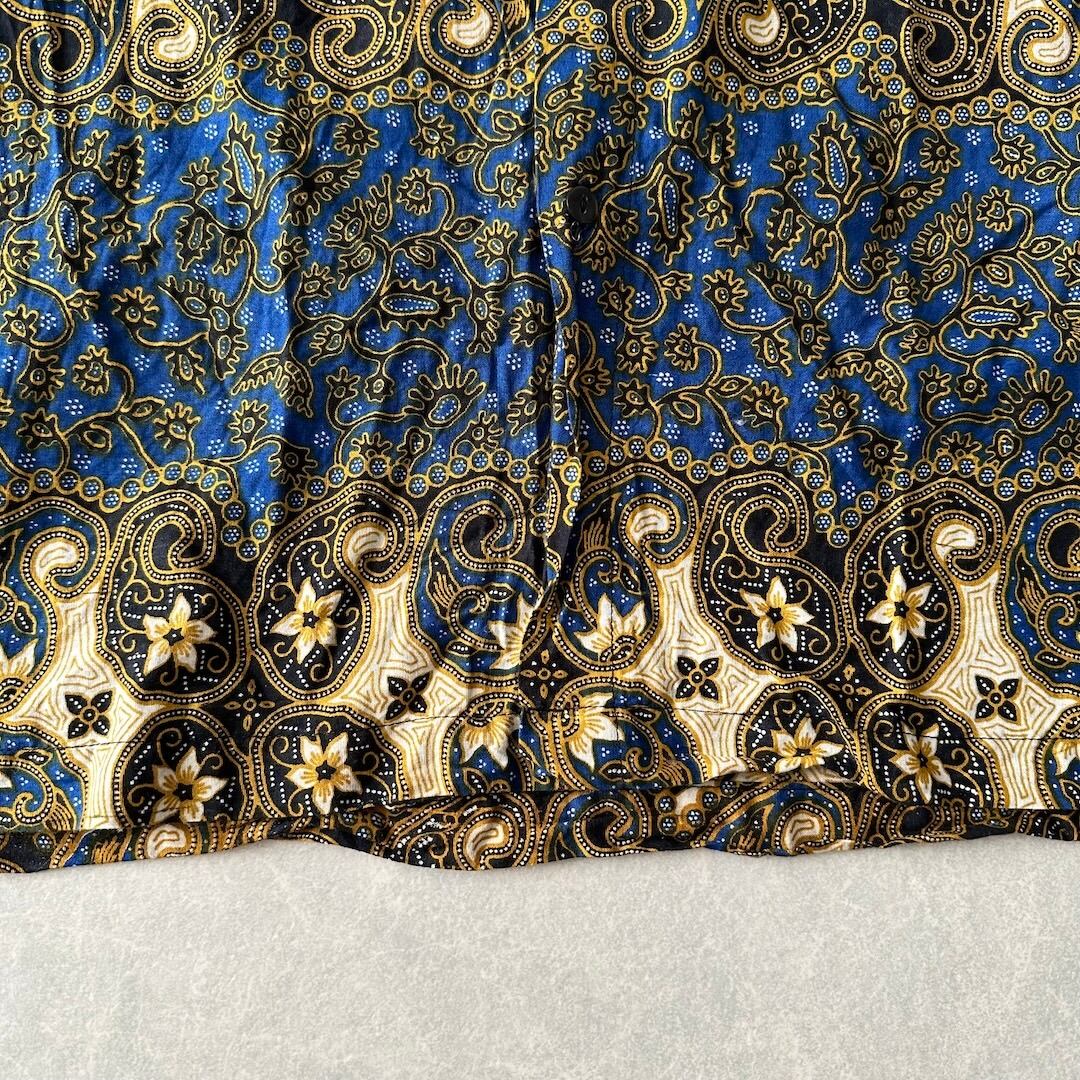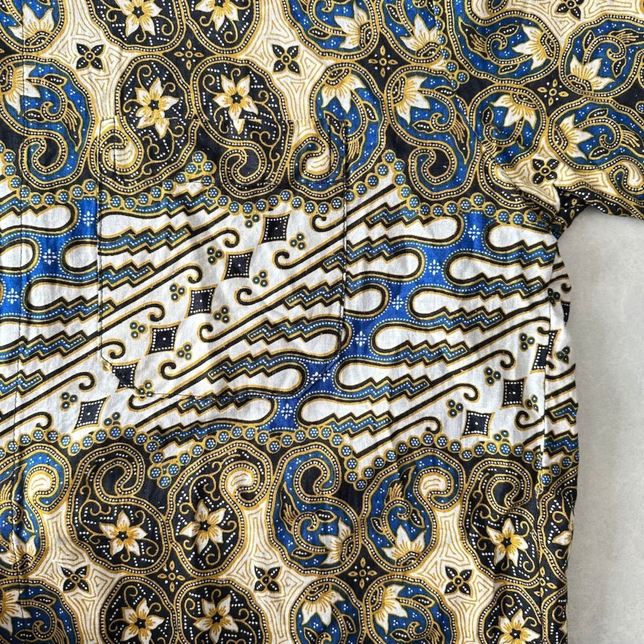ペイズリー柄 半袖 シャツ 総柄 XXL 古着 メンズ 古着男子 ブランド古着 ブルー ゴールド 青 金色 ネイティブ インド