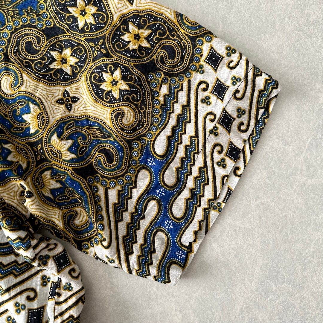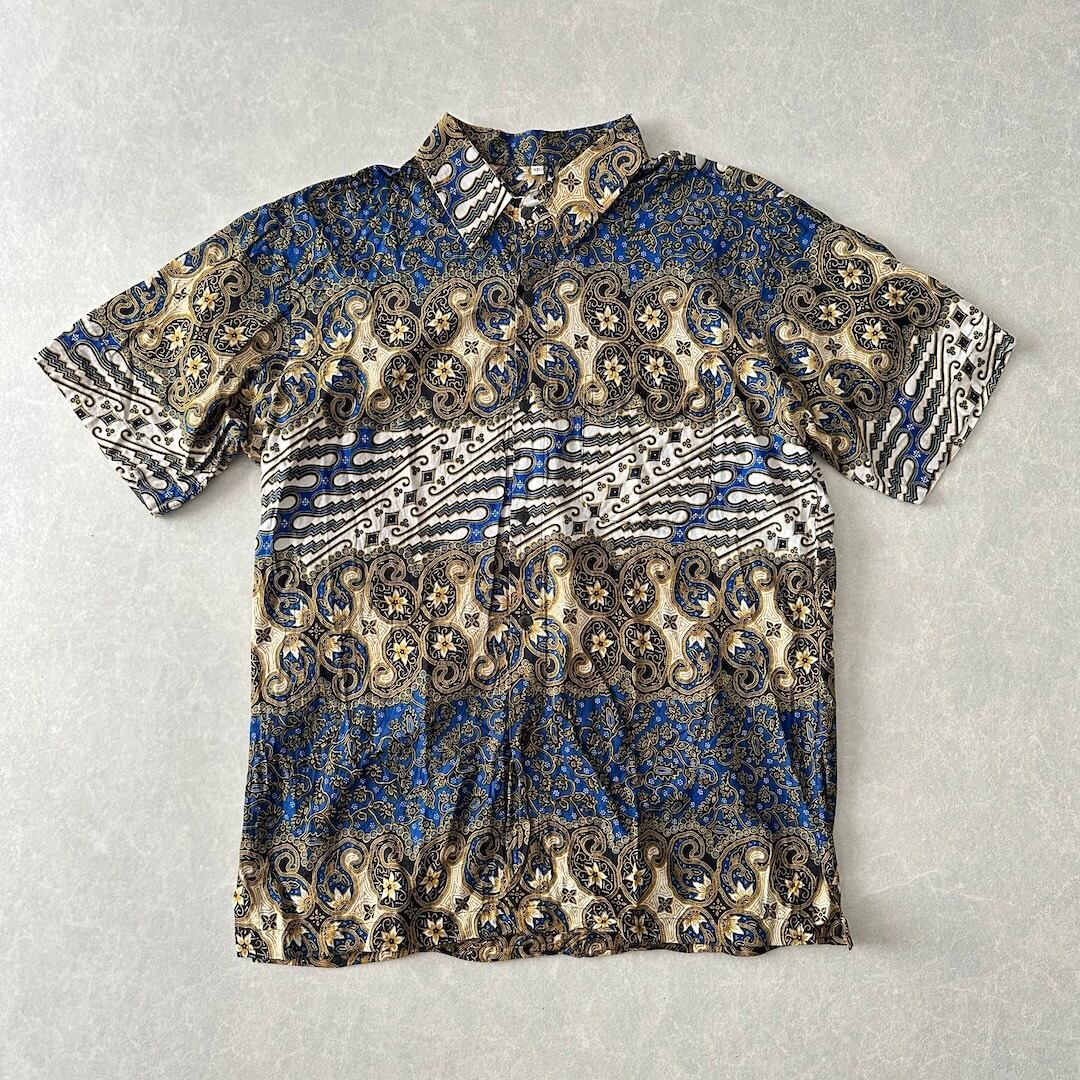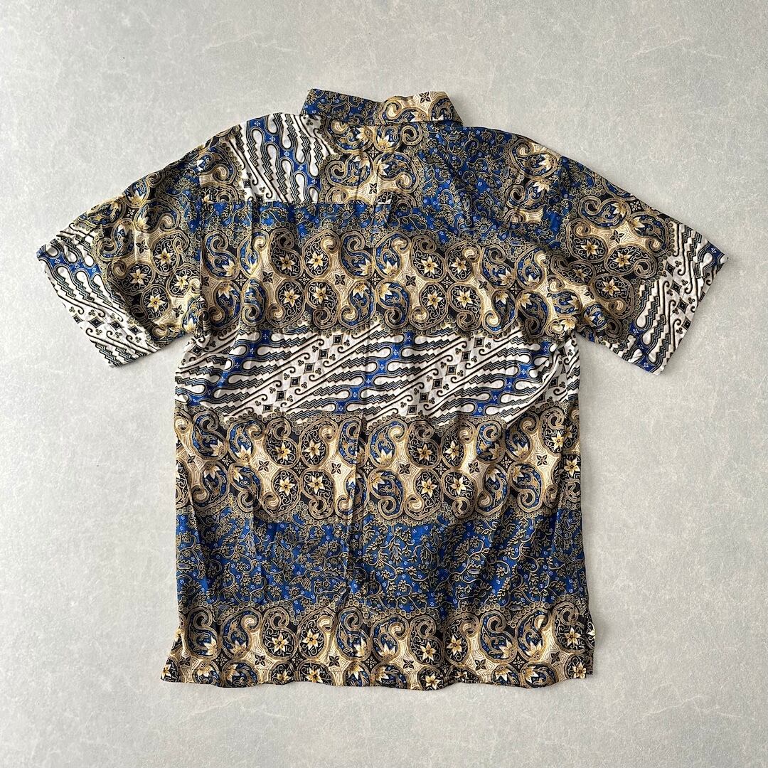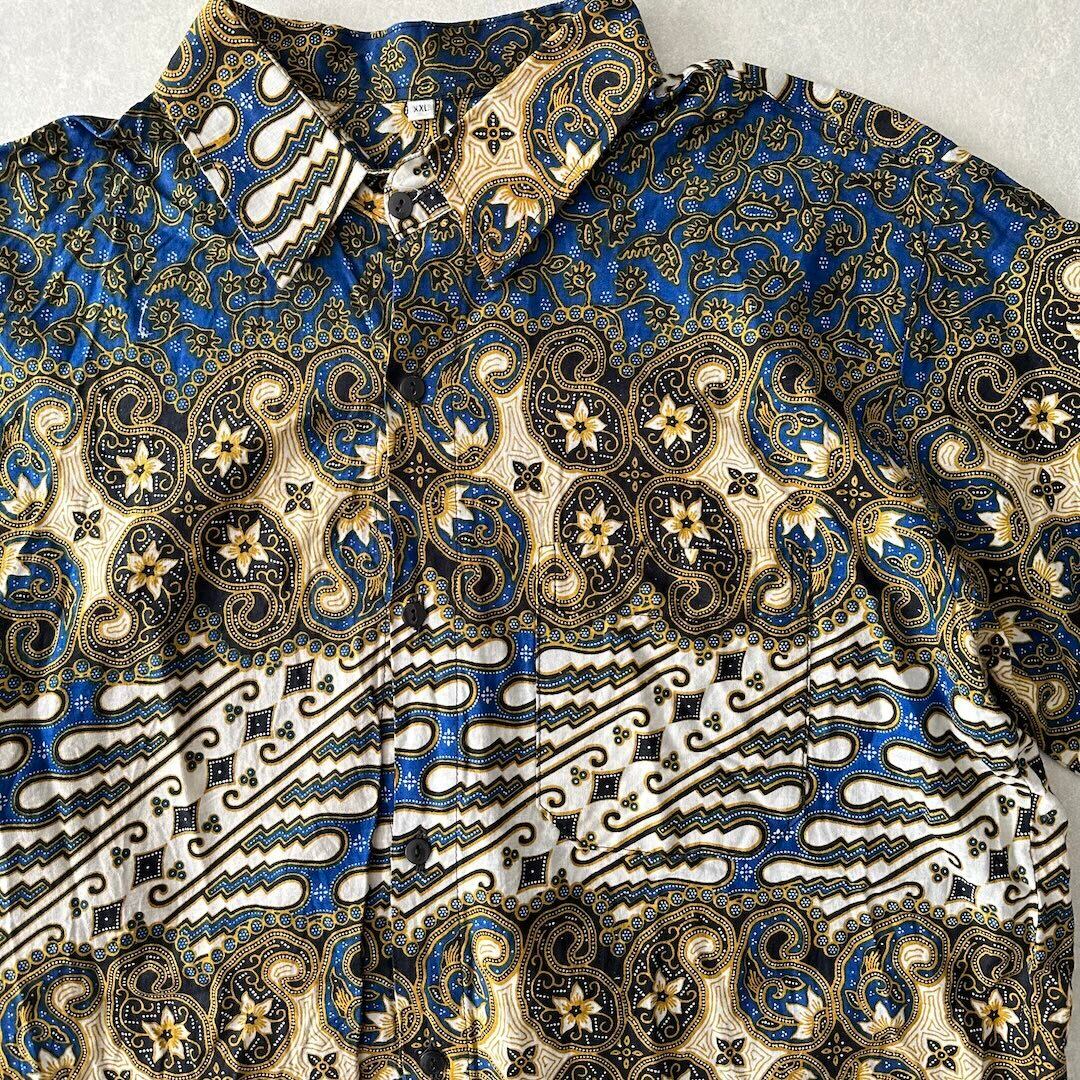 ペイズリー柄 半袖 シャツ 総柄 XXL 古着 メンズ 古着男子 ブランド古着 ブルー ゴールド 青 金色 ネイティブ インド
