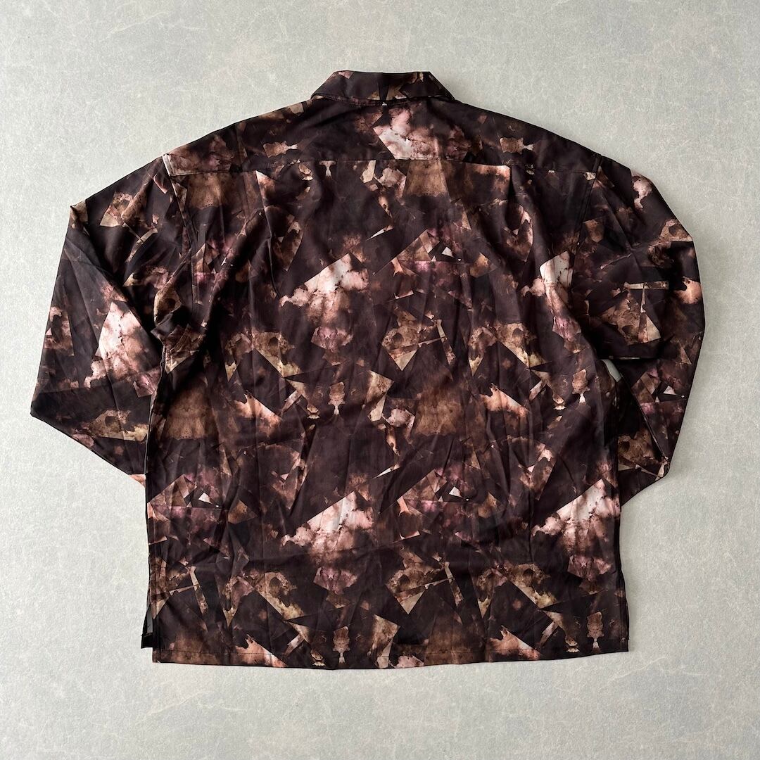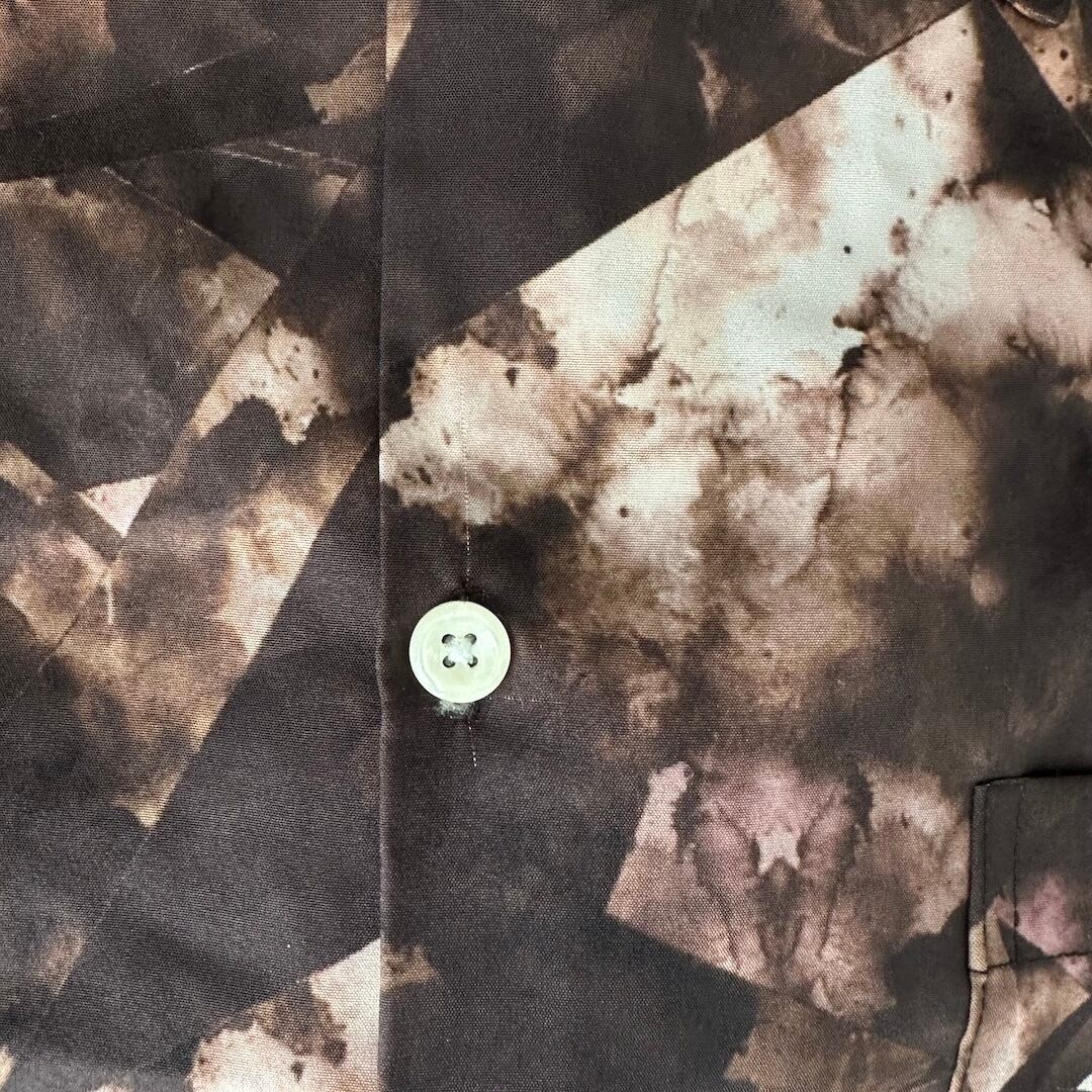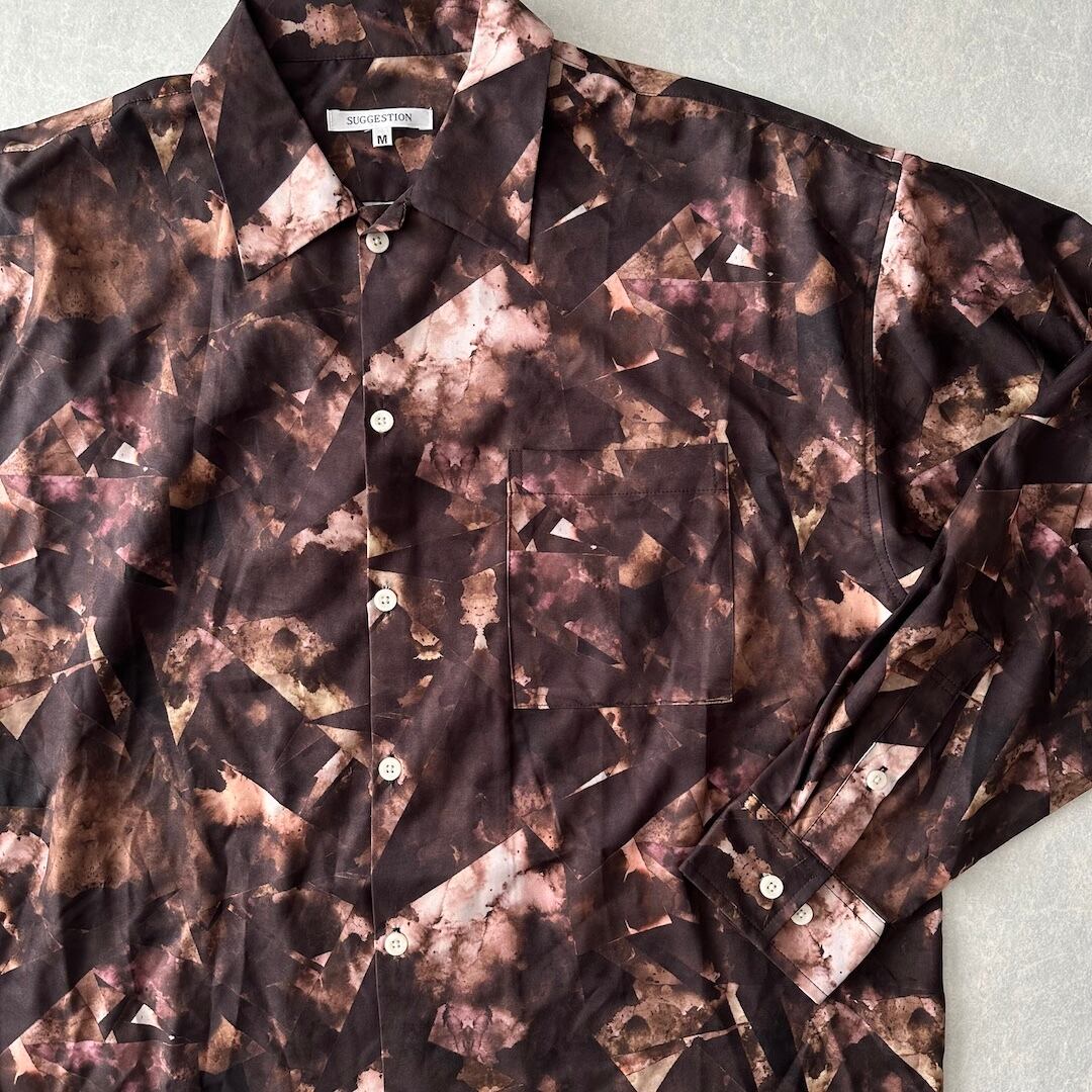 幾何学柄 長袖 シャツ 総柄 M 古着 メンズ 古着男子 アート ブラウン