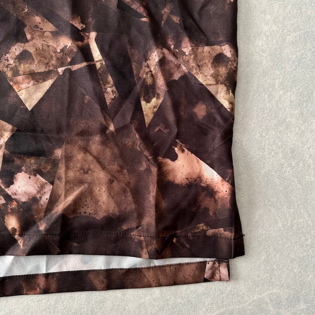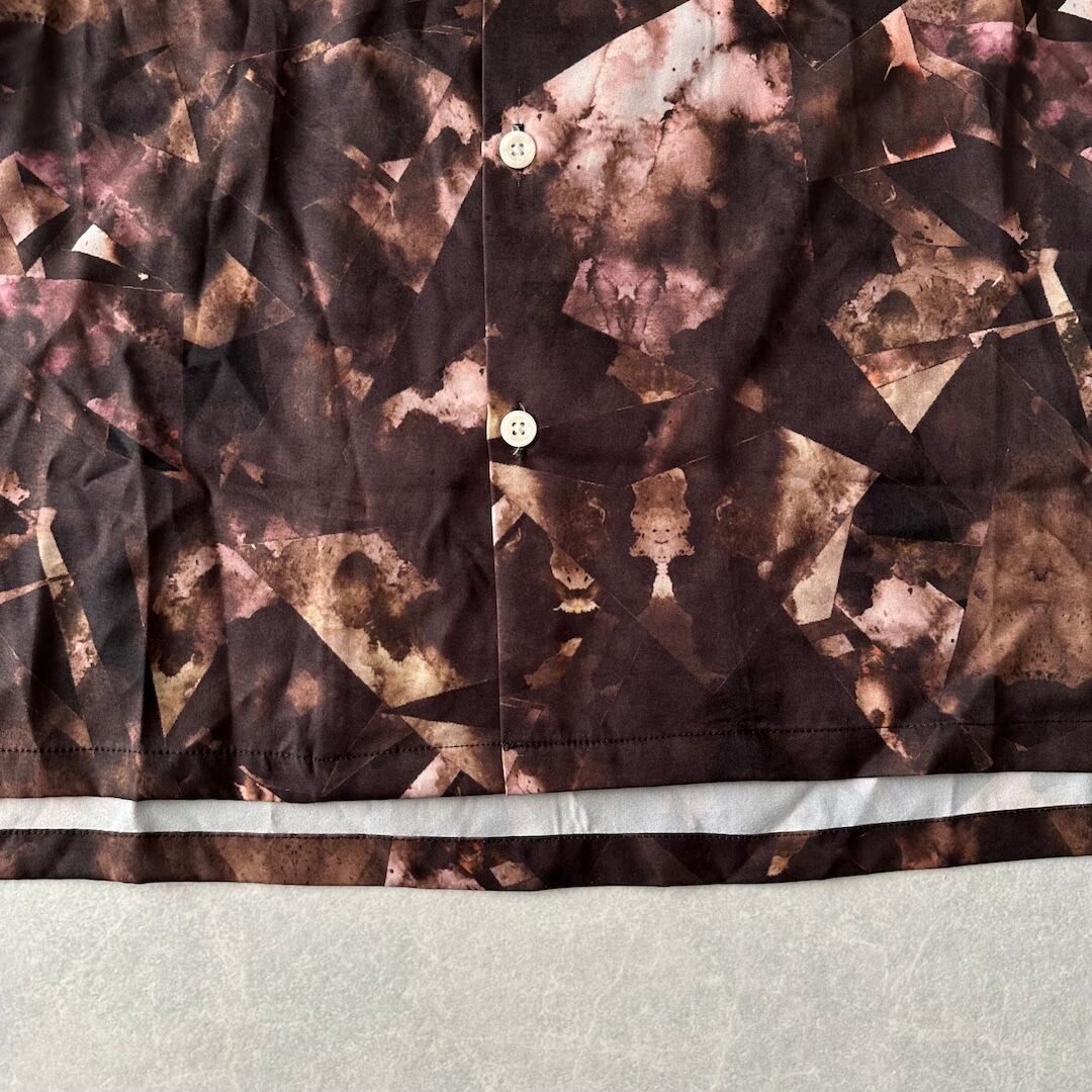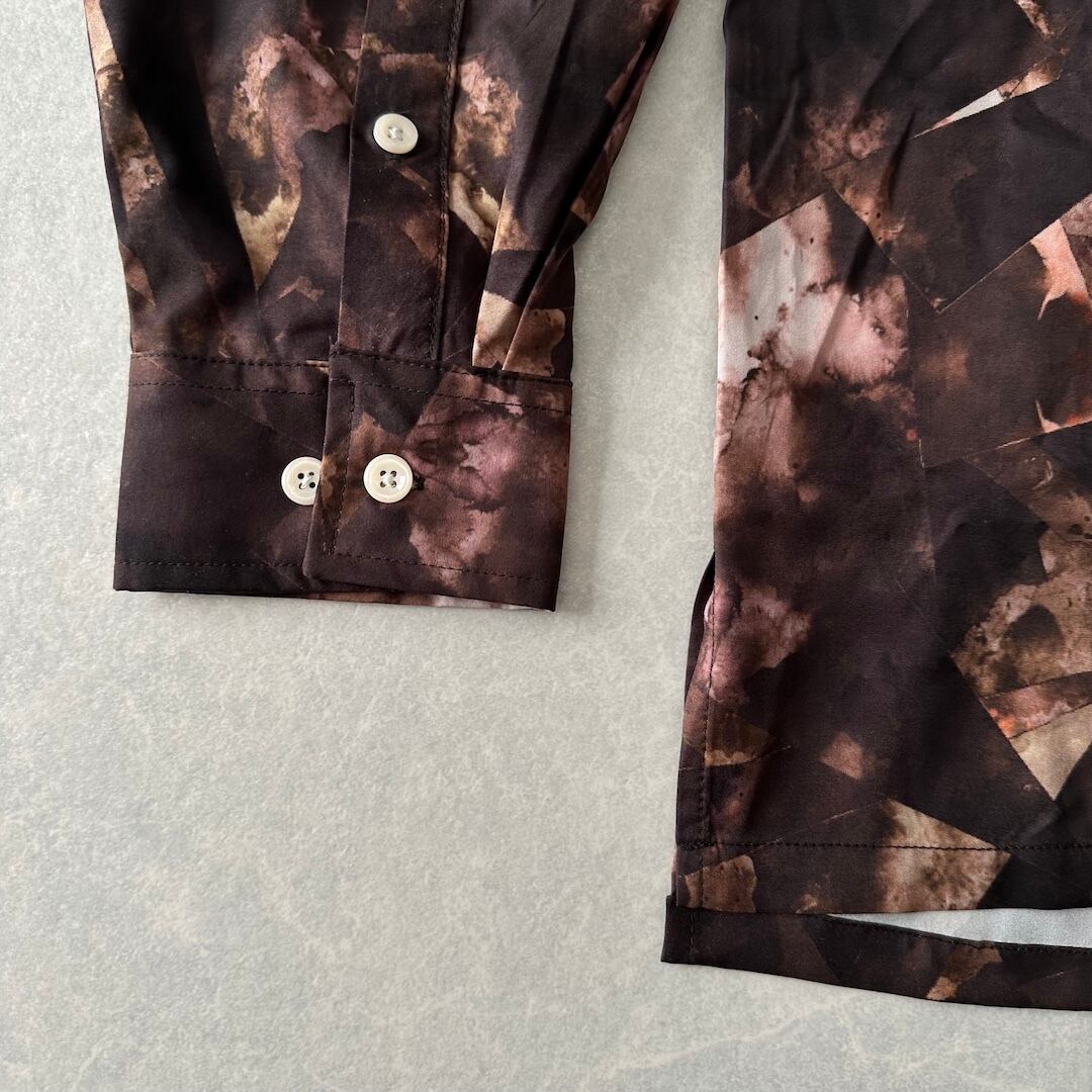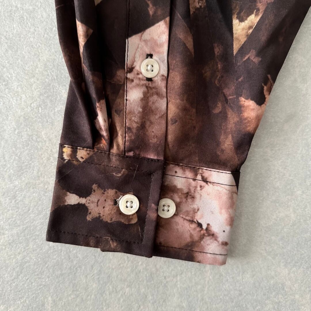 幾何学柄 長袖 シャツ 総柄 M 古着 メンズ 古着男子 アート ブラウン