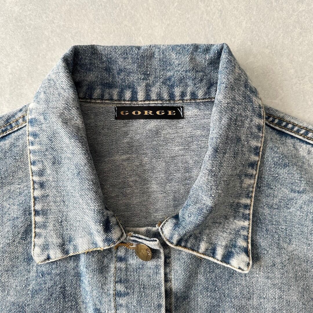 ビジュースパンコール刺繍デニムジャケット ブルー F 古着 メンズ