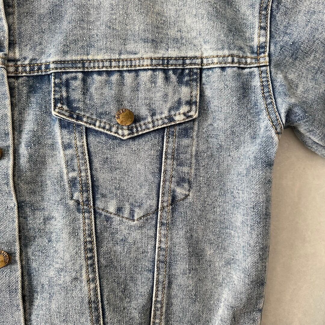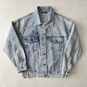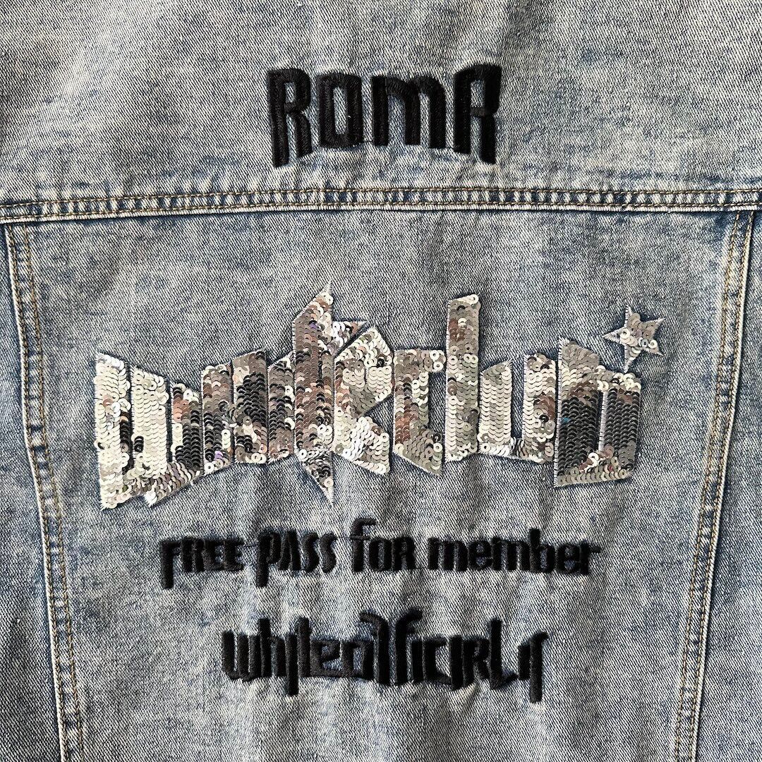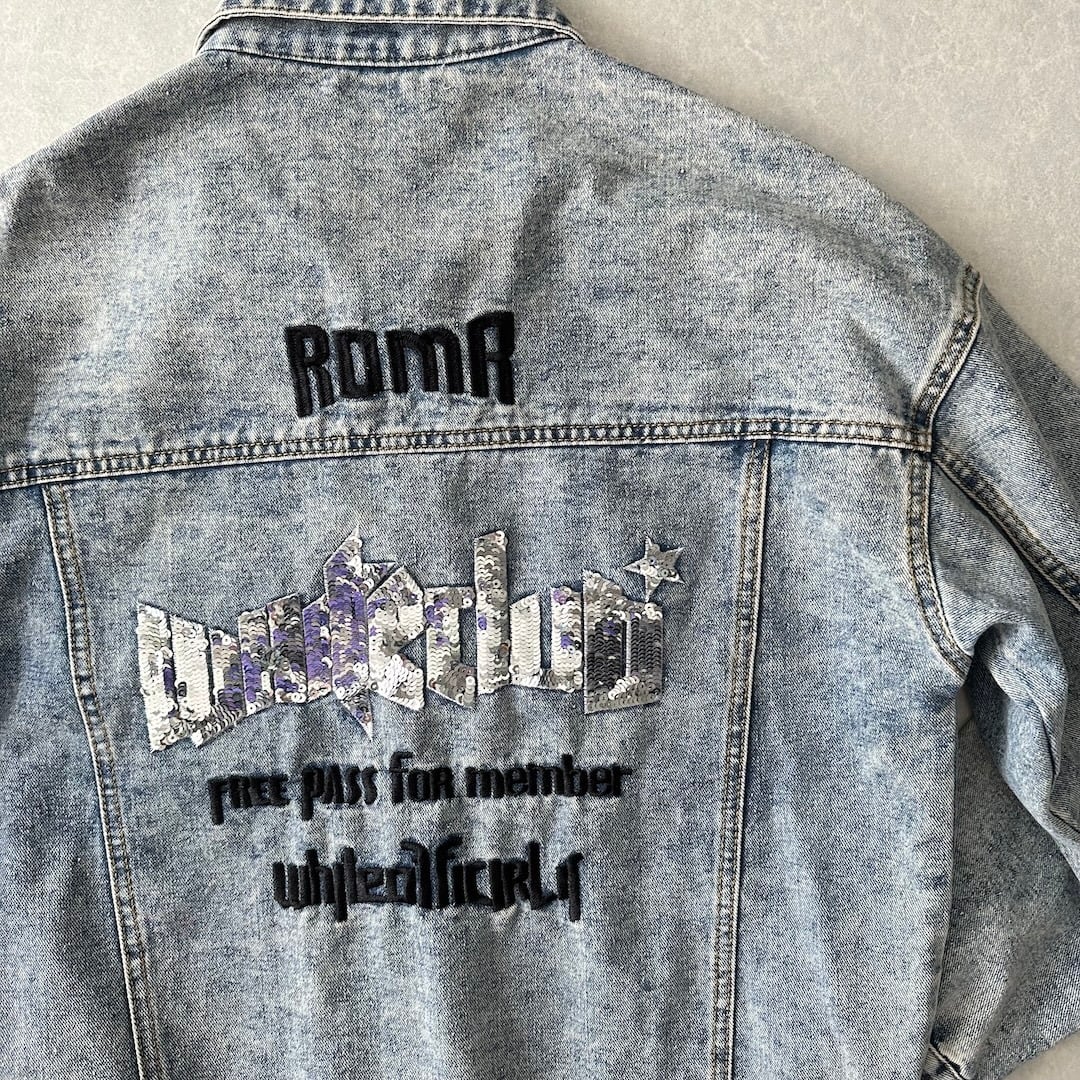 ビジュー スパンコール 刺繍 デニム ジャケット ブルー F 古着 メンズ 古着男子 アメカジ古着 ライトブルー バック刺繍