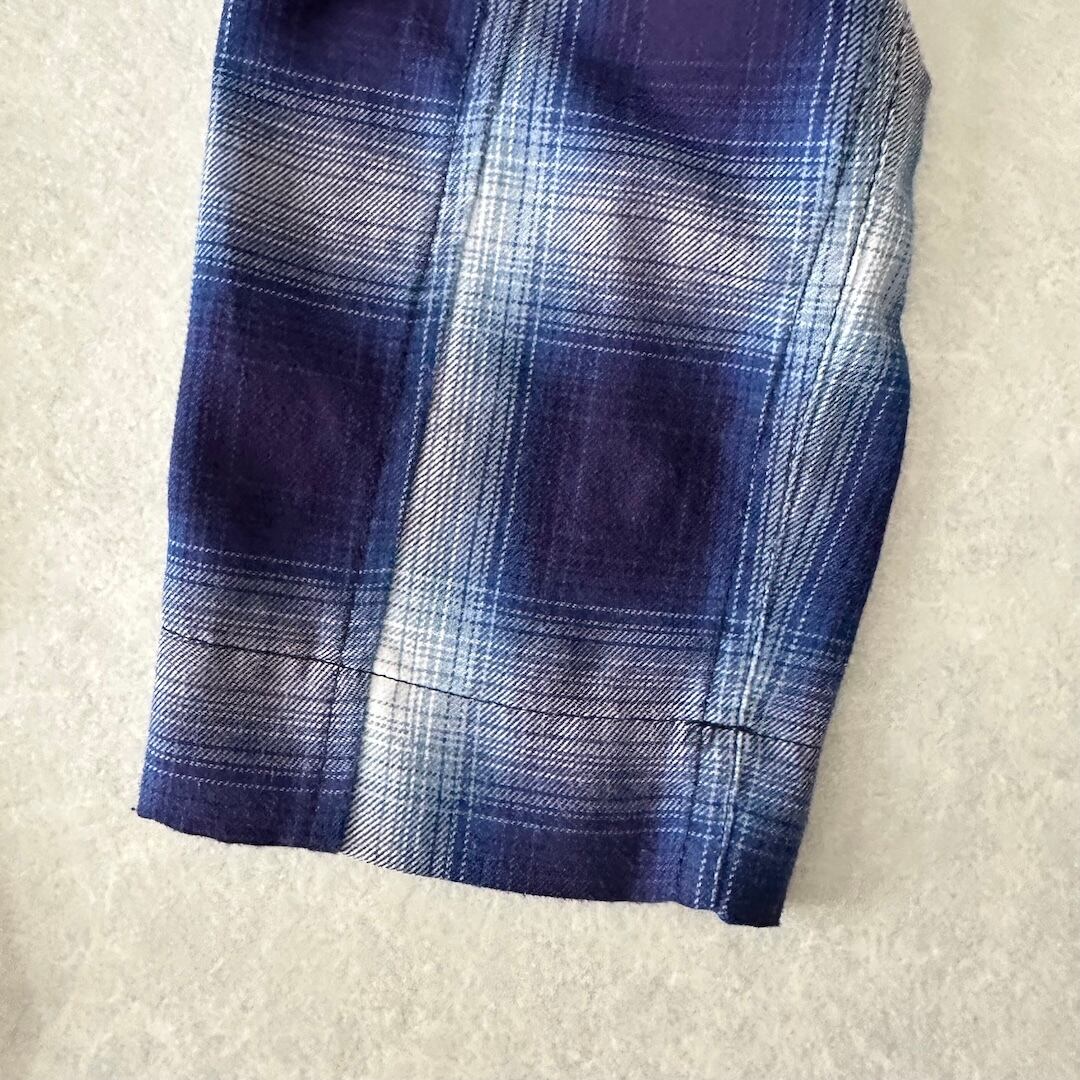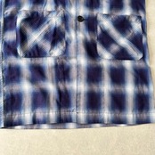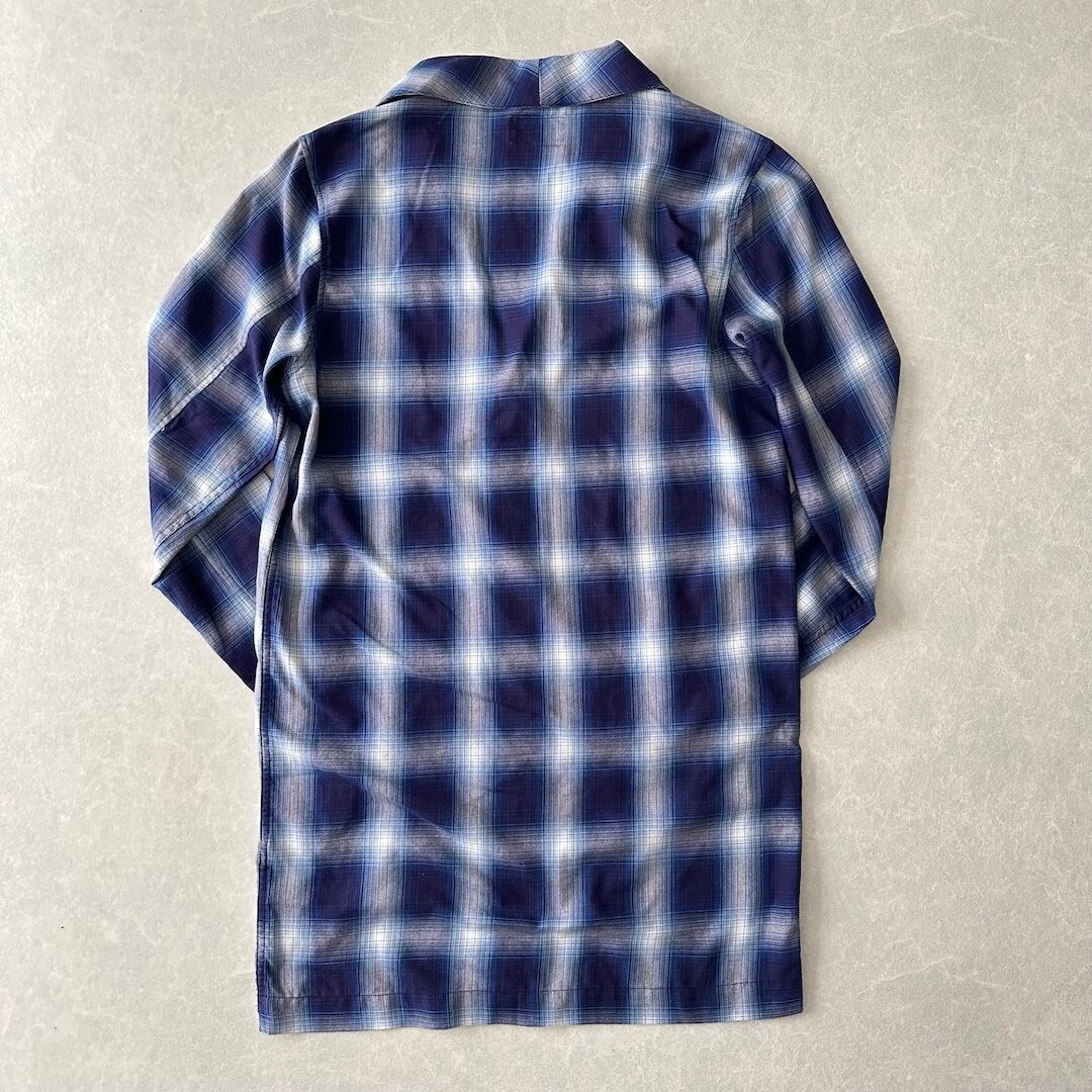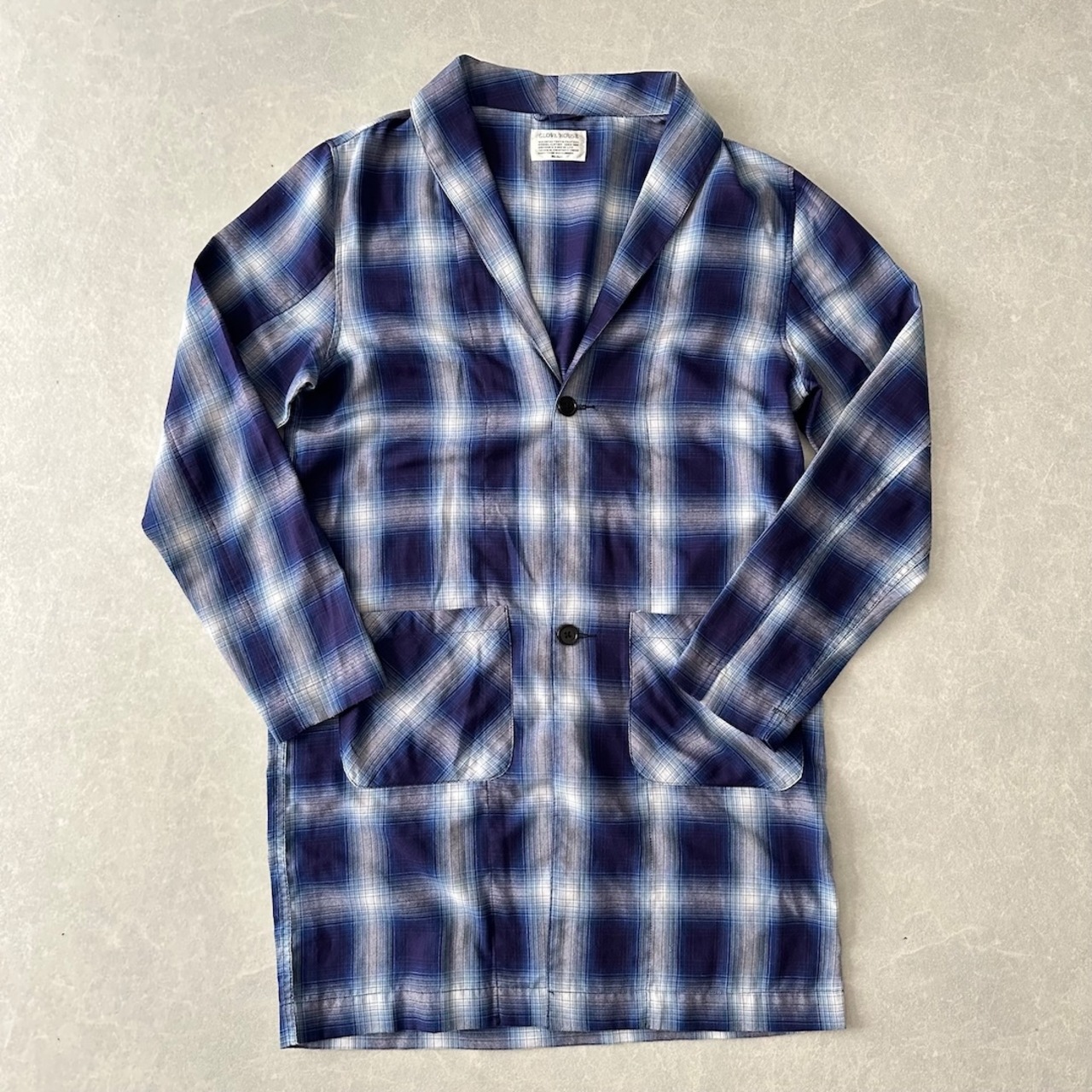チェック柄 ロング丈 シャツ コート チェック柄 M 古着 メンズ 古着男子 アメカジ古着 ブルー 青 ライトアウター