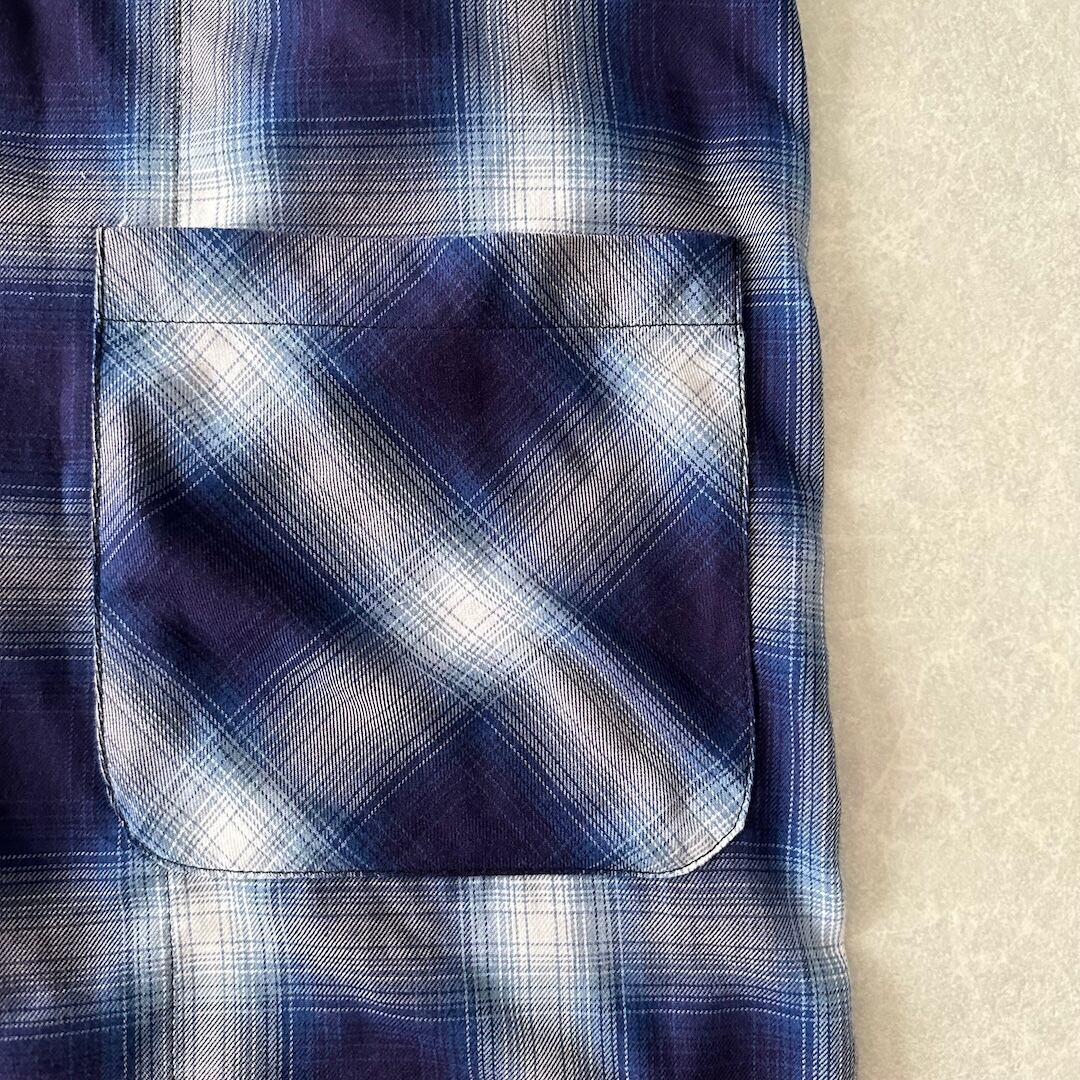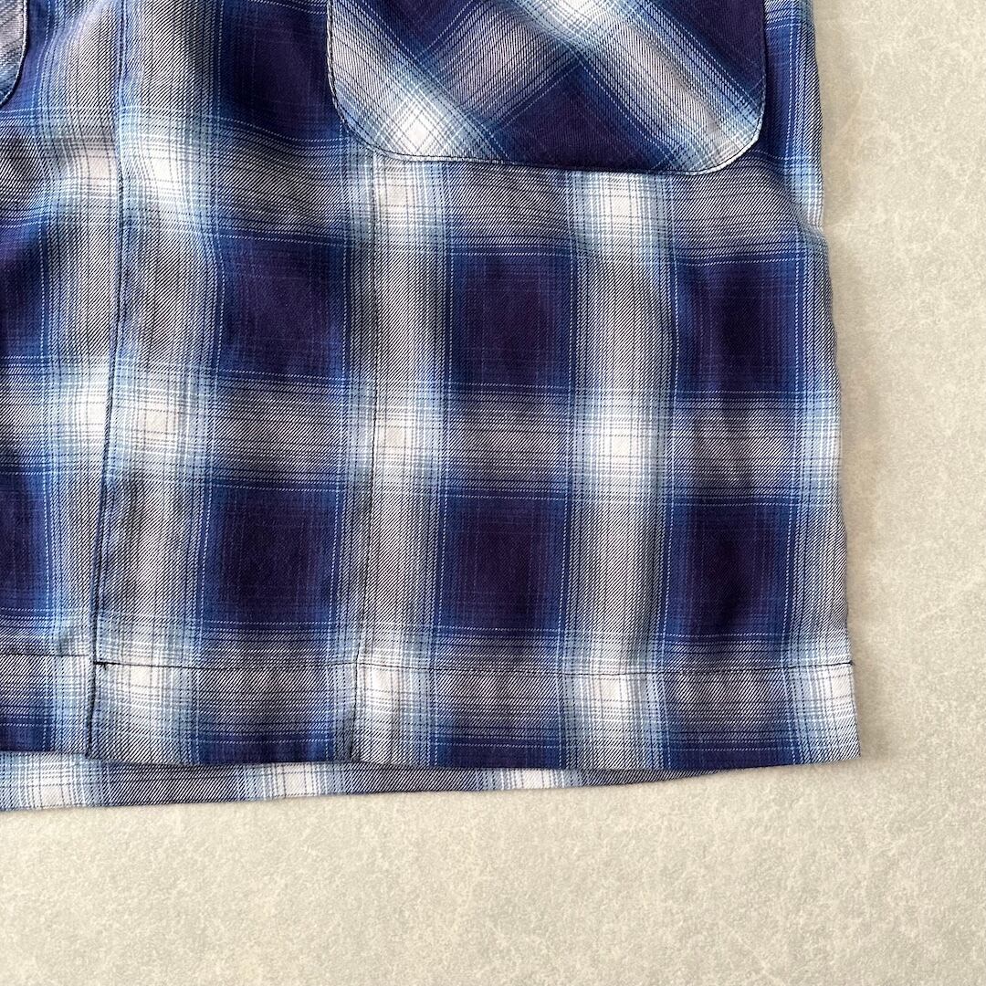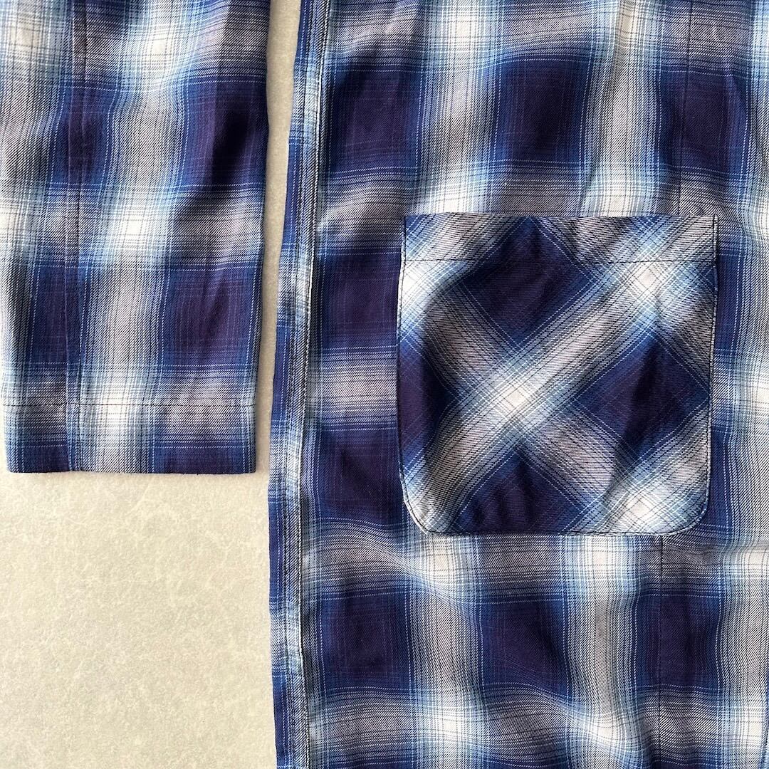 チェック柄 ロング丈 シャツ コート チェック柄 M 古着 メンズ 古着男子 アメカジ古着 ブルー 青 ライトアウター