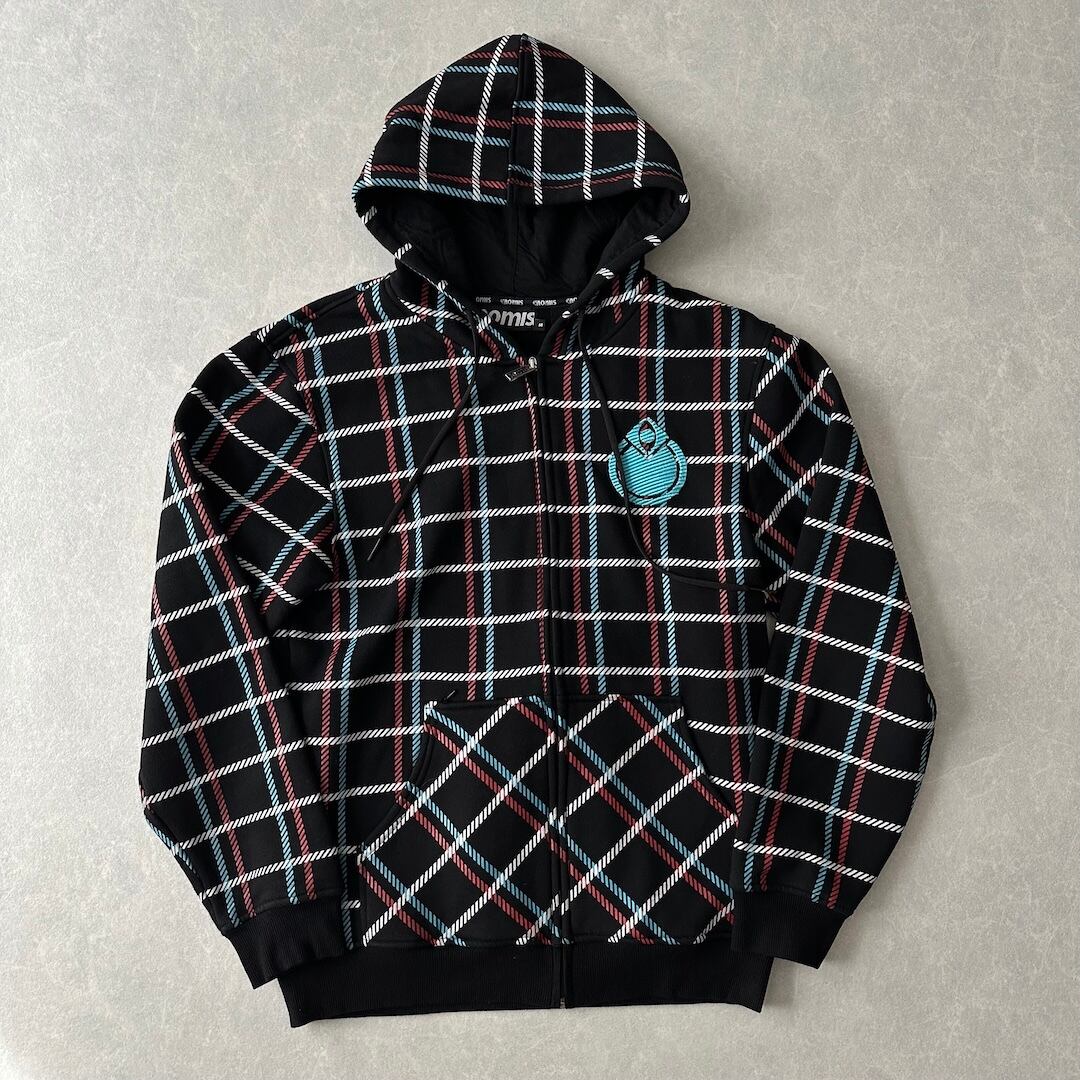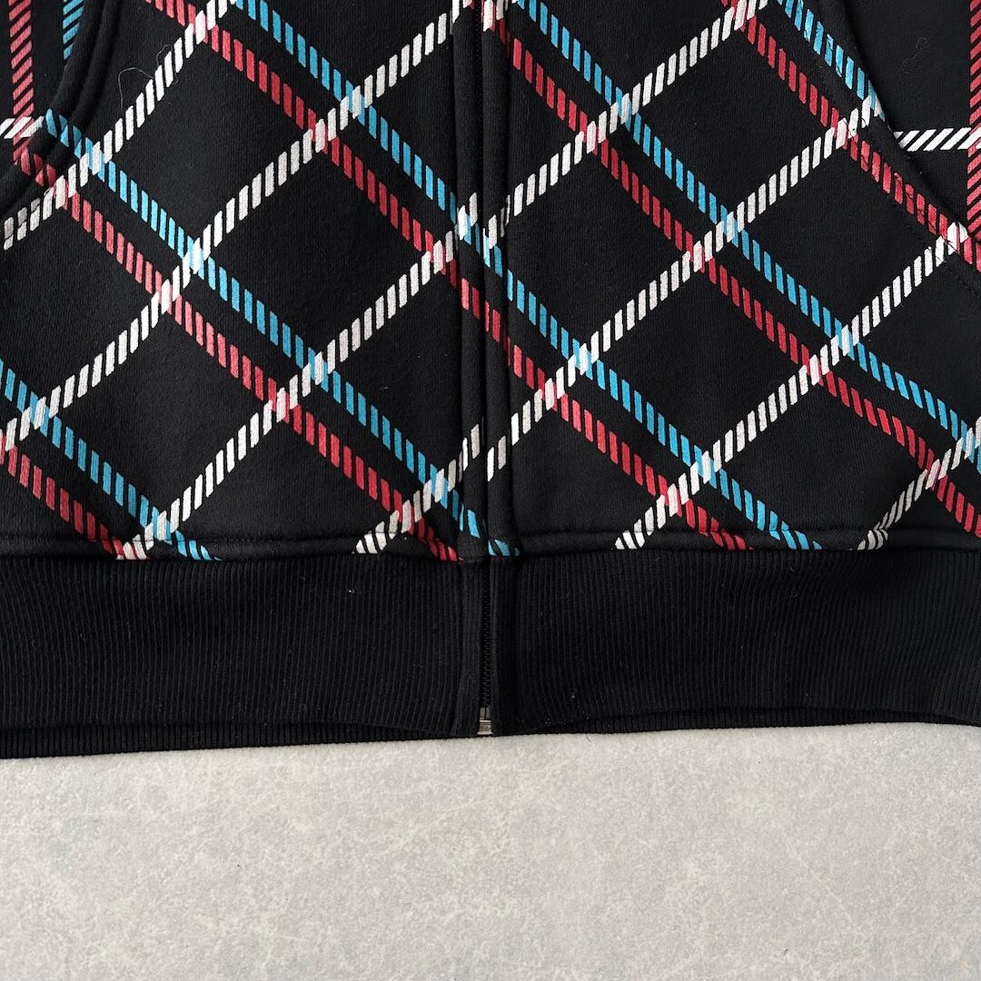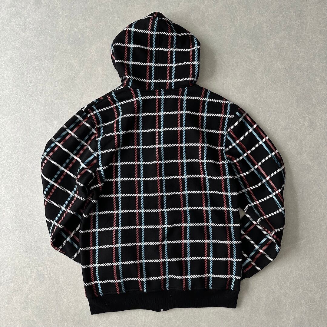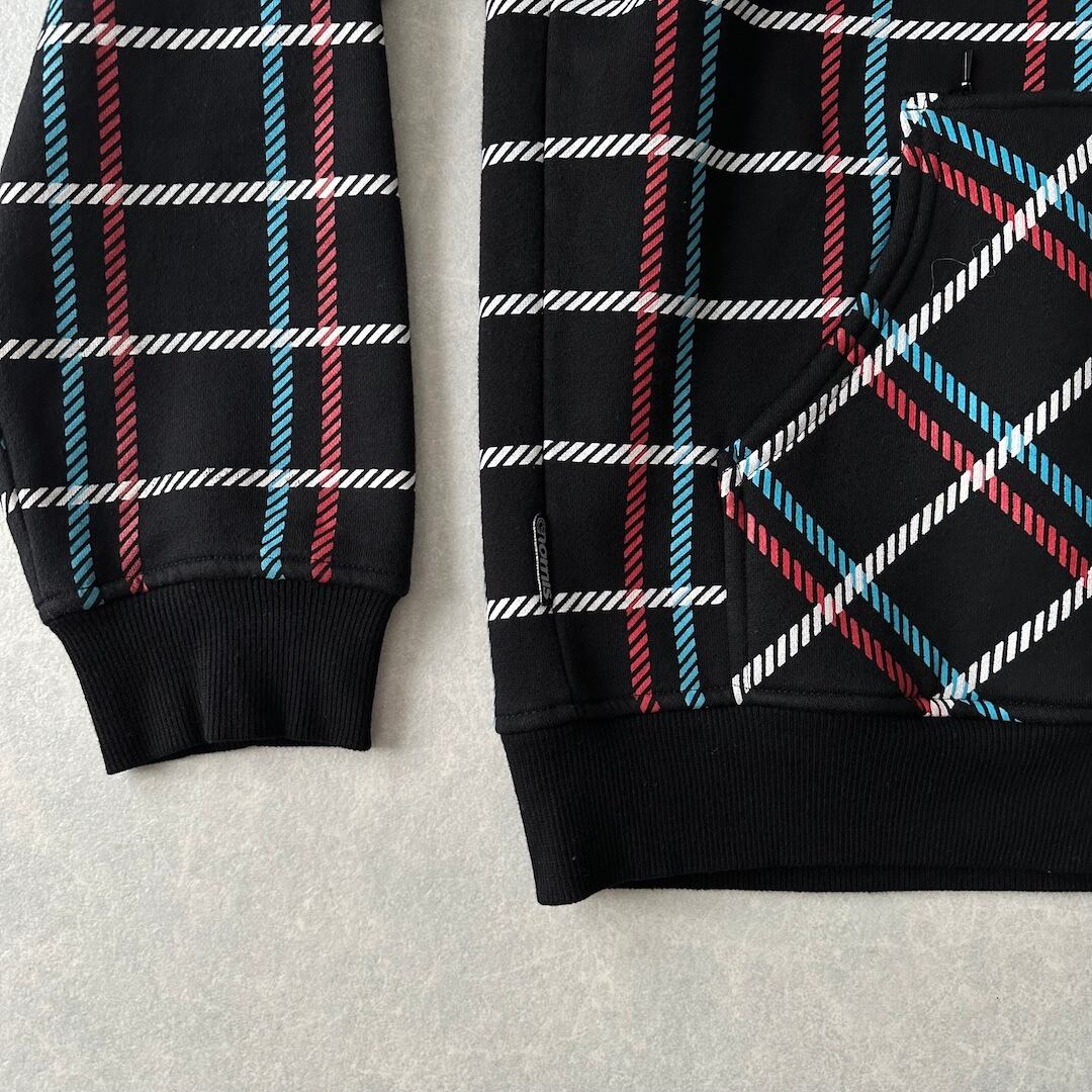 チェック柄 スウェット ジップアップ パーカー チェック柄 M 古着 メンズ 古着男子 ストリート古着 ブラック 黒 マルチ