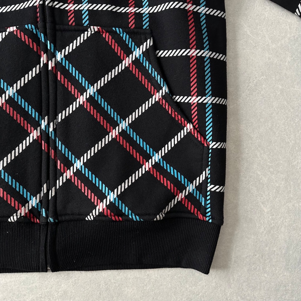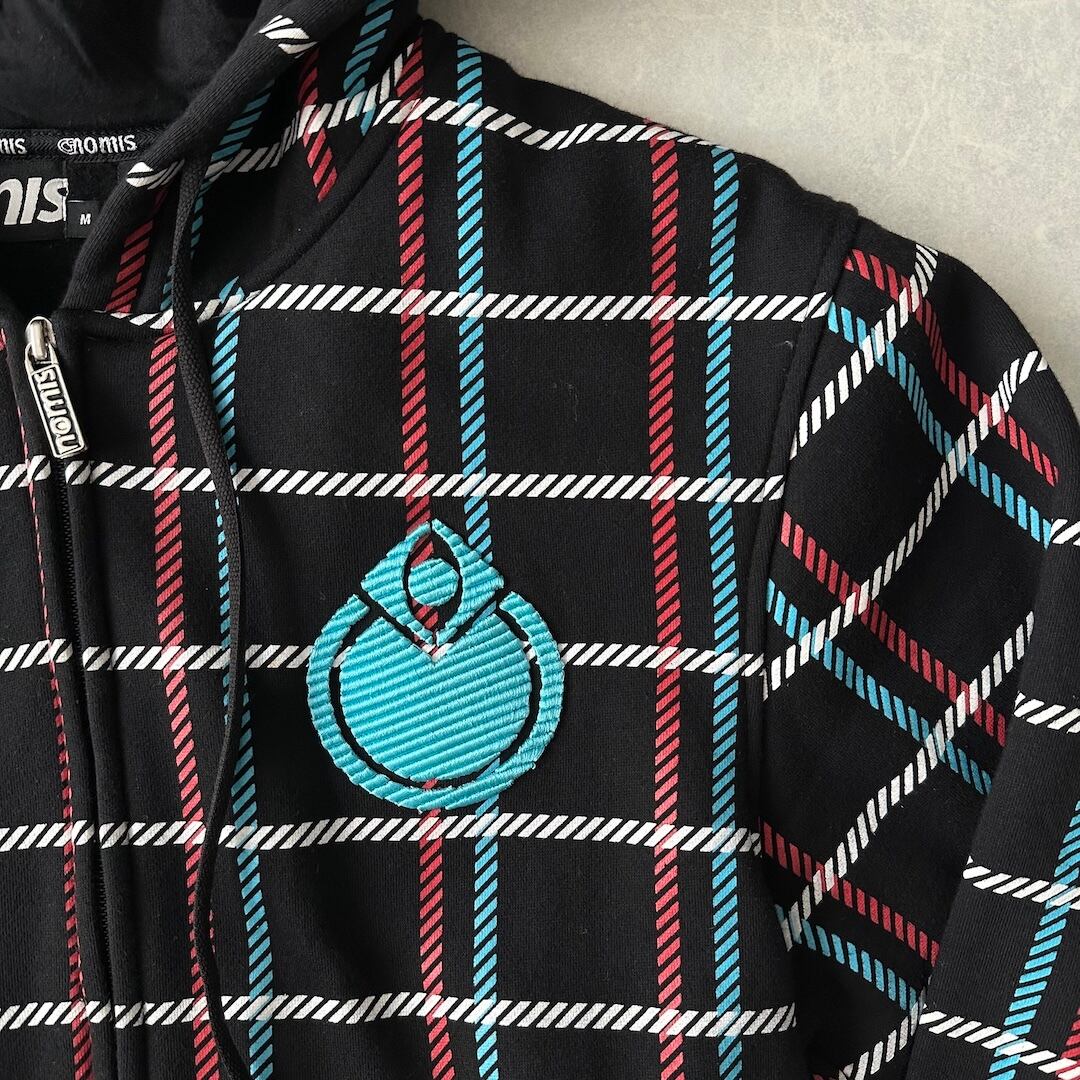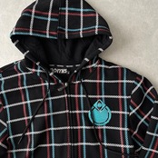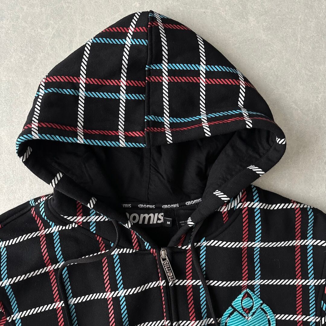 チェック柄 スウェット ジップアップ パーカー チェック柄 M 古着 メンズ 古着男子 ストリート古着 ブラック 黒 マルチ