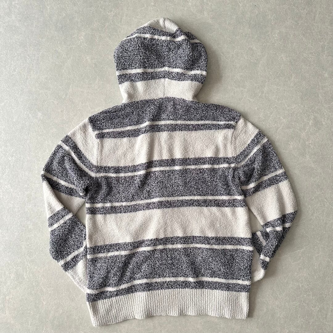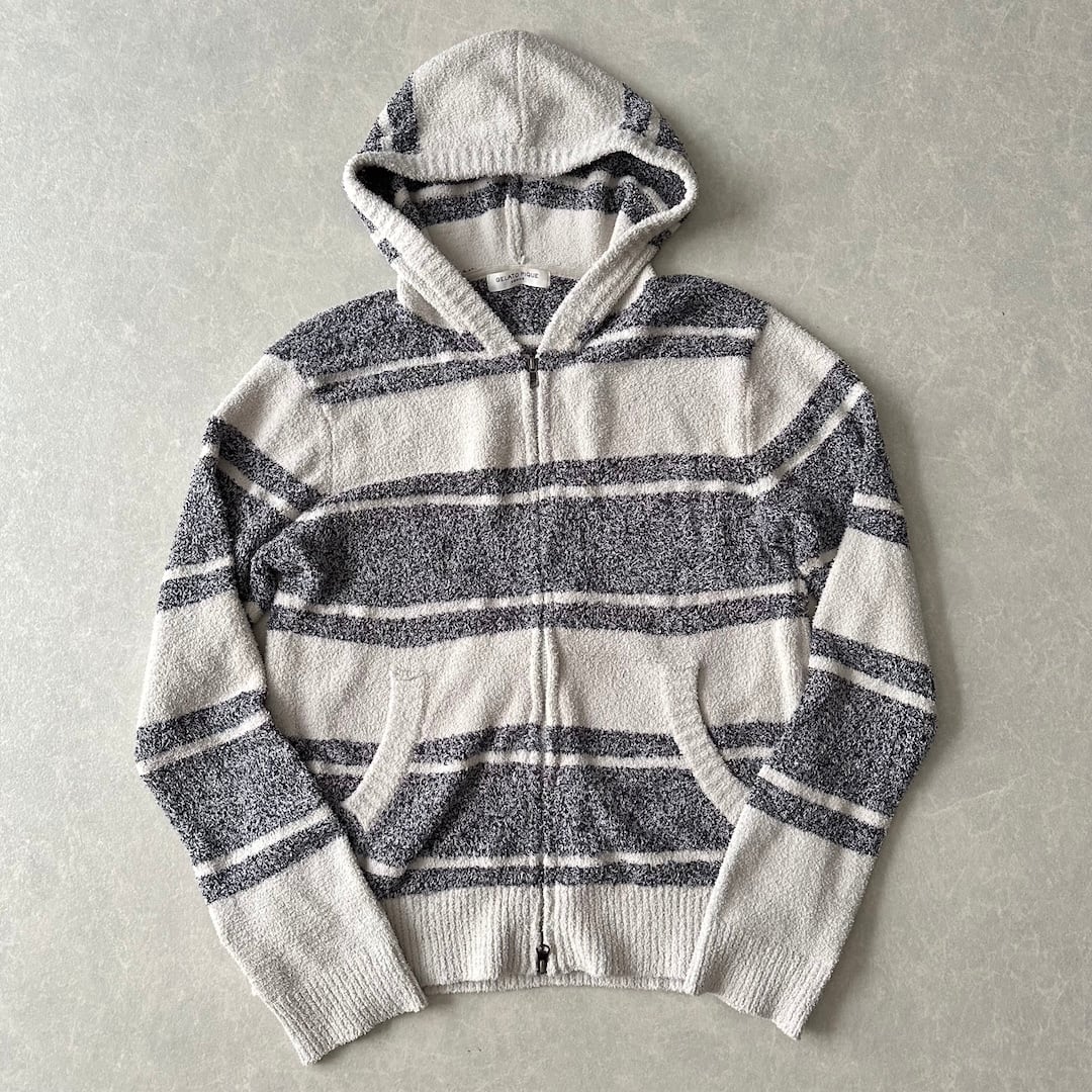 【GELATO PIQUE HOMME】ボーダー柄 フリース ダブルジップ パーカー ボーダー柄 M 古着 メンズ 古着男子 ブランド古着 サーフ古着 海 サーファー ビーチ ホワイト グレー 白
