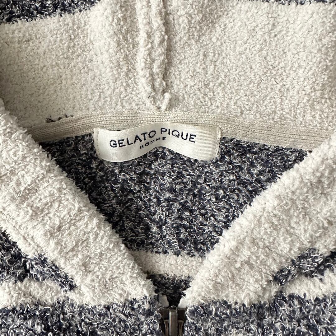 【GELATO PIQUE HOMME】ボーダー柄フリースダブルジップパーカー ボーダー柄 M 古着 メンズ