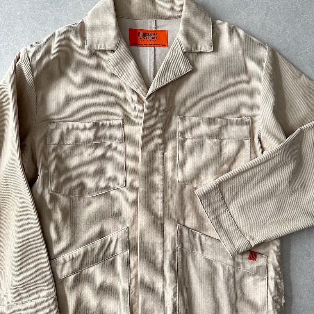 【UNIVERSAL OVERALL】コーデュロイ ロング丈 コート カバーオール ベージュ F 古着 メンズ 古着男子 ブランド古着 アメカジ古着 ワーク クラシック