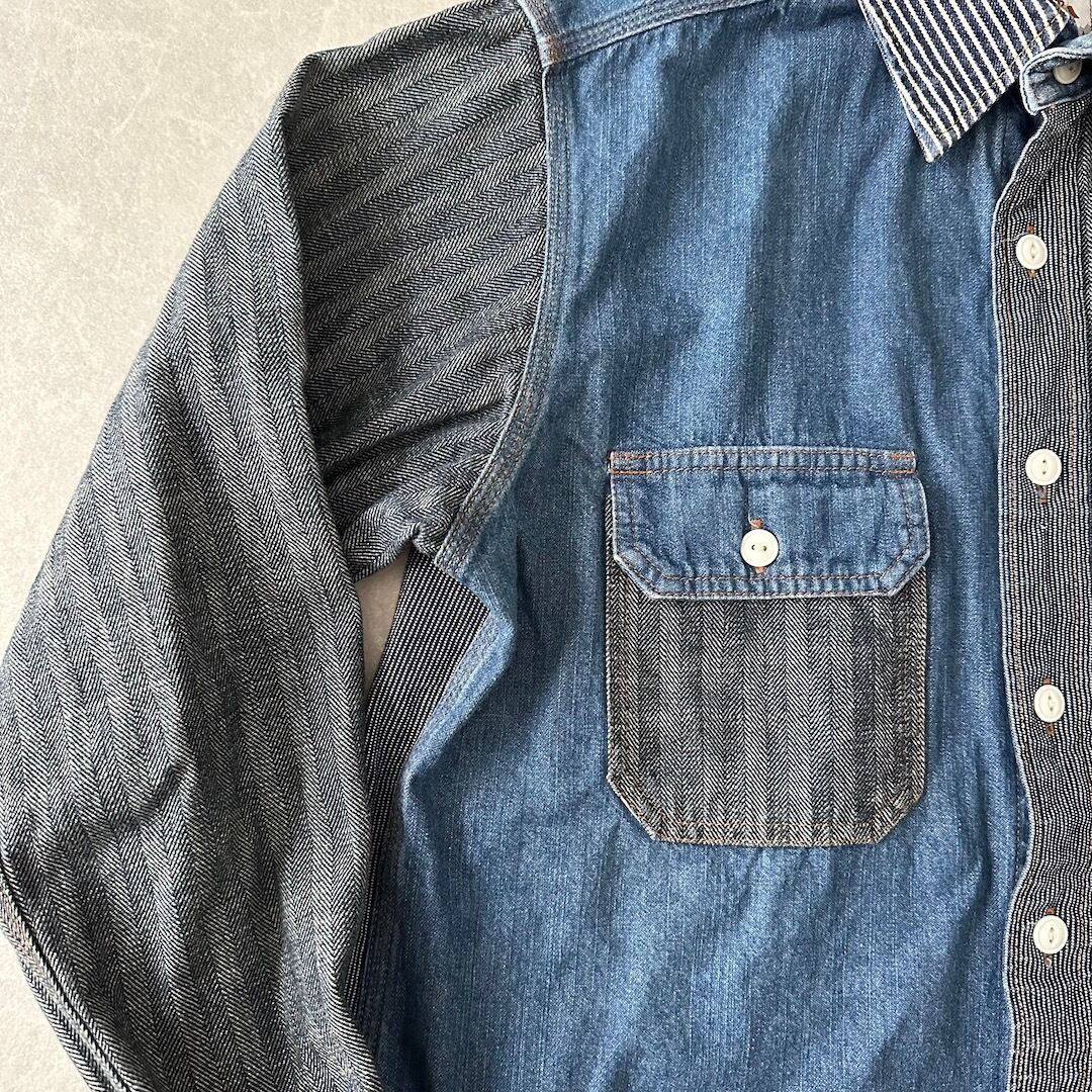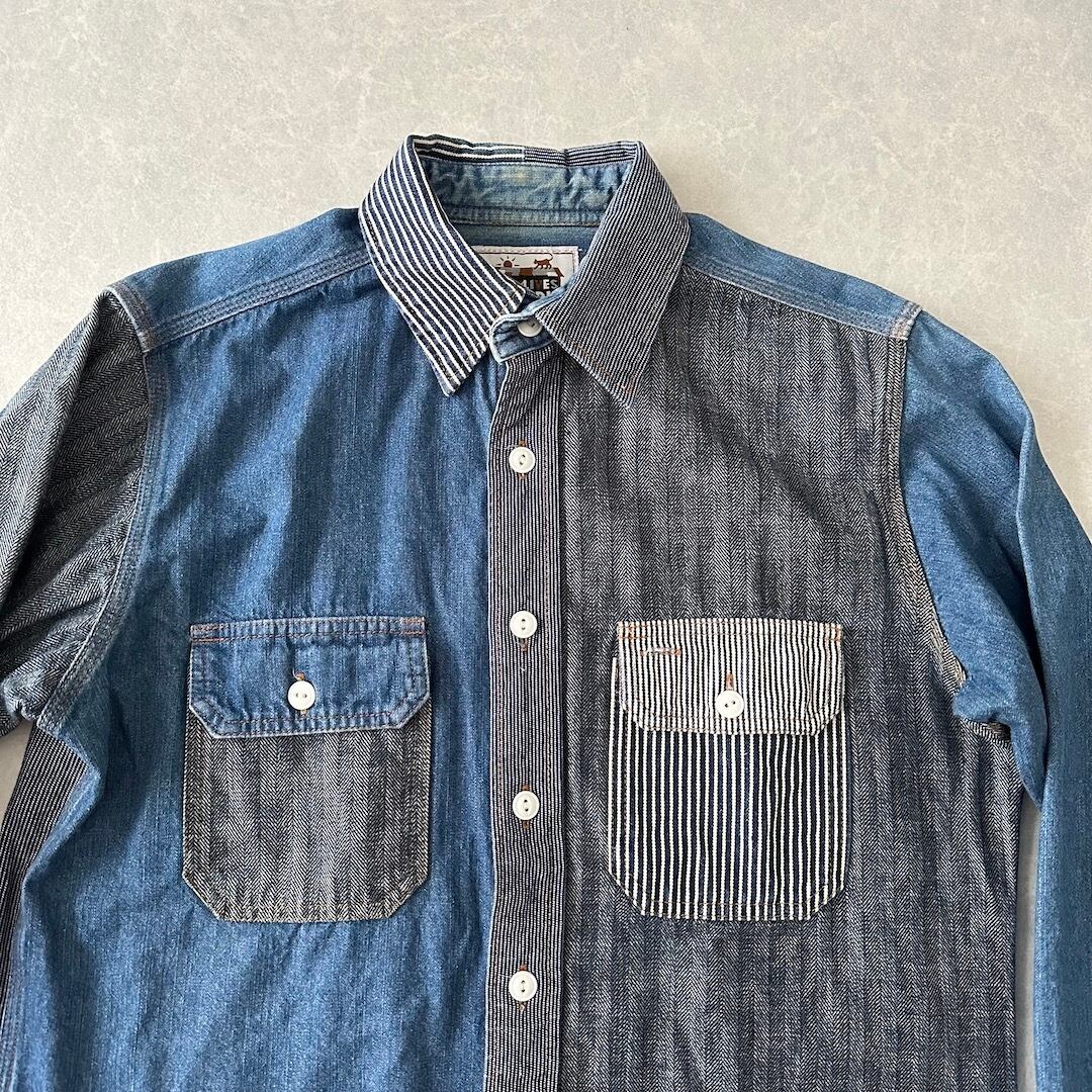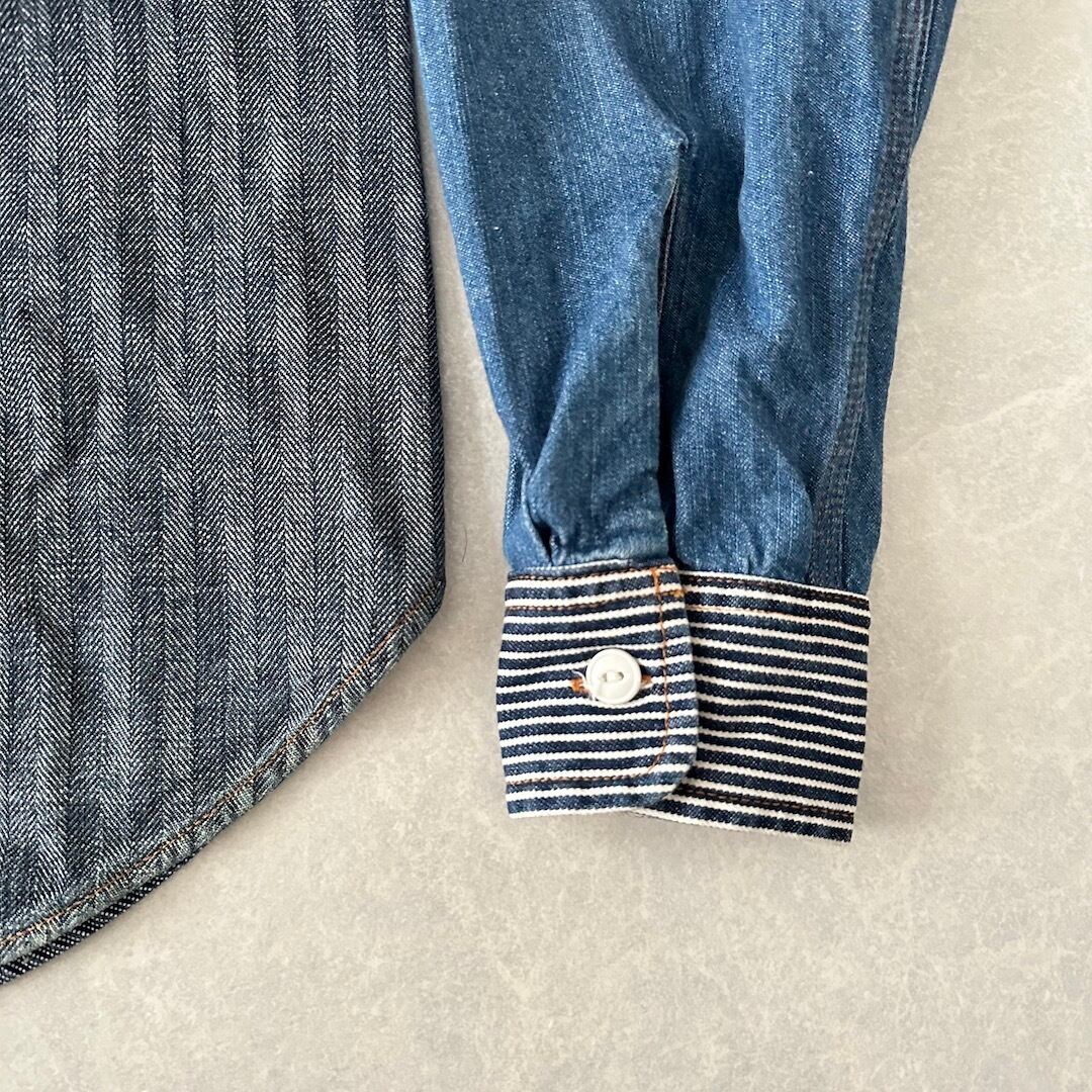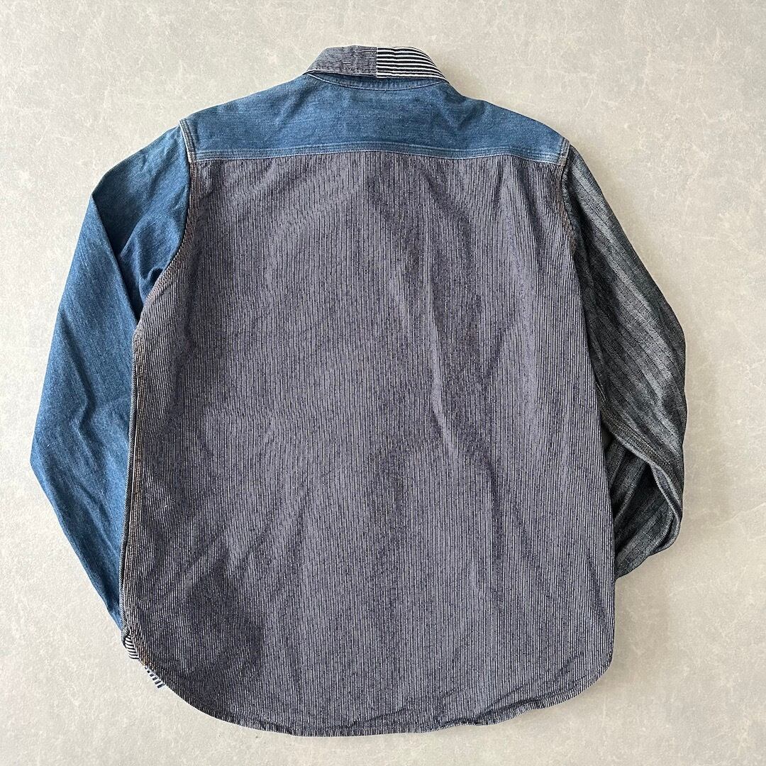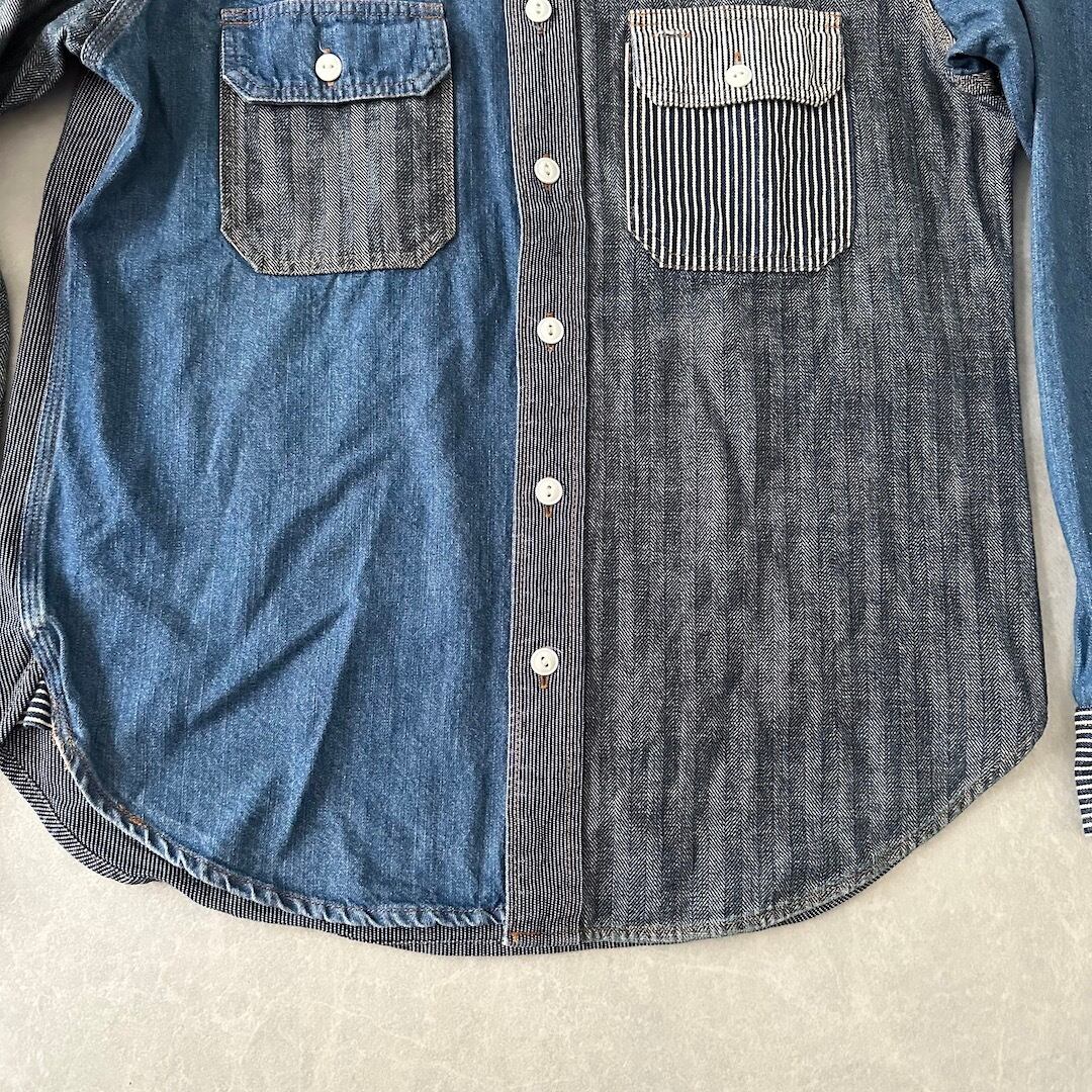 クレイジーパターン ヒッコリー デニム ワーク シャツ ストライプ柄 M 古着 メンズ 古着男子 アメカジ古着 デニム ラギッド