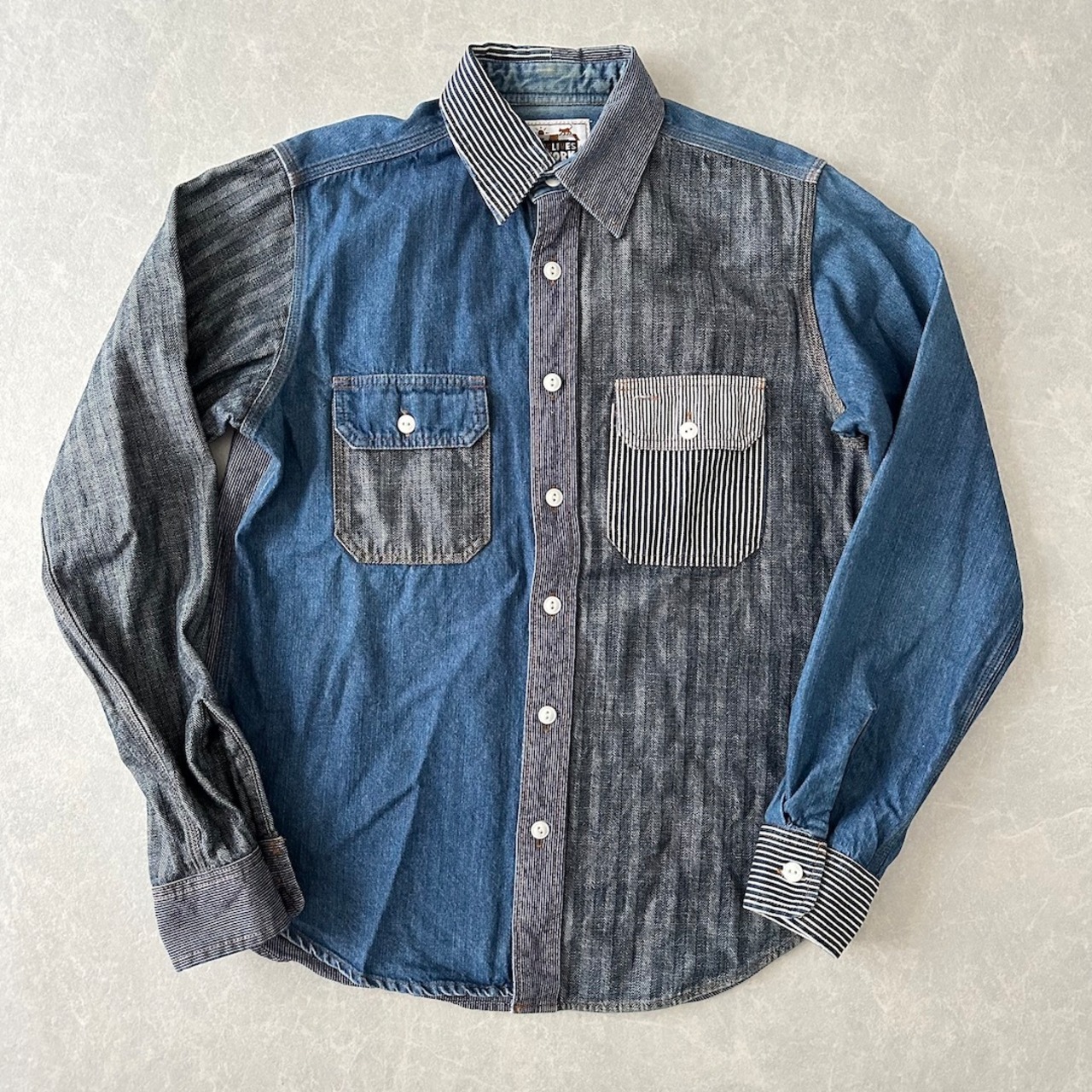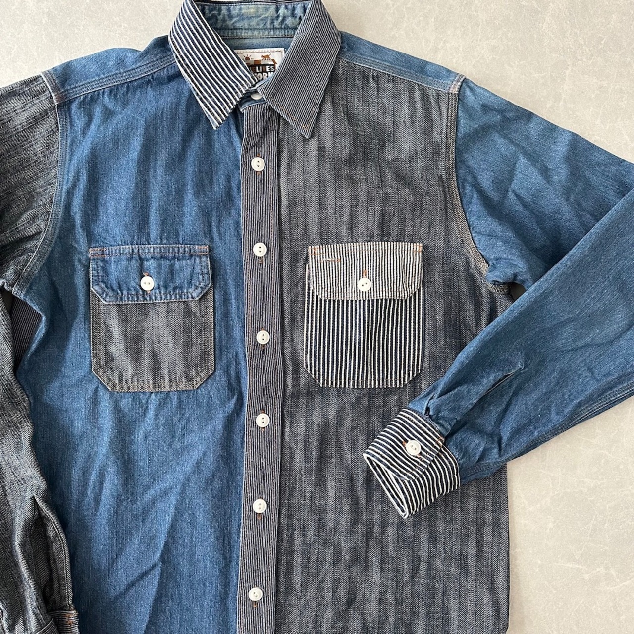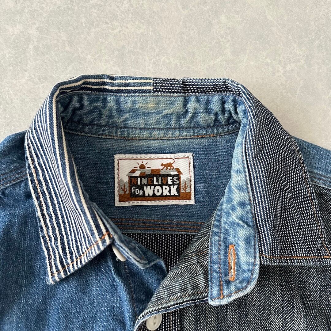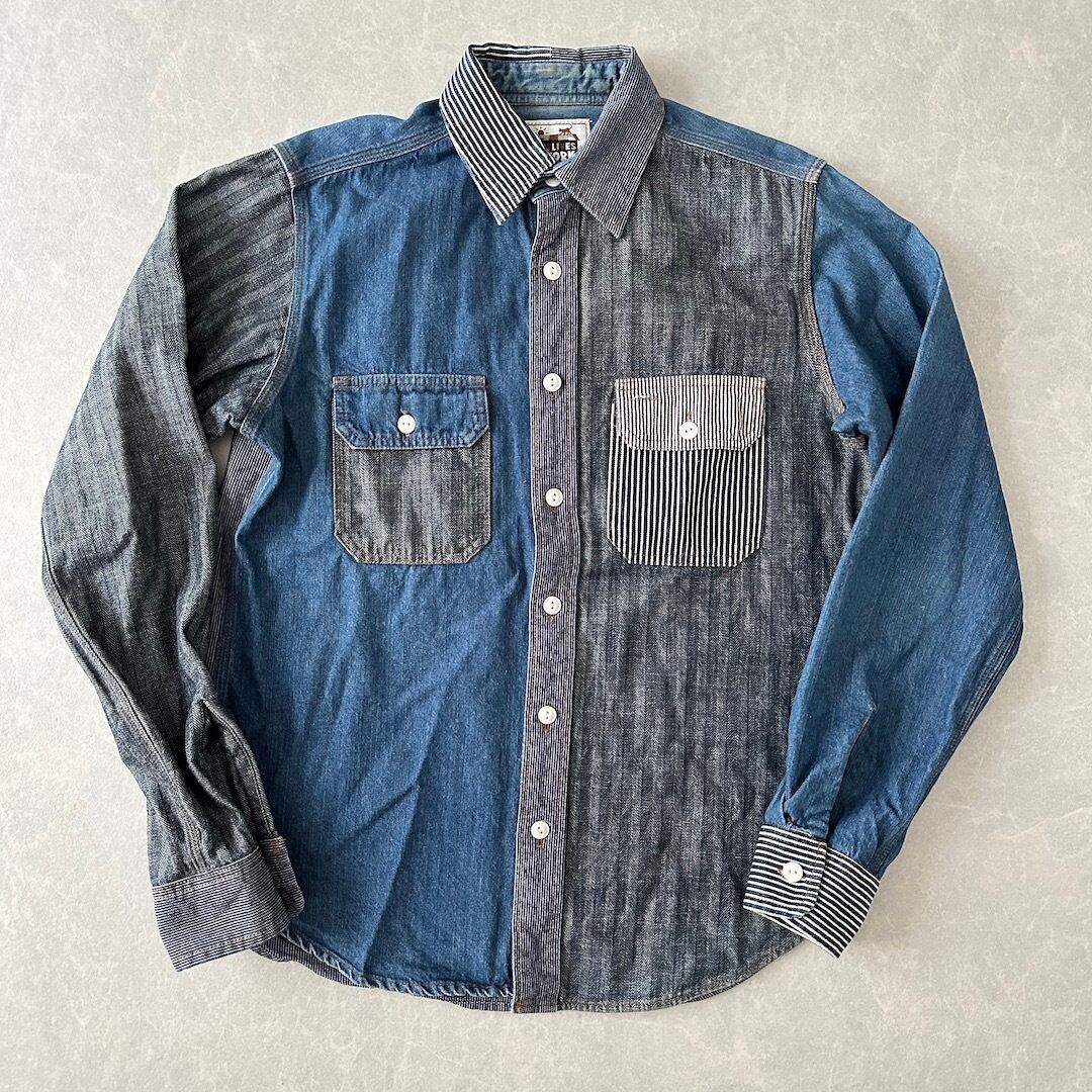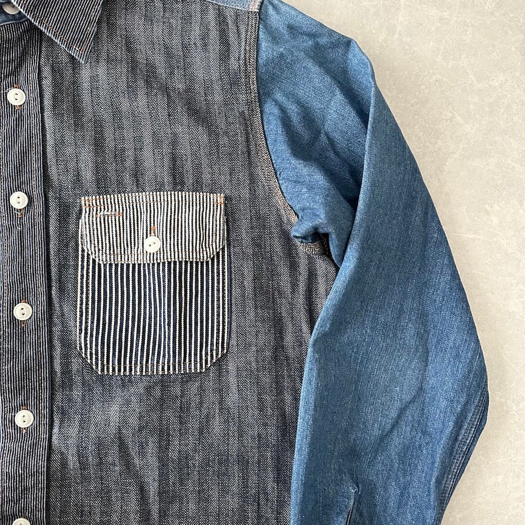クレイジーパターン ヒッコリー デニム ワーク シャツ ストライプ柄 M 古着 メンズ 古着男子 アメカジ古着 デニム ラギッド