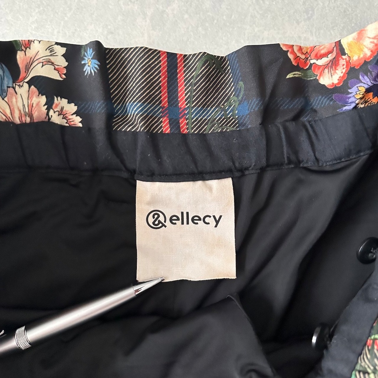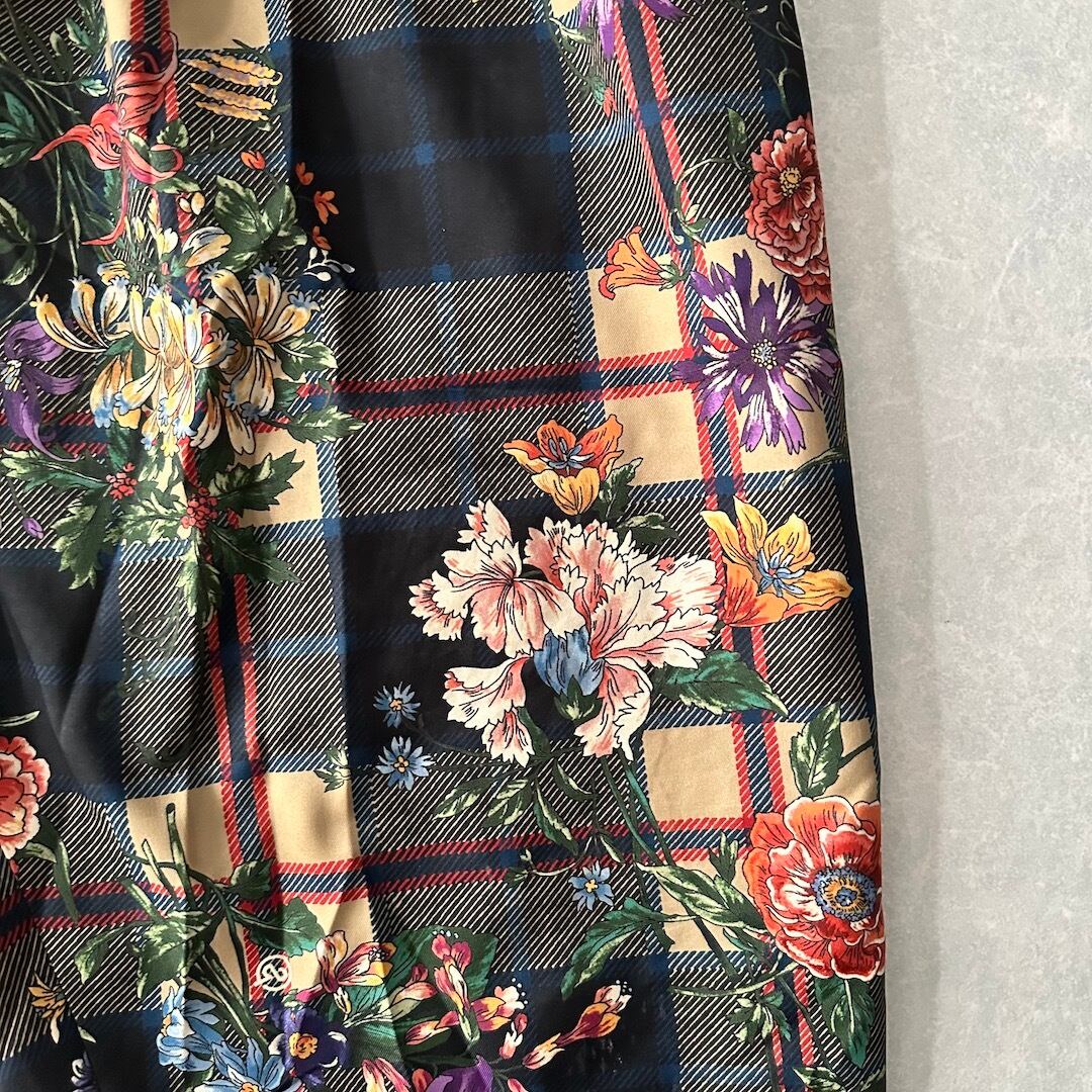 チェック花柄プリントワイドパンツ 総柄 M 古着 メンズ