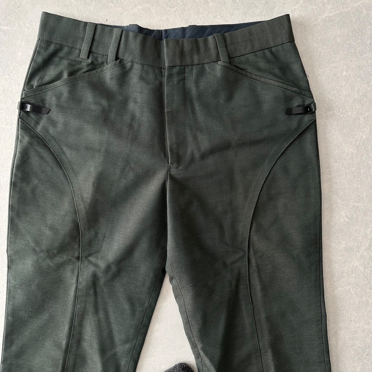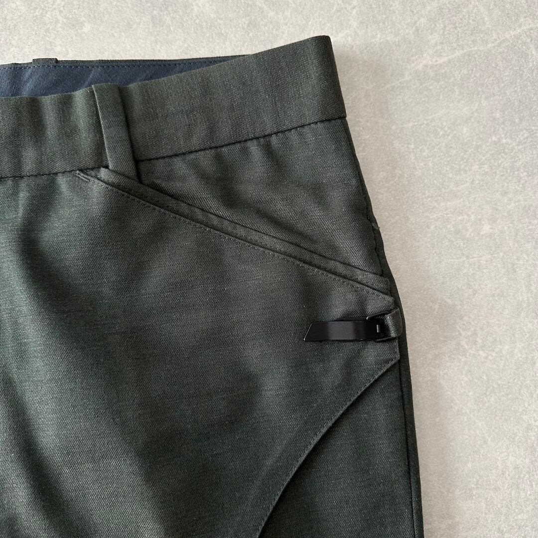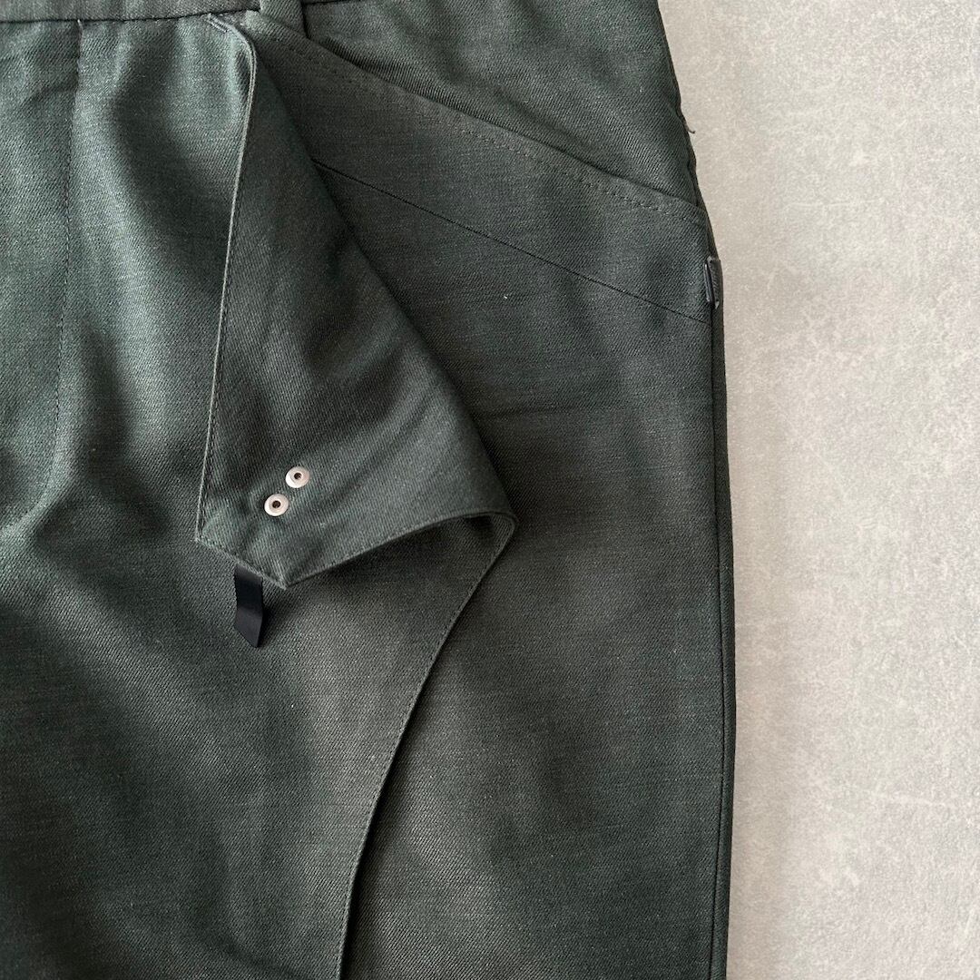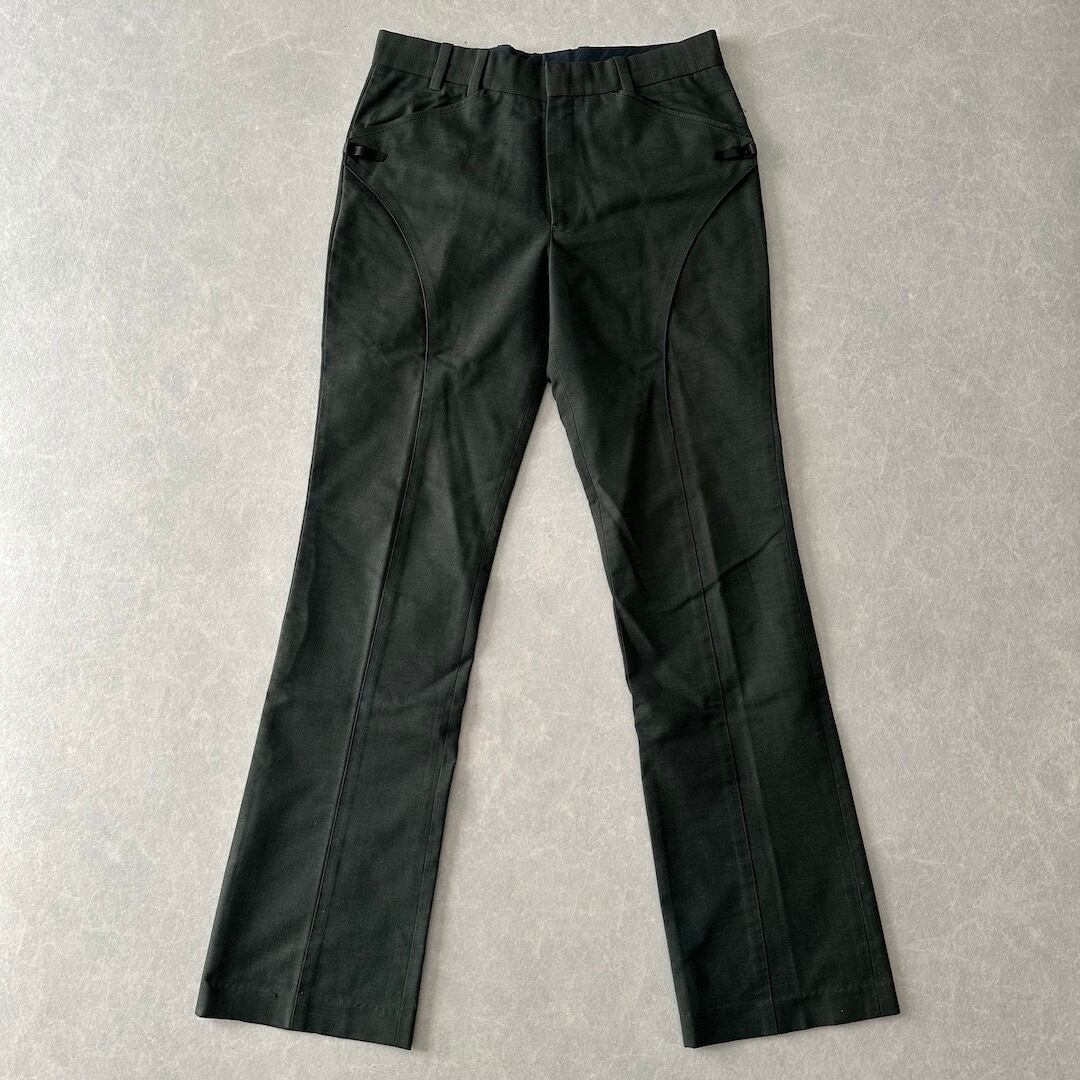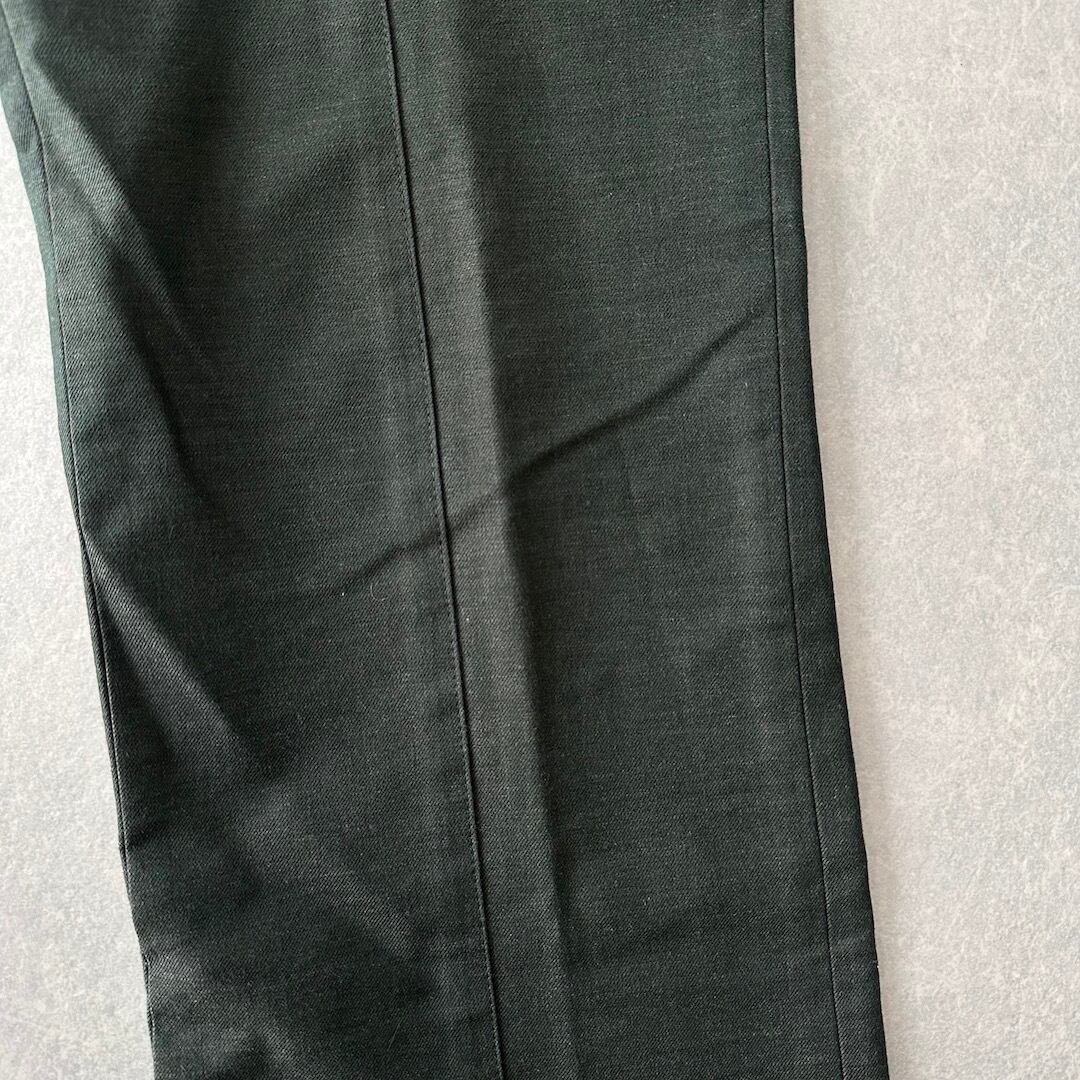 【N.HOOLYWOOD】美シルエット ベルボトム スラックス カーキ M 古着 メンズ 古着男子 ブランド古着 グリーン 緑 ウール コットン