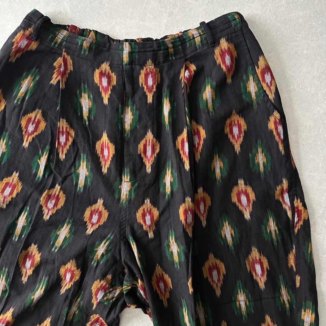 ネイティブ柄 イージー ワイドパンツ 総柄 L 古着 メンズ 古着男子 インド製 ゆったり アジアン 幾何学柄