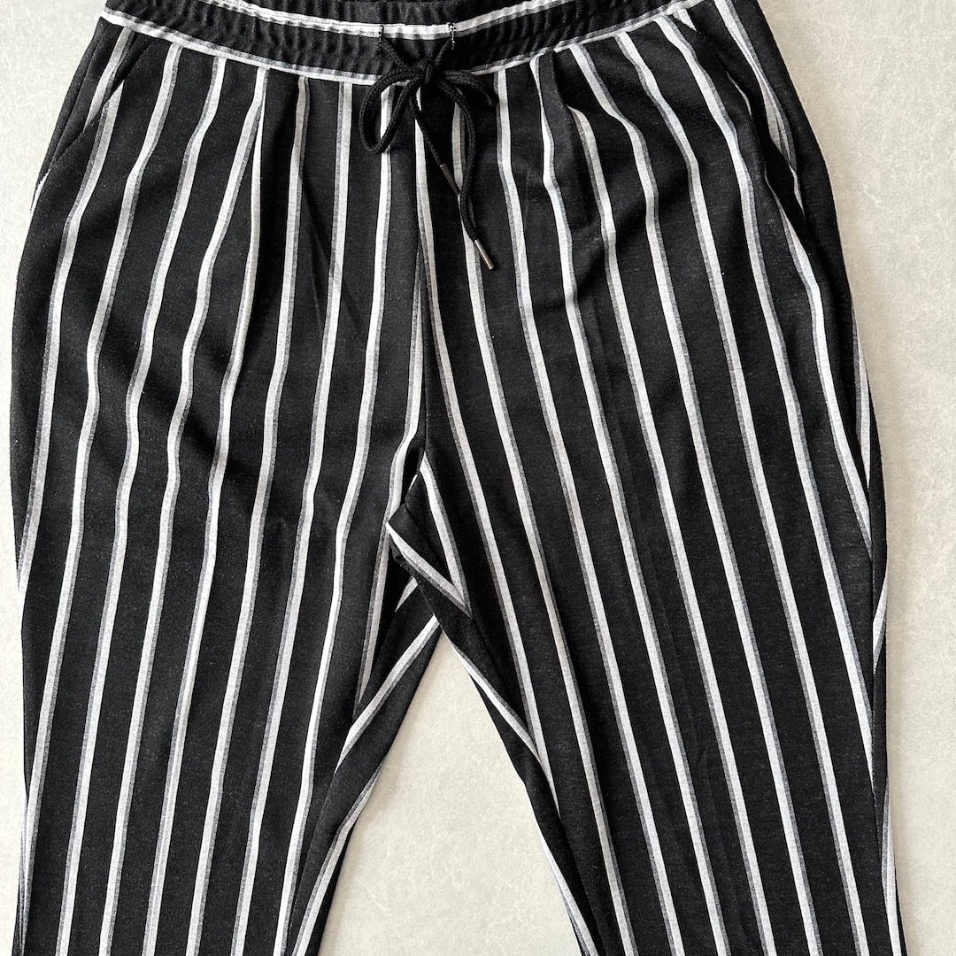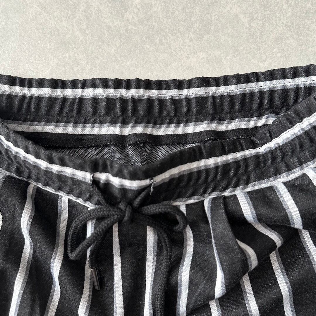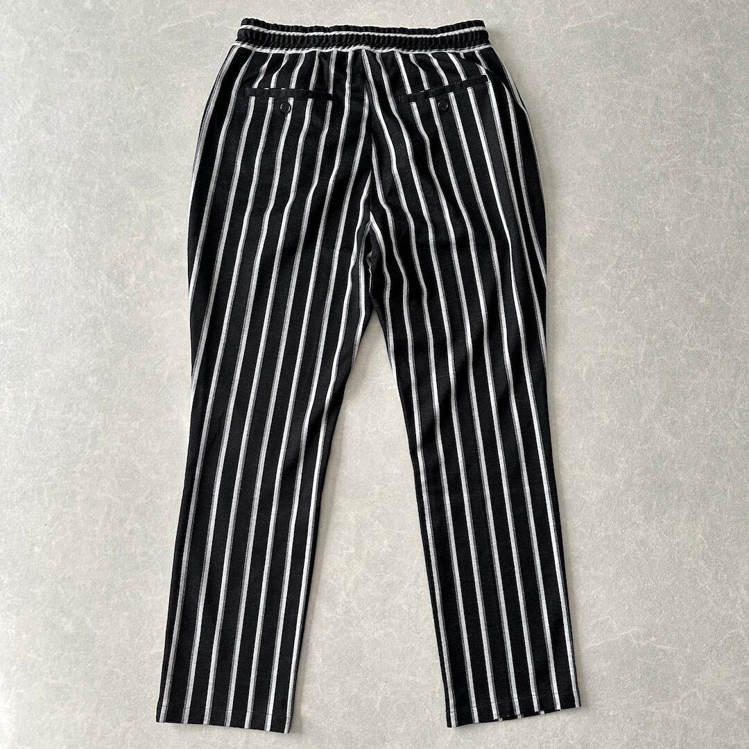 モノクロストライプ柄ストレッチイージーパンツ ストライプ柄 XL 古着 メンズ