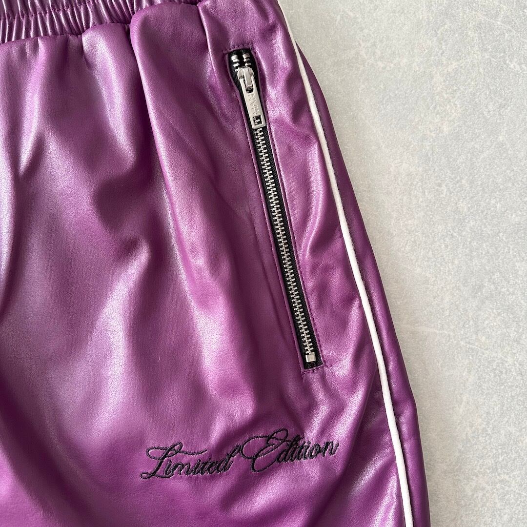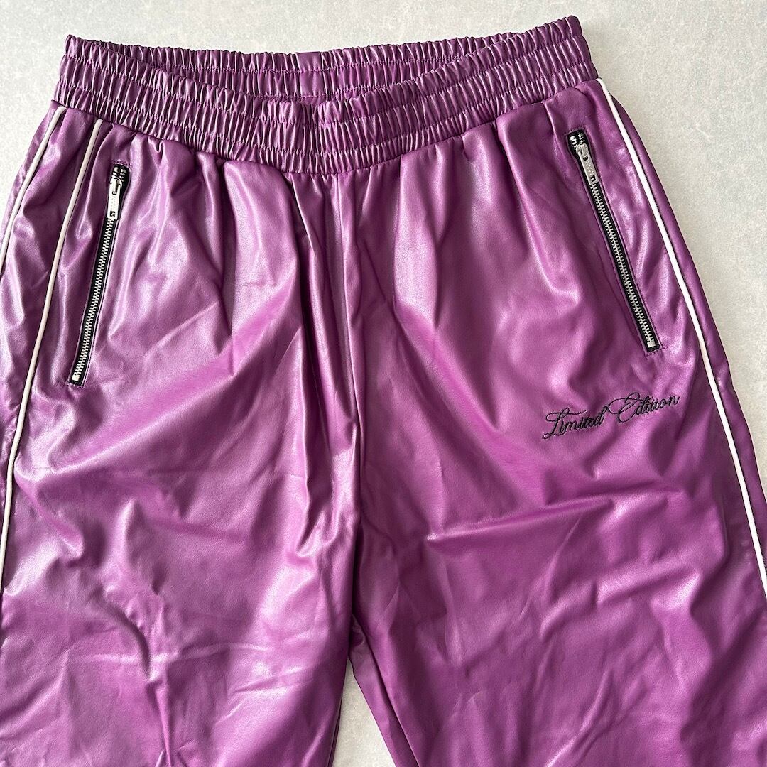 刺繍入りスポーティブイージーパンツ パープル L 古着 メンズ