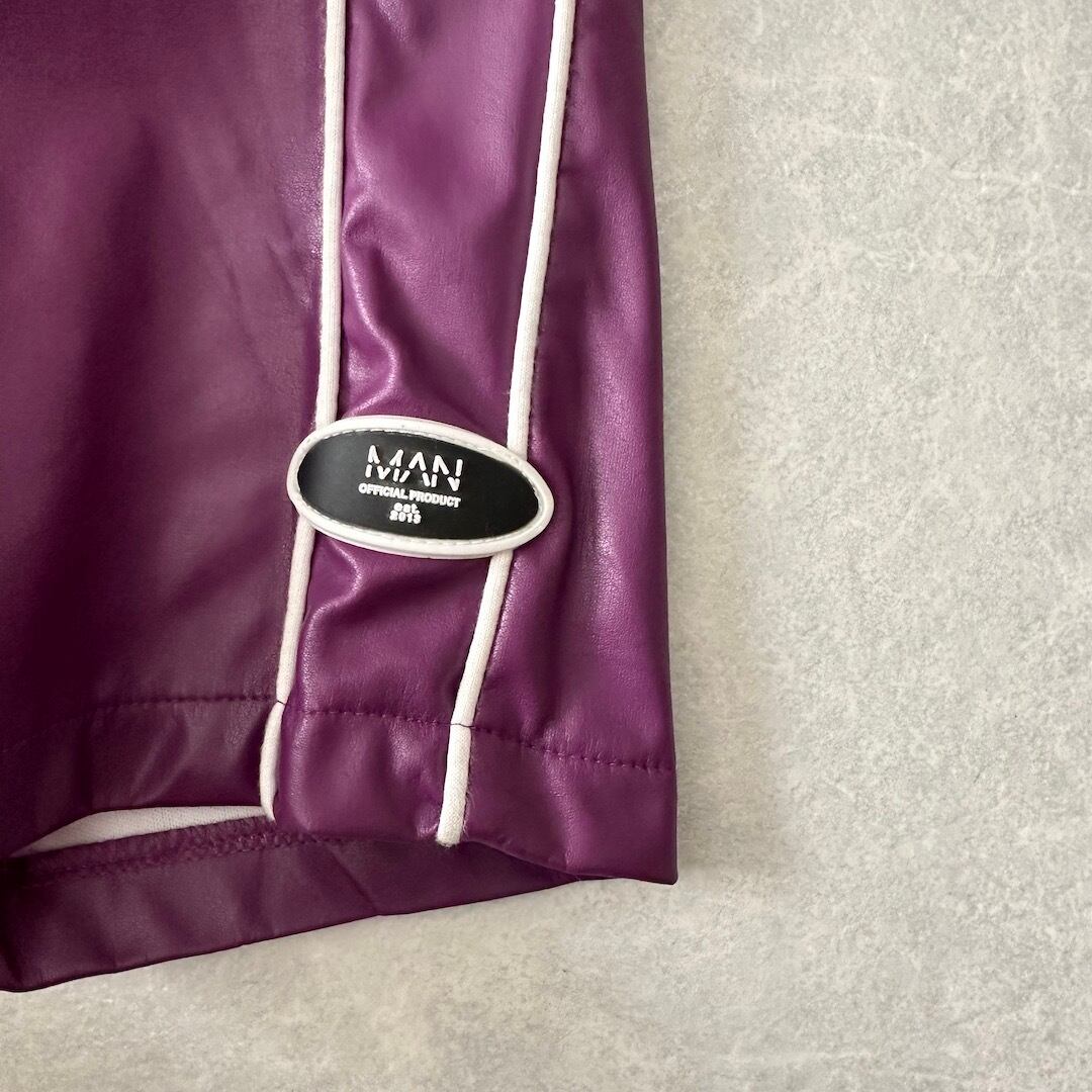 刺繍入り スポーティブ イージーパンツ パープル L 古着 メンズ 古着男子 紫 スポーツミックス ウエストゴム ダンス