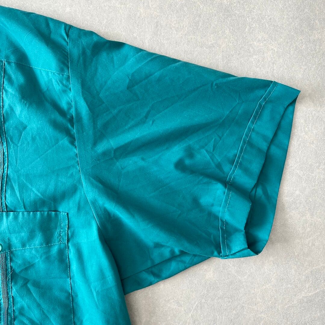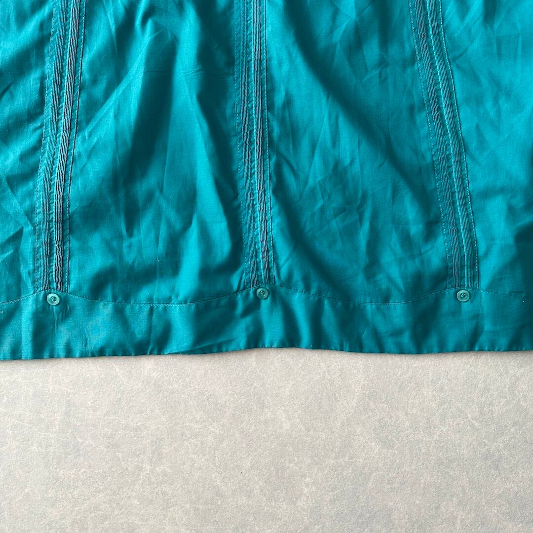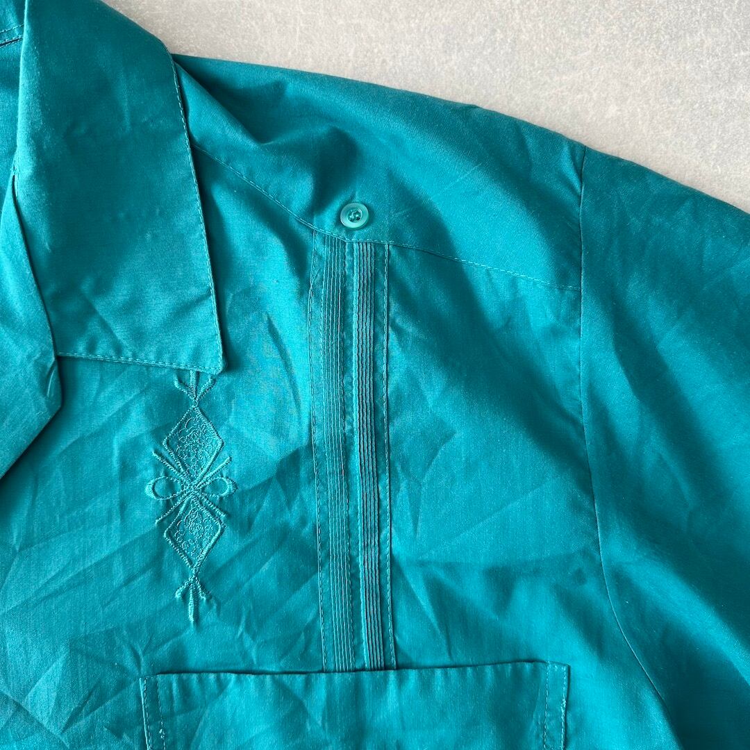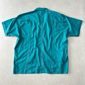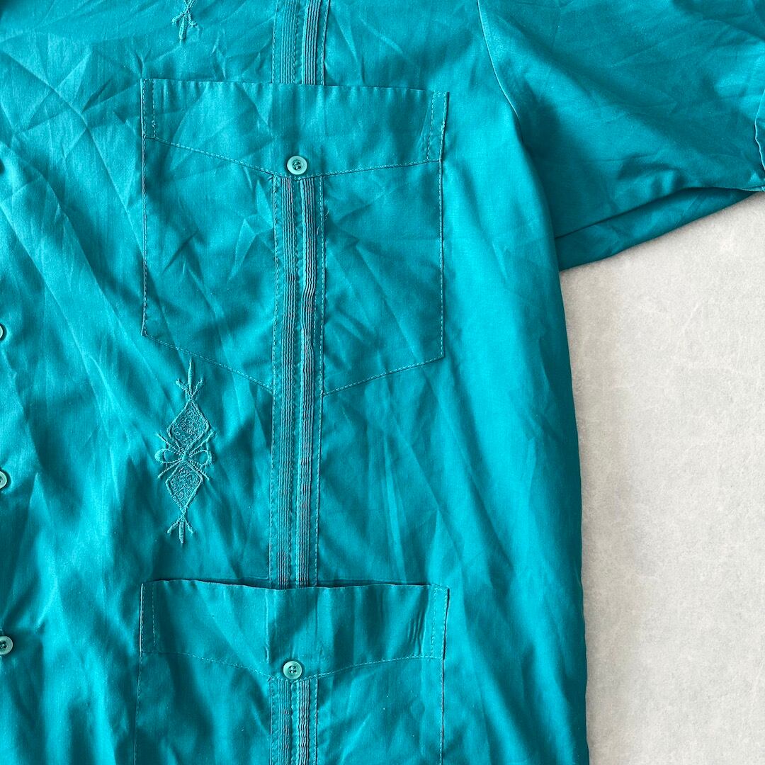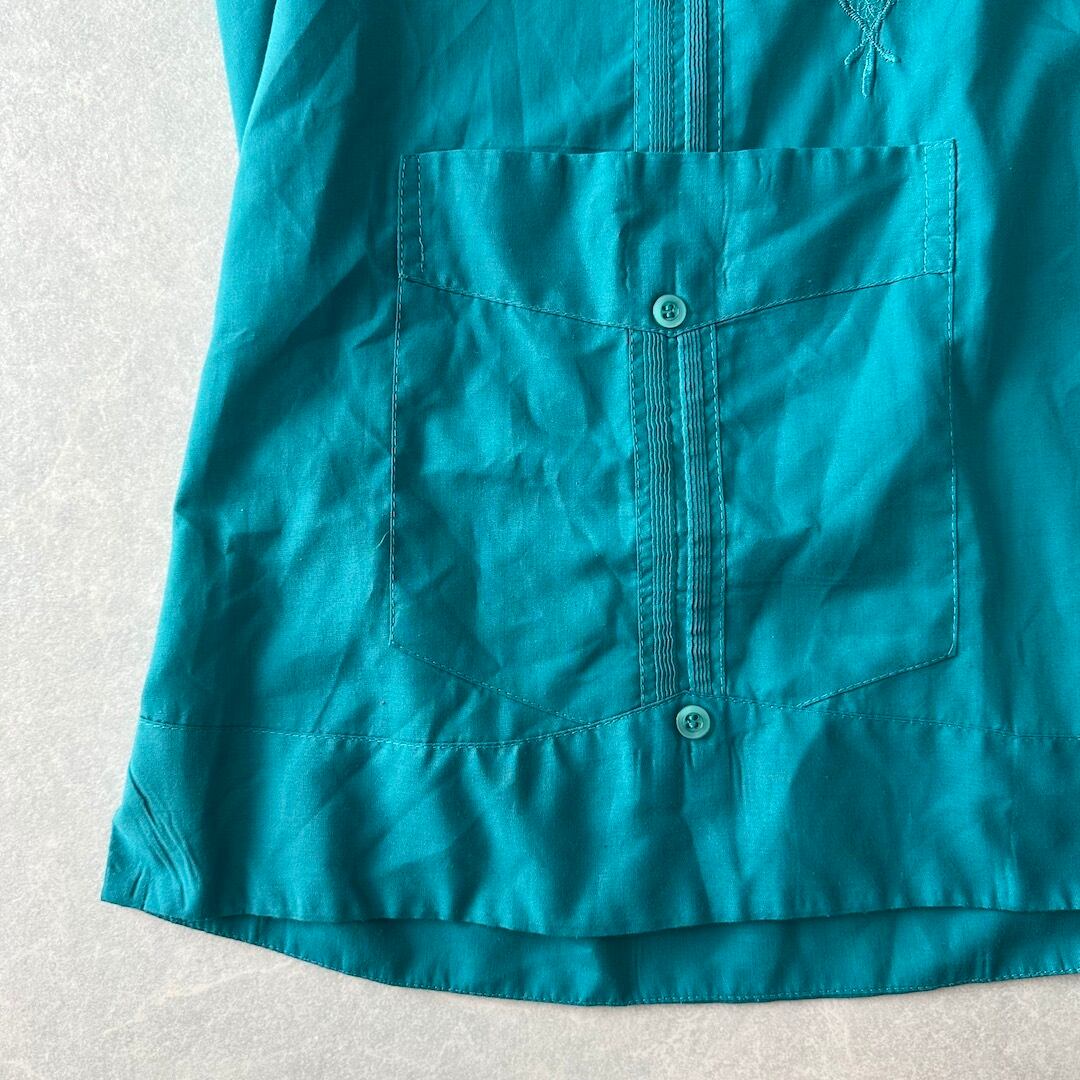 半袖 開襟 刺繍入り キューバシャツ グリーン 48 古着 メンズ 古着男子 南国 ビーチ サーフ リゾート 緑