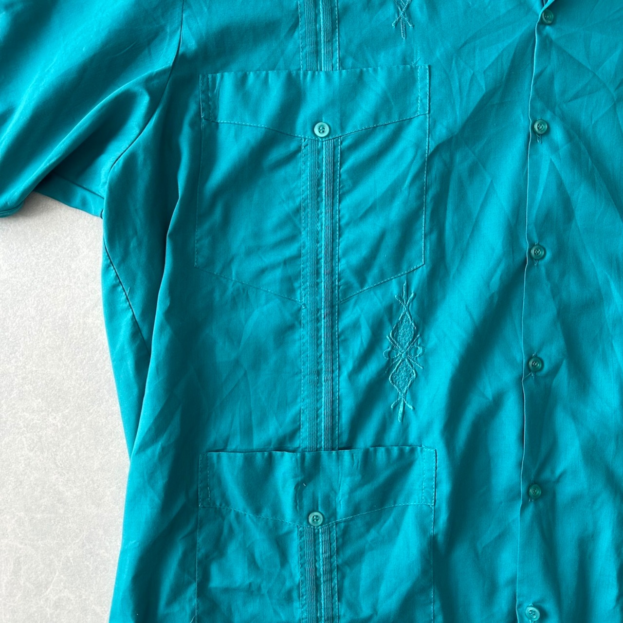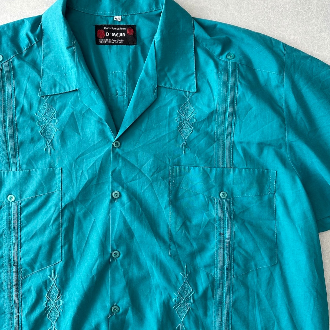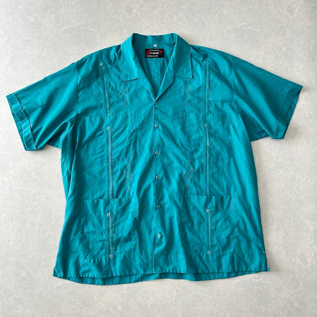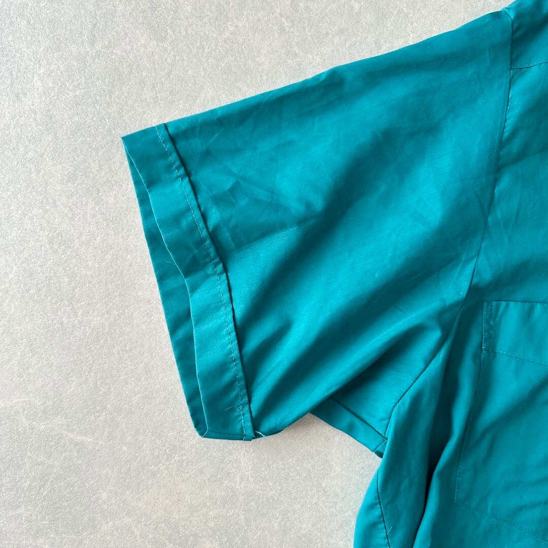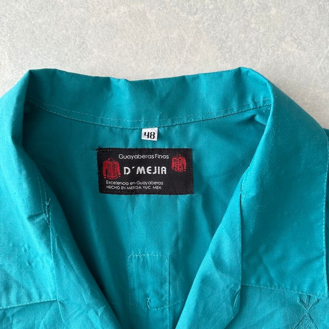 半袖 開襟 刺繍入り キューバシャツ グリーン 48 古着 メンズ 古着男子 南国 ビーチ サーフ リゾート 緑
