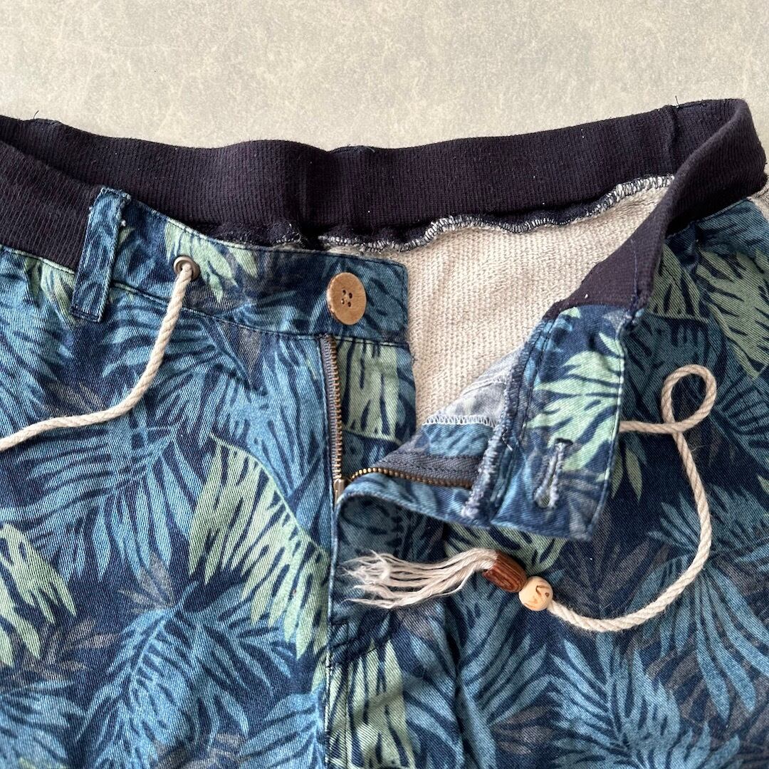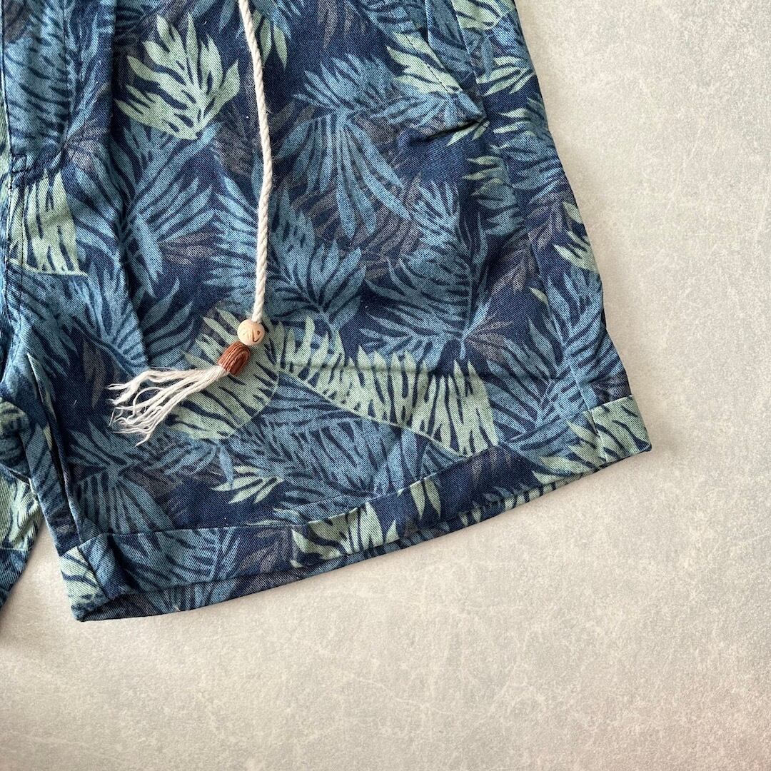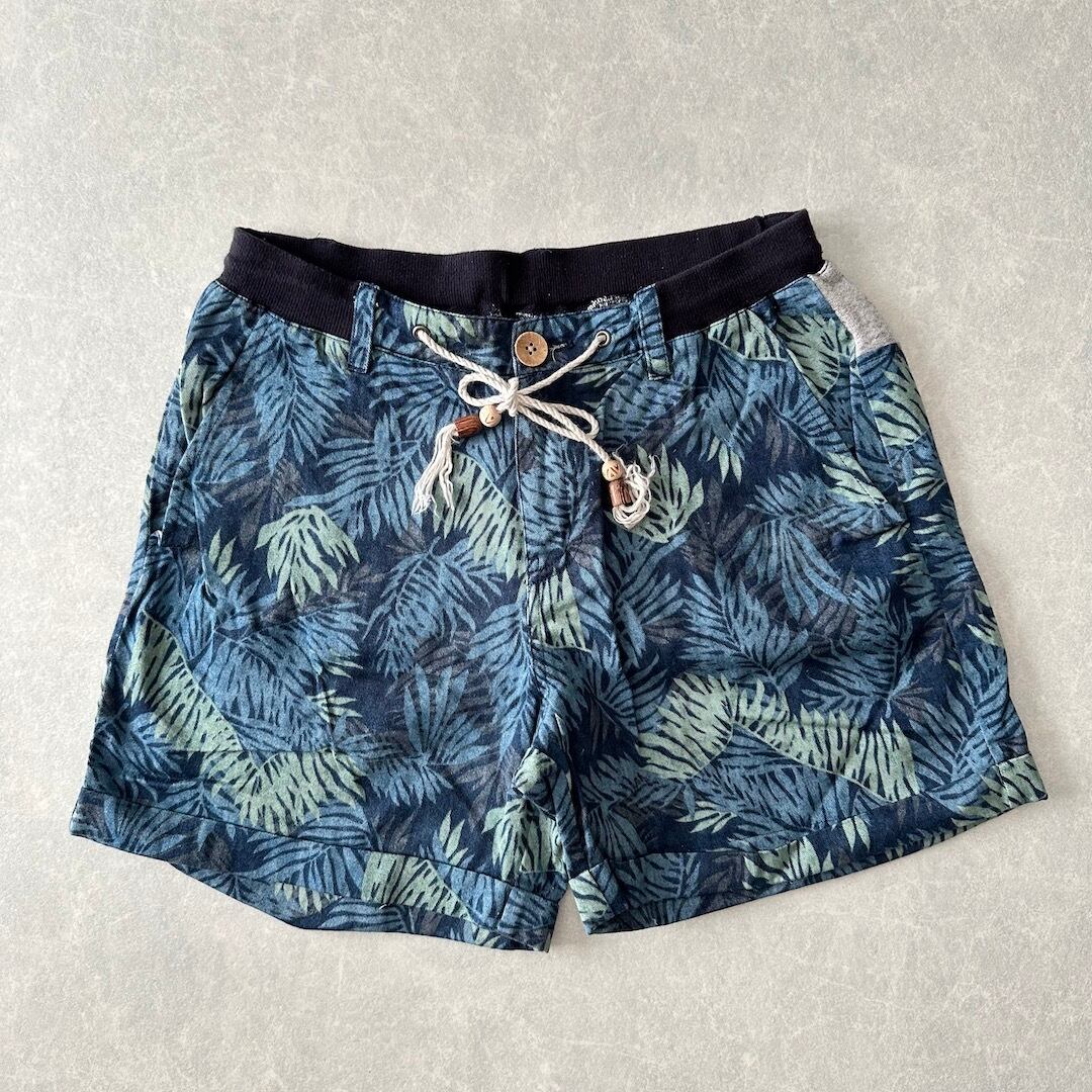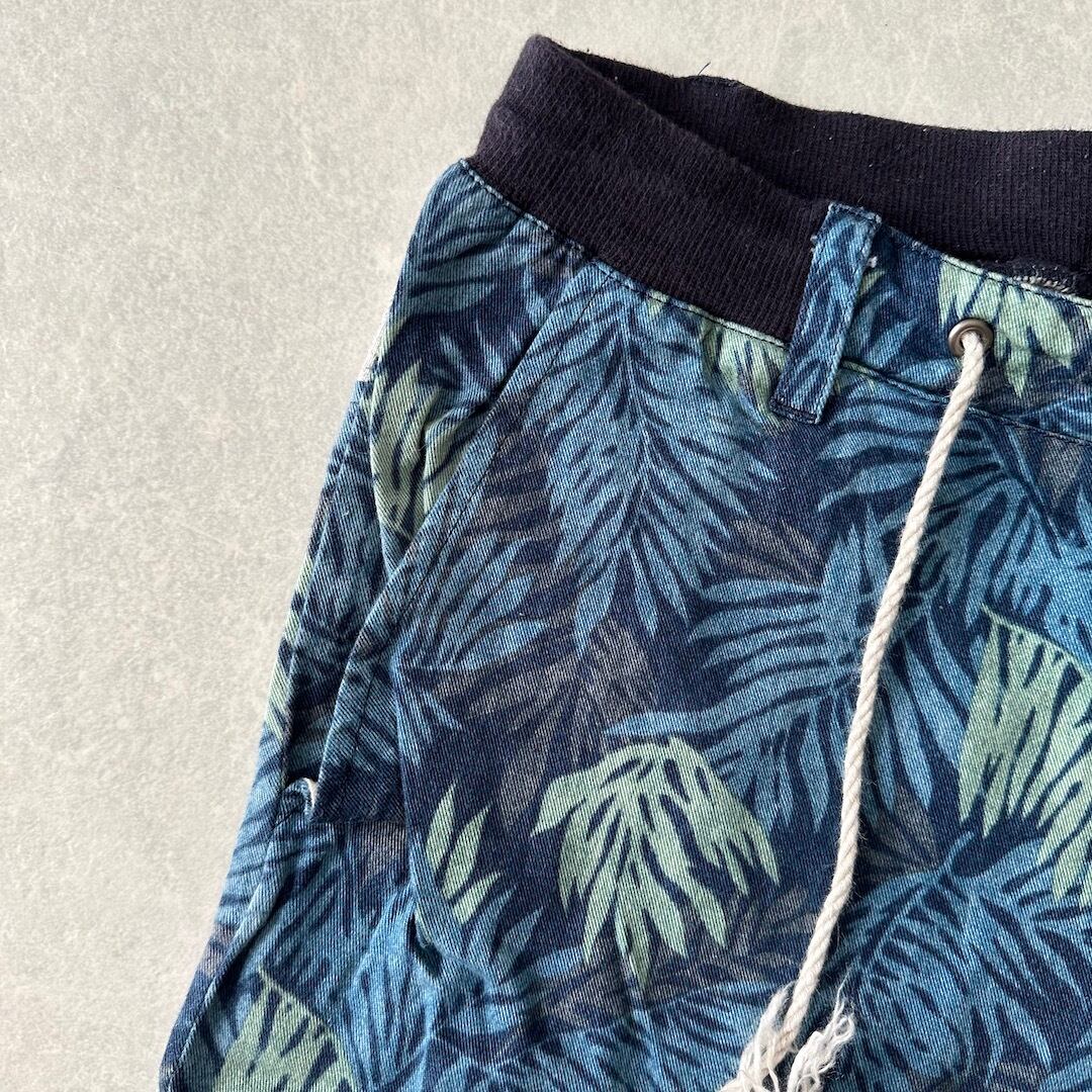 リーフ柄 サーフ ショートパンツ 総柄 古着 メンズ 古着男子 サーフ古着 海 ビーチ ブルー トロピカル