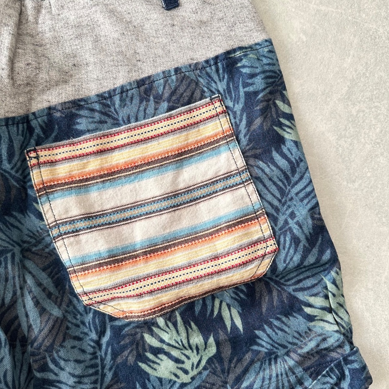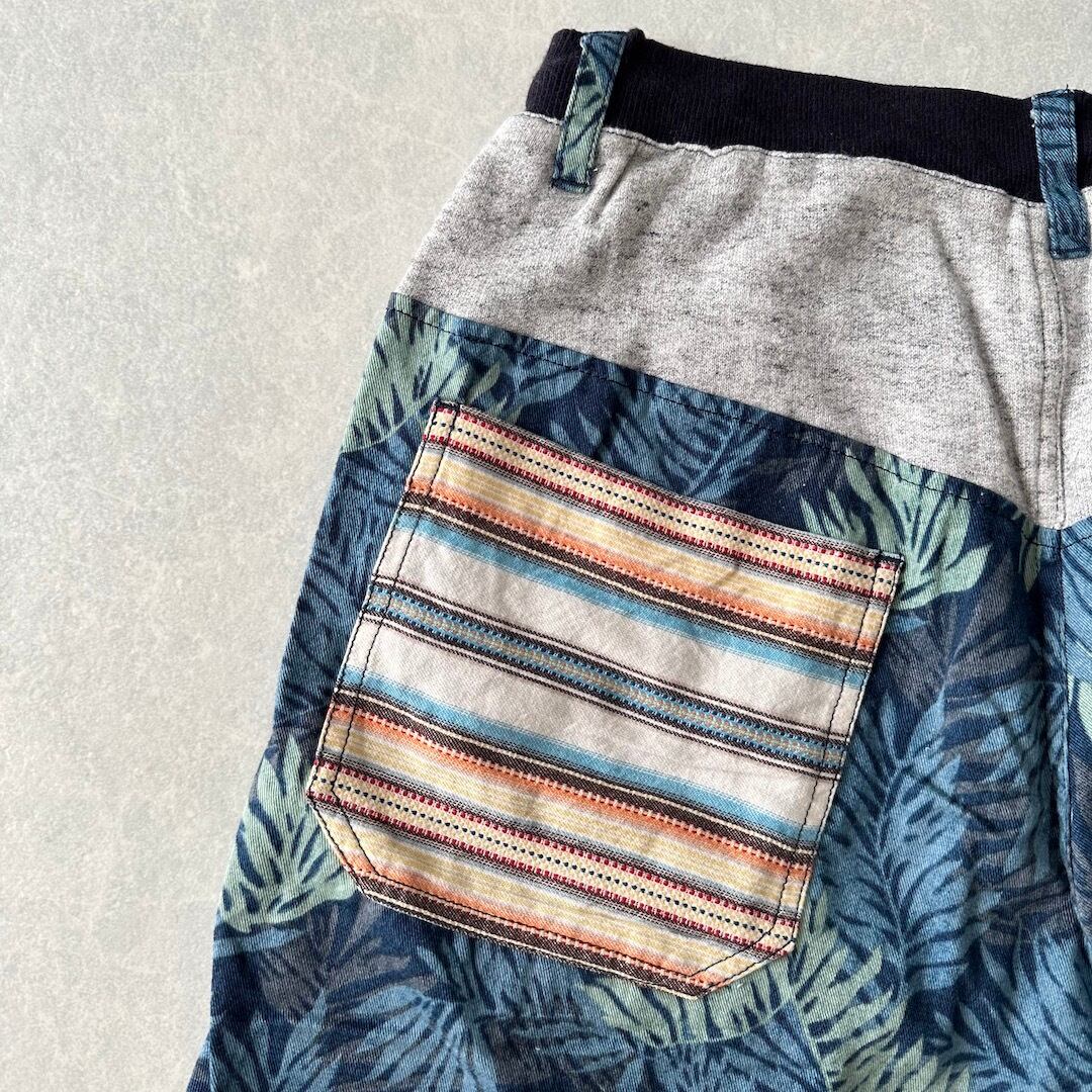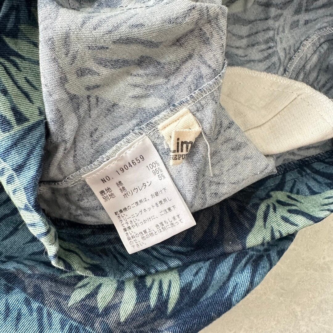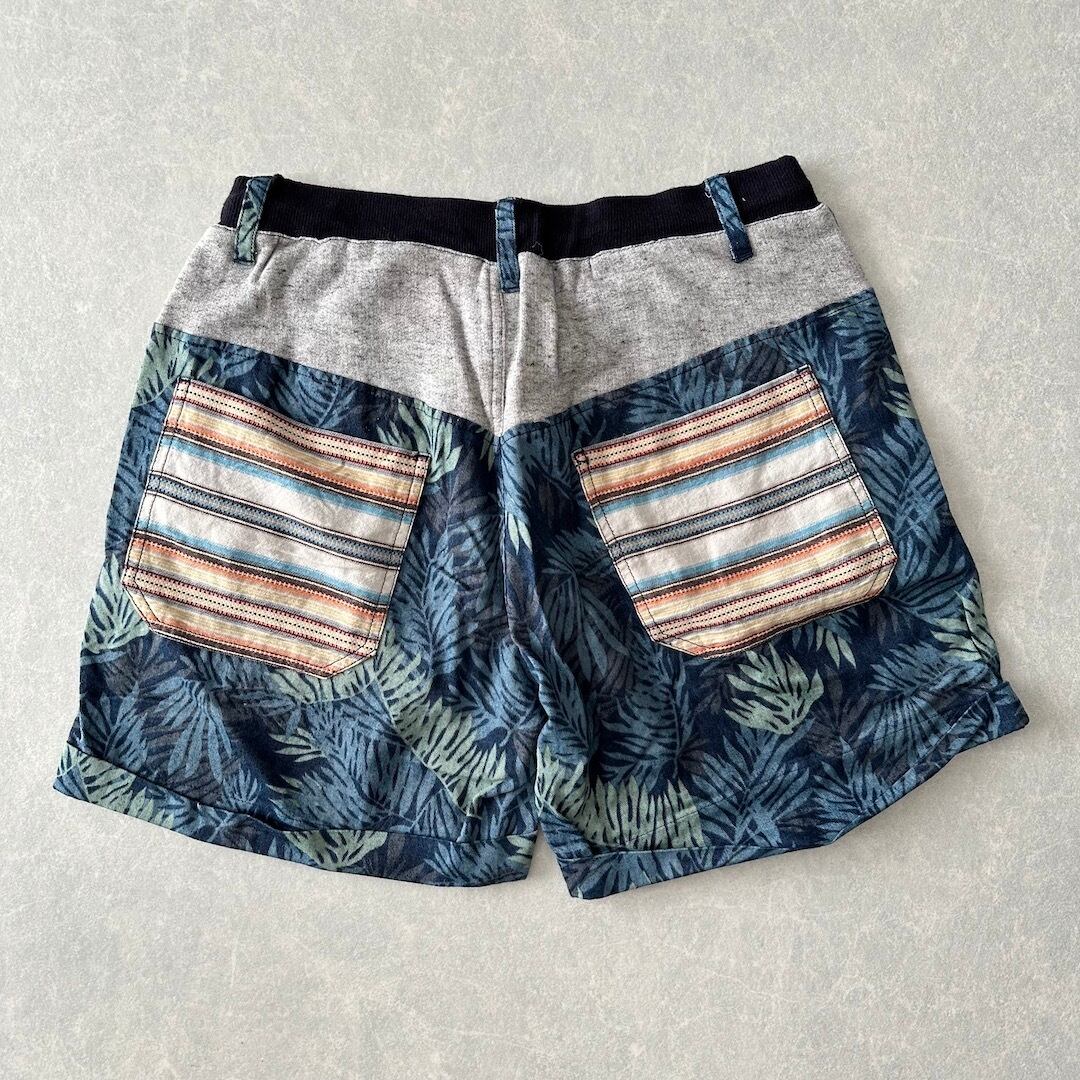リーフ柄 サーフ ショートパンツ 総柄 古着 メンズ 古着男子 サーフ古着 海 ビーチ ブルー トロピカル