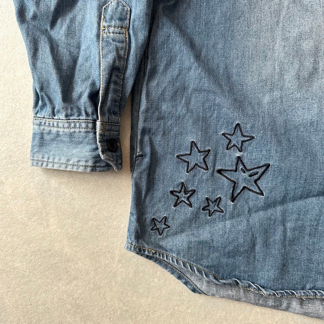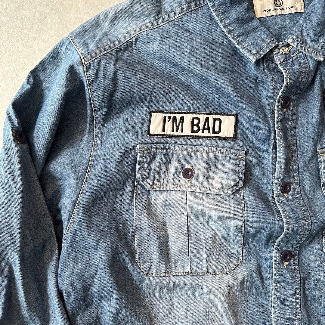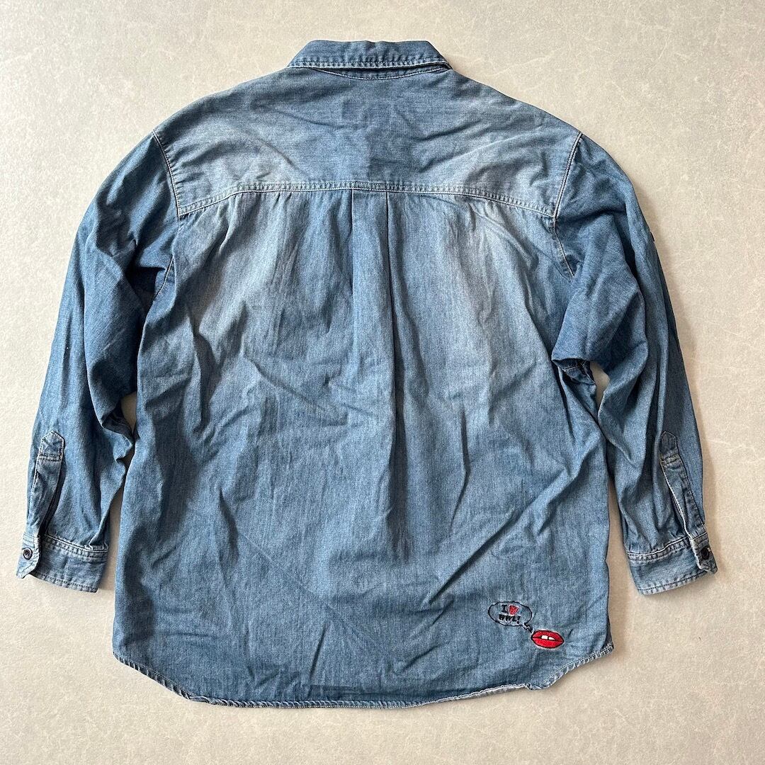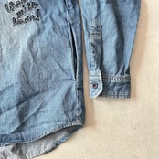 【WORLD WIDE LOVE!】ワッペン 刺繍 デニム シャツ ブルー 1 古着 メンズ 古着男子 ブランド古着 アメカジ古着