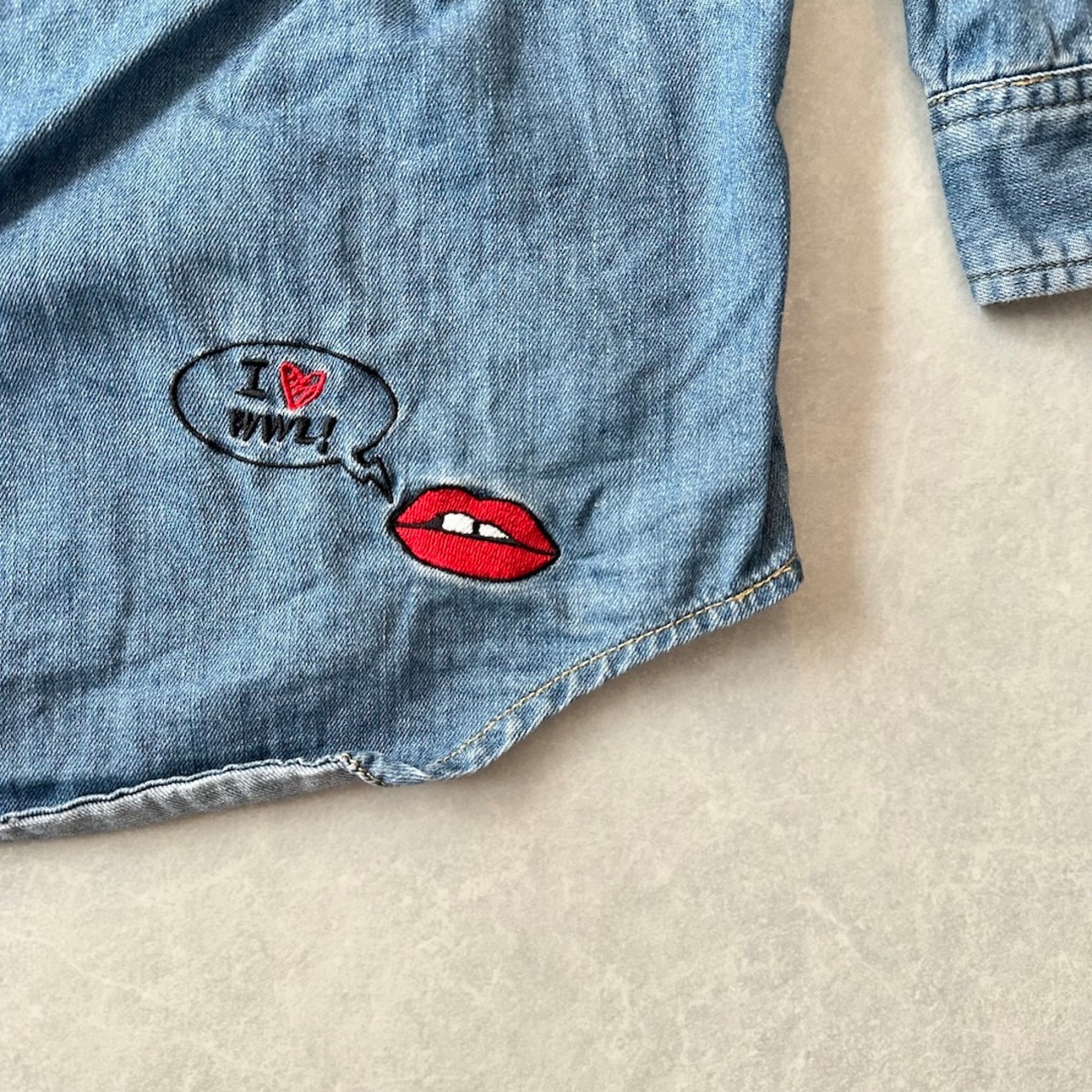 【WORLD WIDE LOVE!】ワッペン刺繍デニムシャツ ブルー 1 古着 メンズ