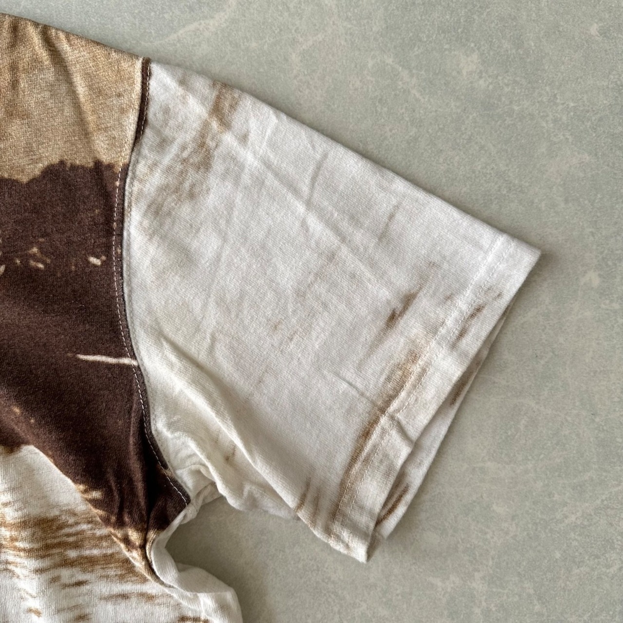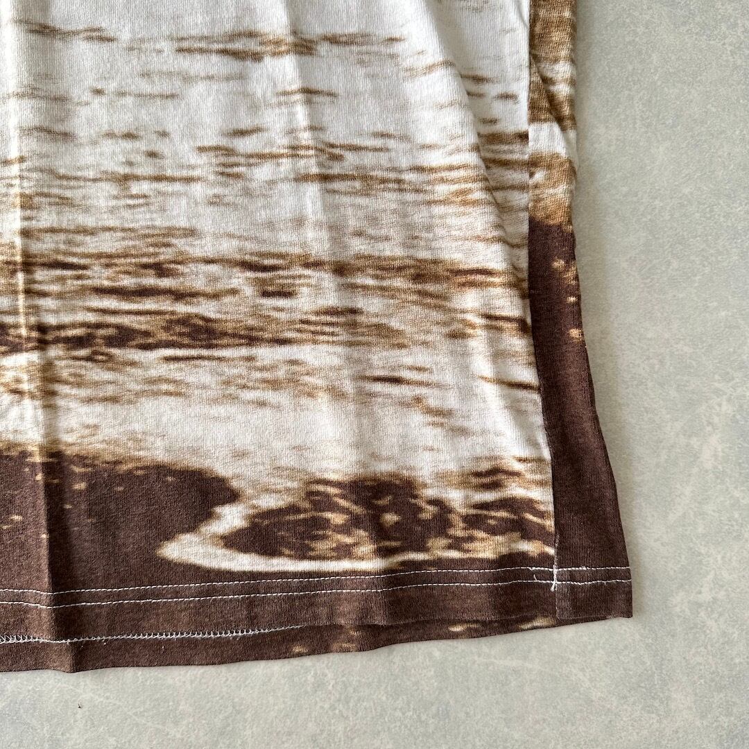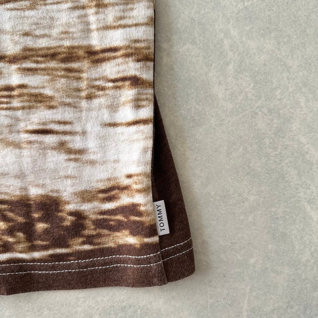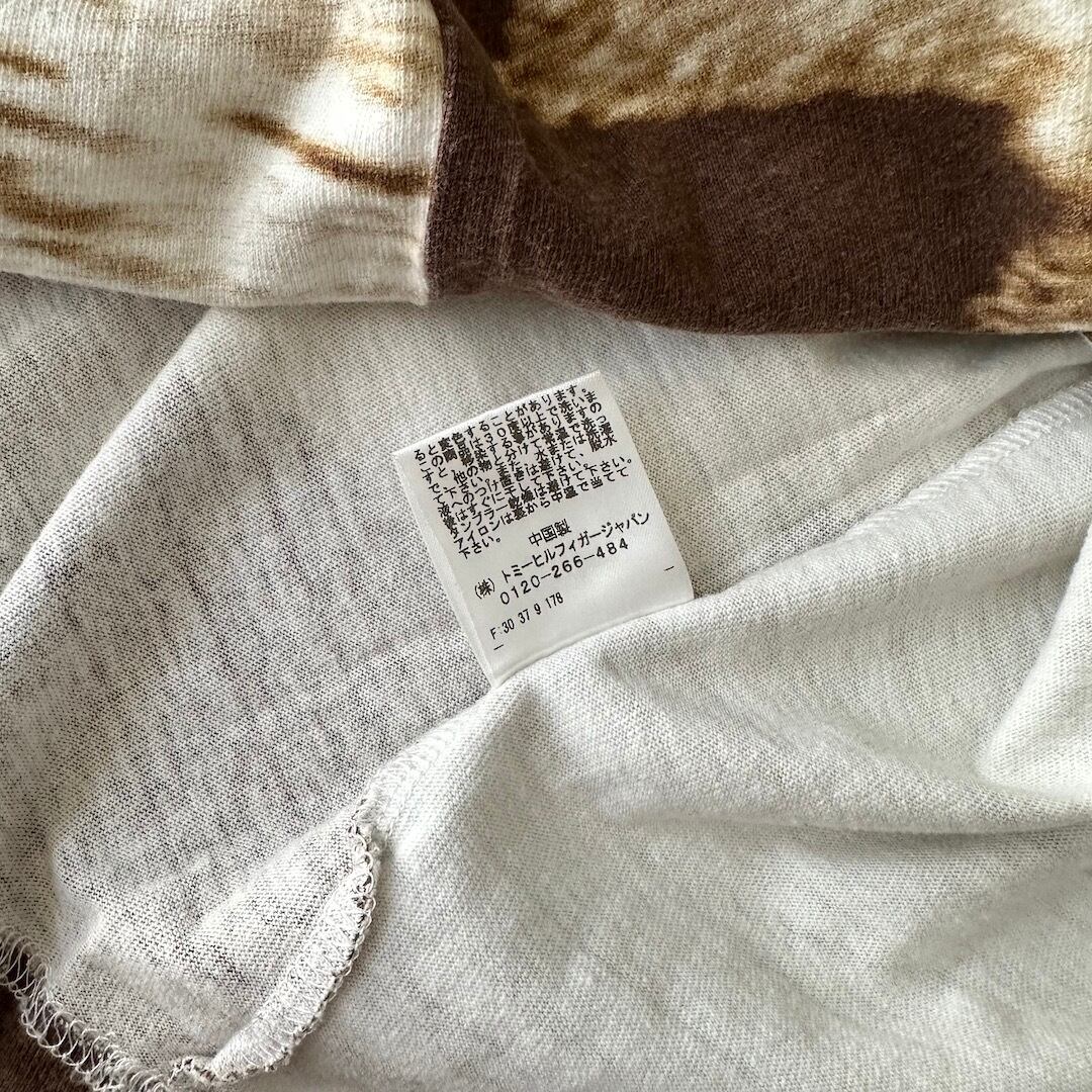 【TOMMY】LIFE ビーチ柄 プリント 半袖Tシャツ 総柄 M 古着 メンズ 古着男子 ブランド古着 アメカジ ベージュ ブラウン
