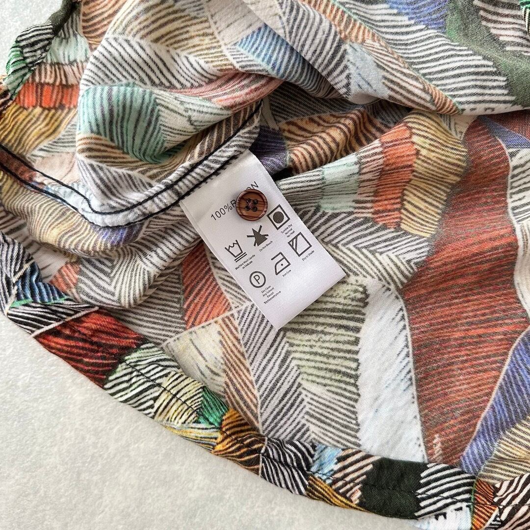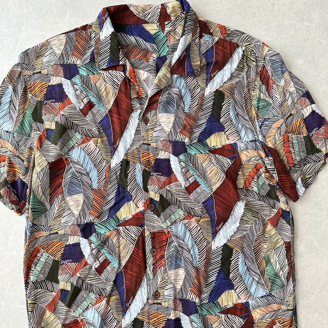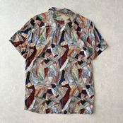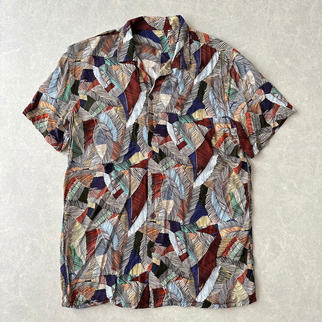 リーフ柄 半袖シャツ 総柄 古着 メンズ 古着男子 サーフ古着 カラフル 海 ビーチ