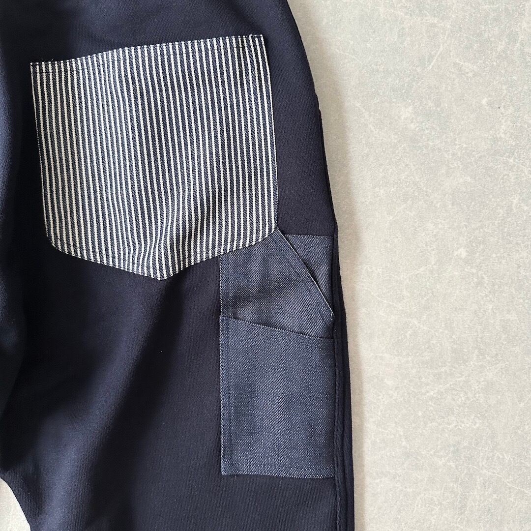 ヒッコリーストライプポケットスウェットパンツ ネイビー L 古着 メンズ 古着男子 未使用品 美品 スポーツミックス