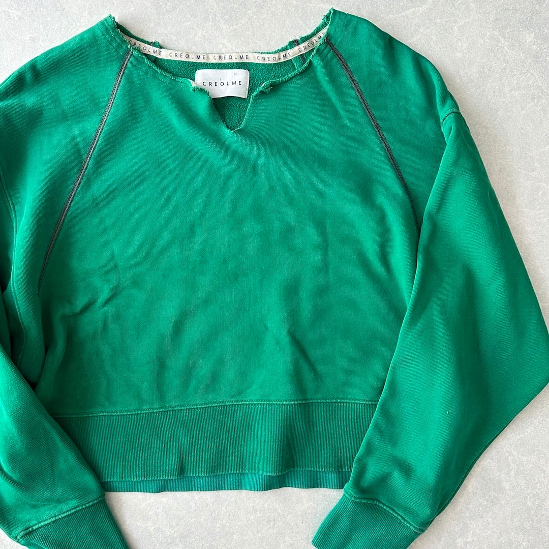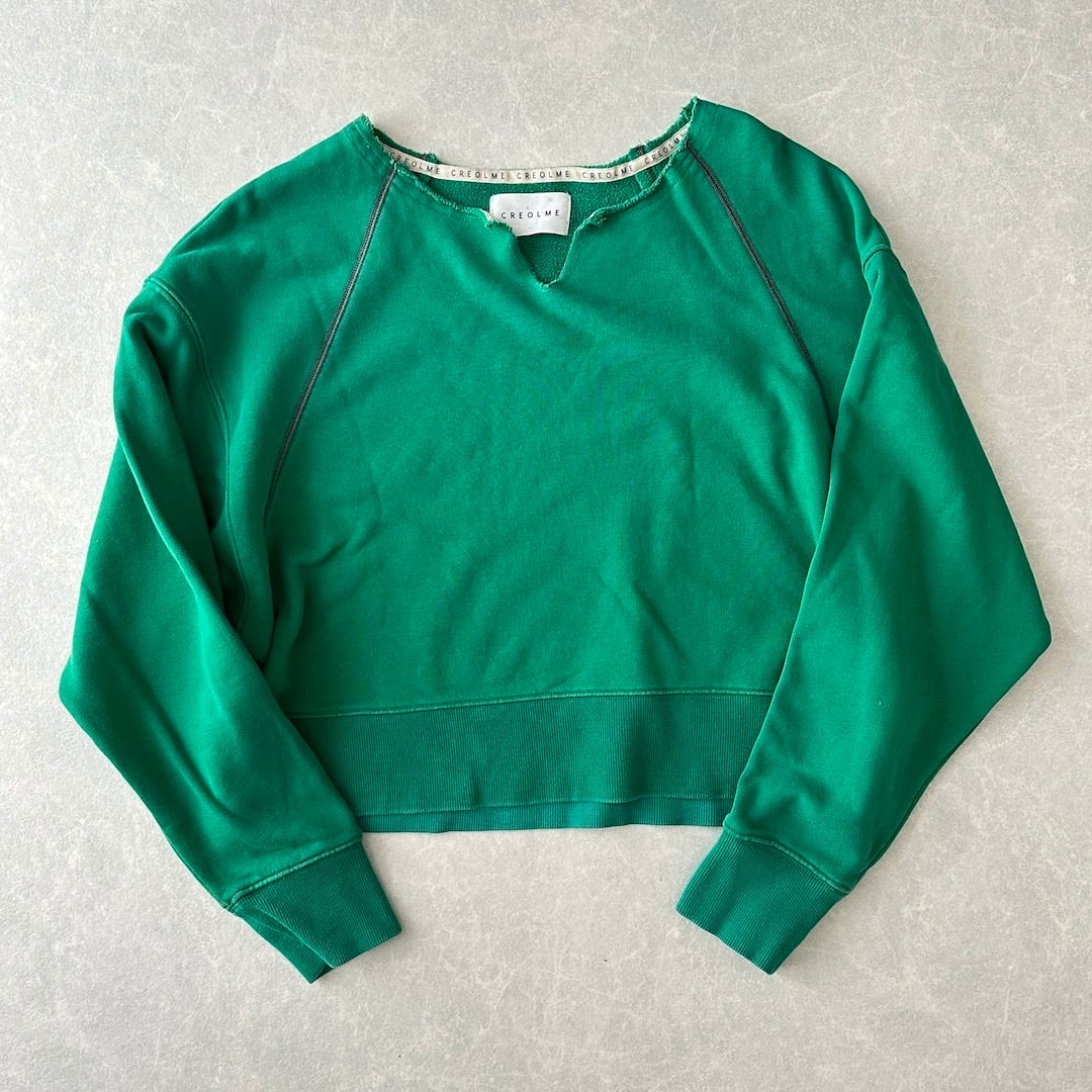 【CREOLME】カレッジロゴプリントショート丈スウェット グリーン F 古着 レディース