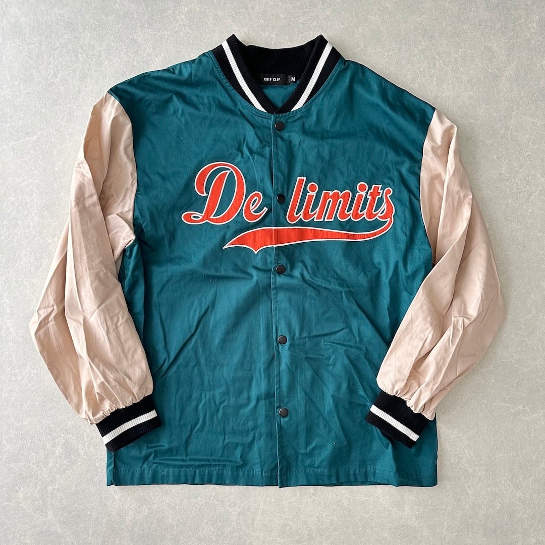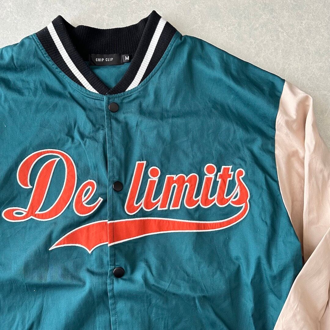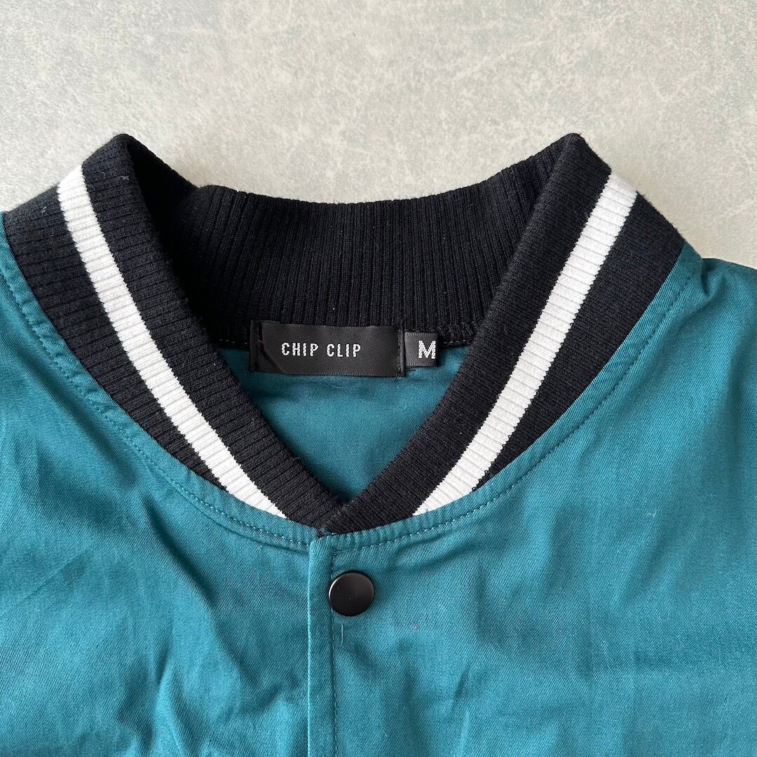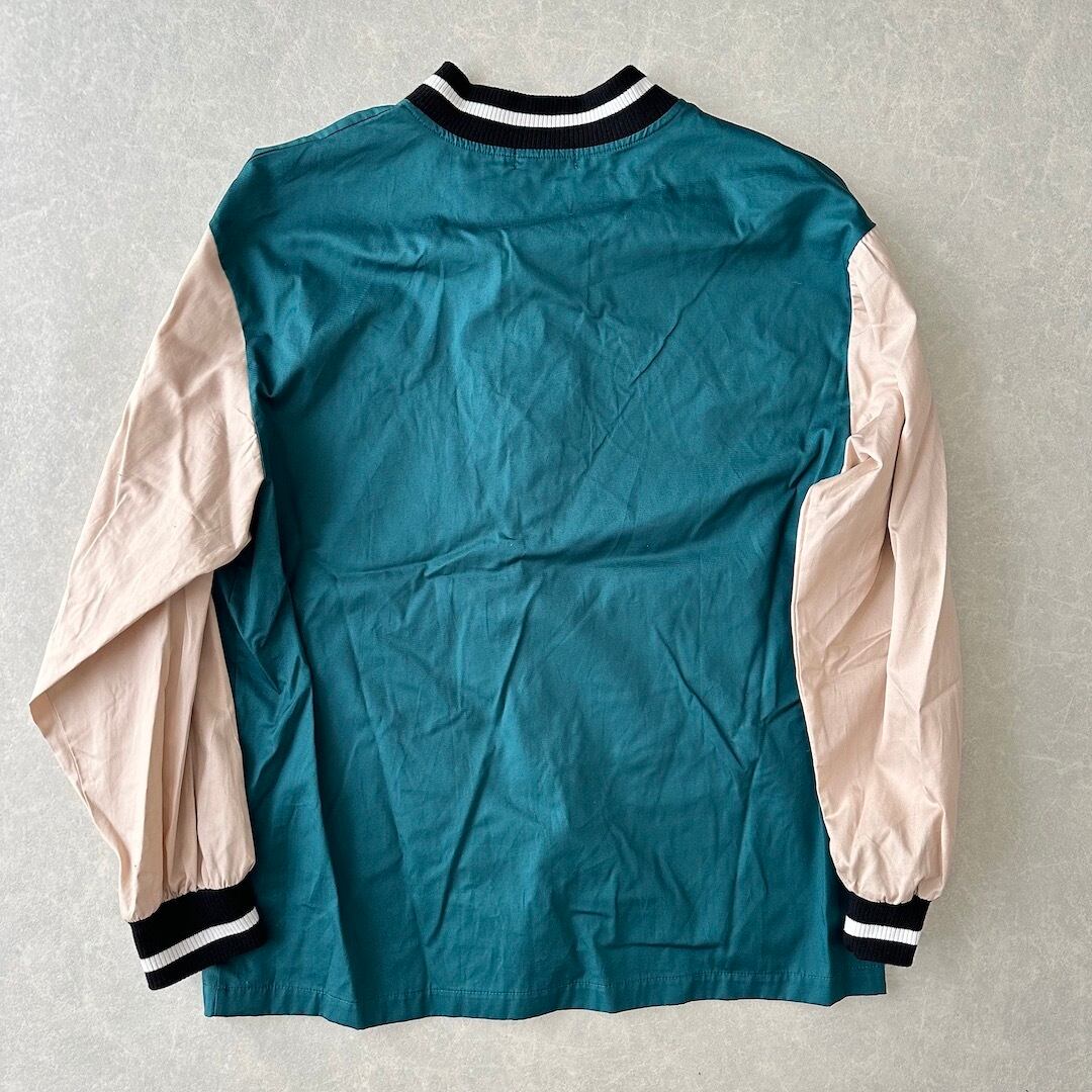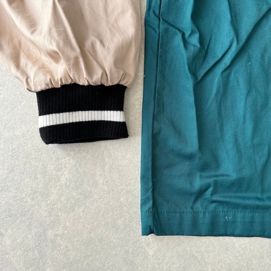 ナイロンスタジャン M グリーン×ベージュ 古着 メンズ アメカジ スポーツ スポーツミックス