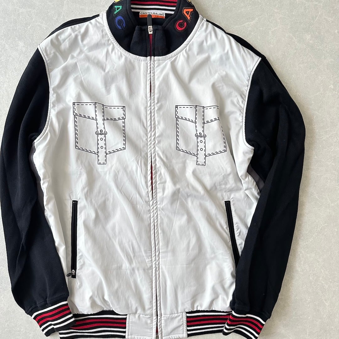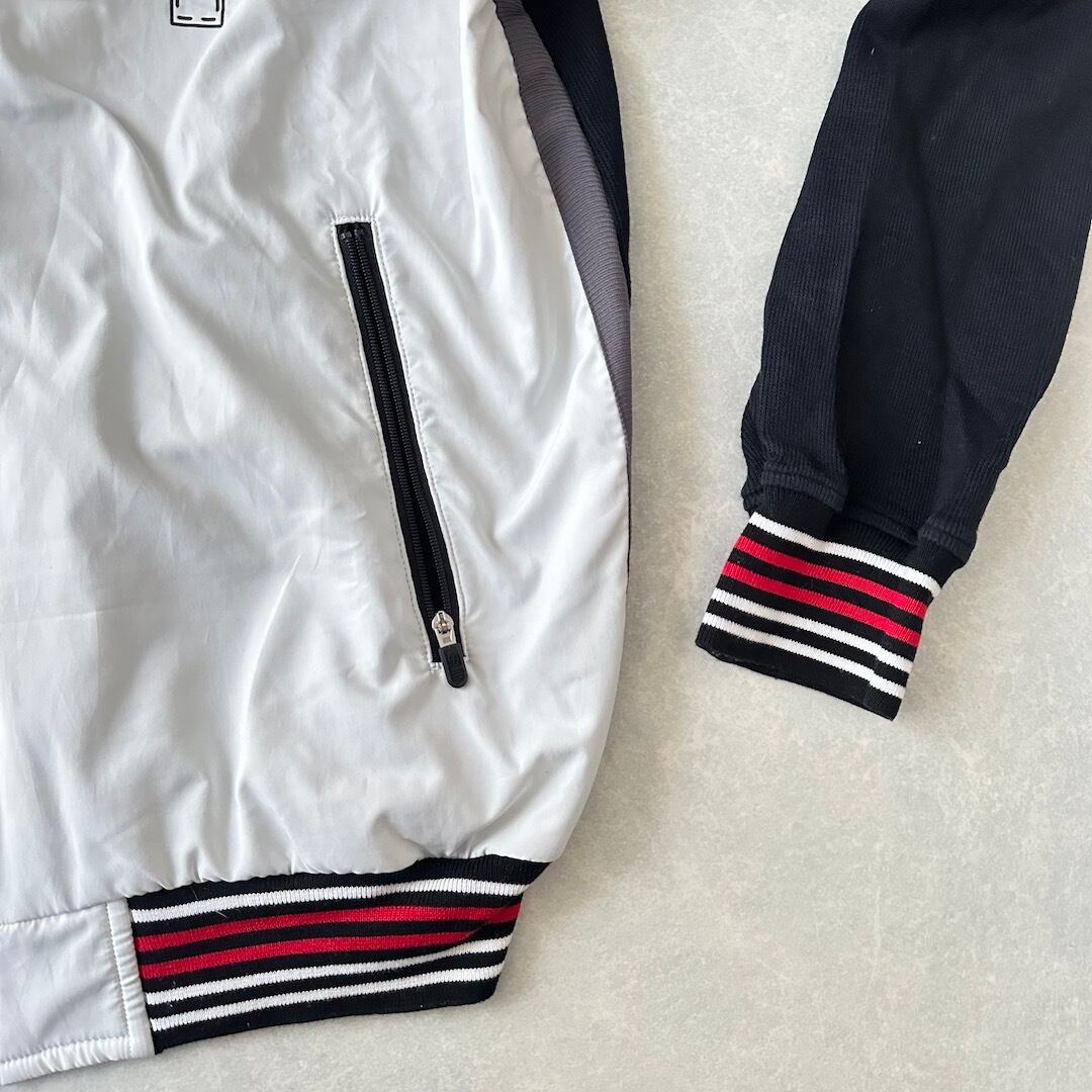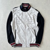 プリントナイロンジップブルゾン ホワイト 4 古着 メンズ スポーツ スポーツミックス ボーダーリブ