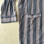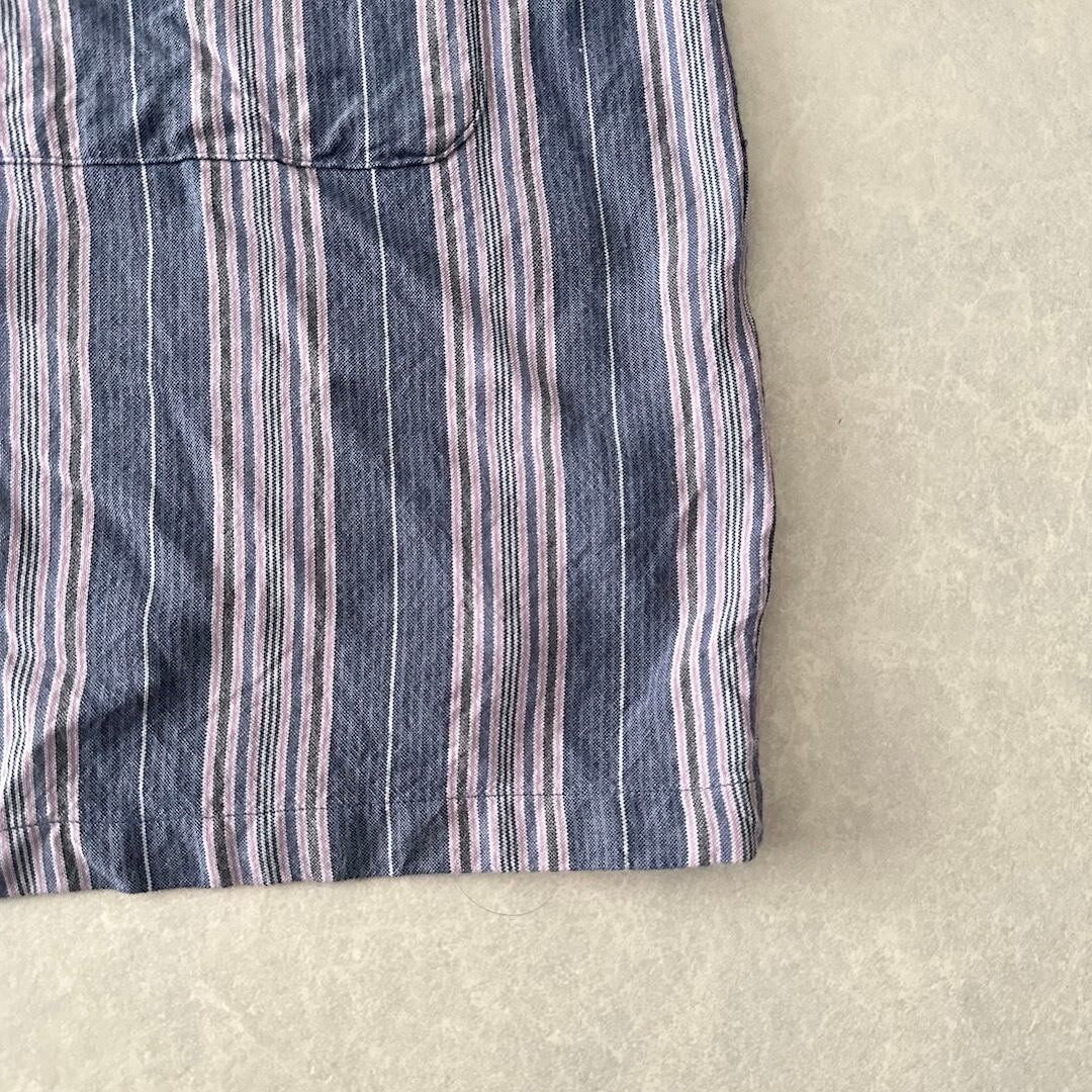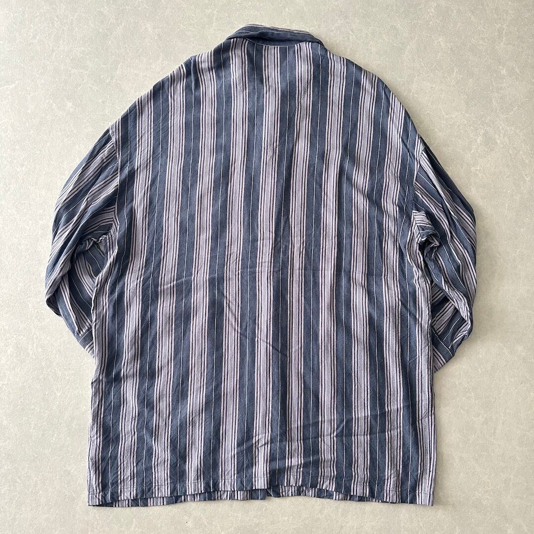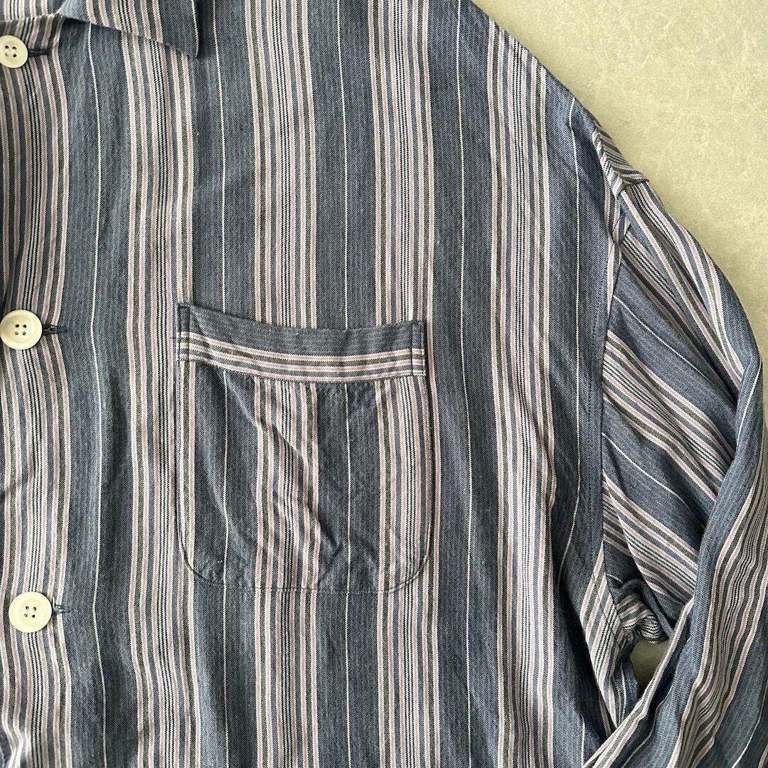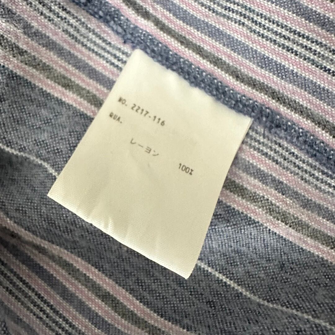 【LAD MUSICIAN】マルチ ストライプ ステンカラー シャツ コート ストライプ柄 44 古着 メンズ 古着男子 ブランド古着 ストリート古着 グレー ピンク ゆるだぼ ゆったり モード