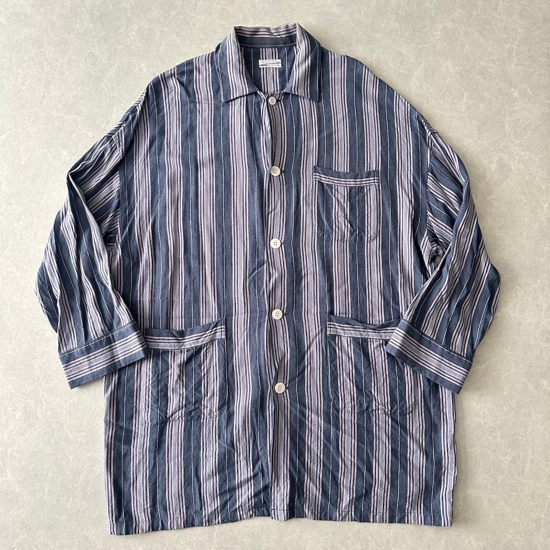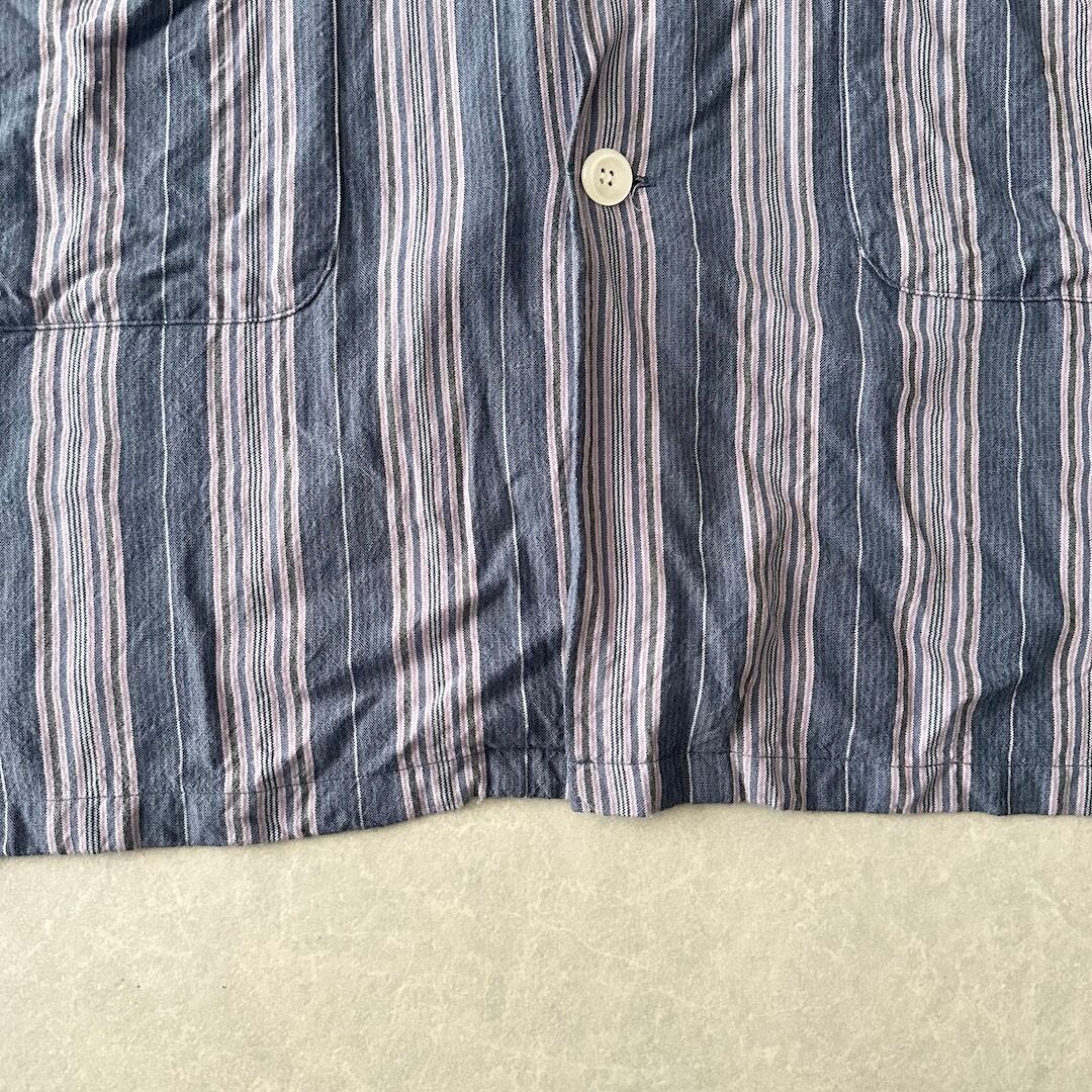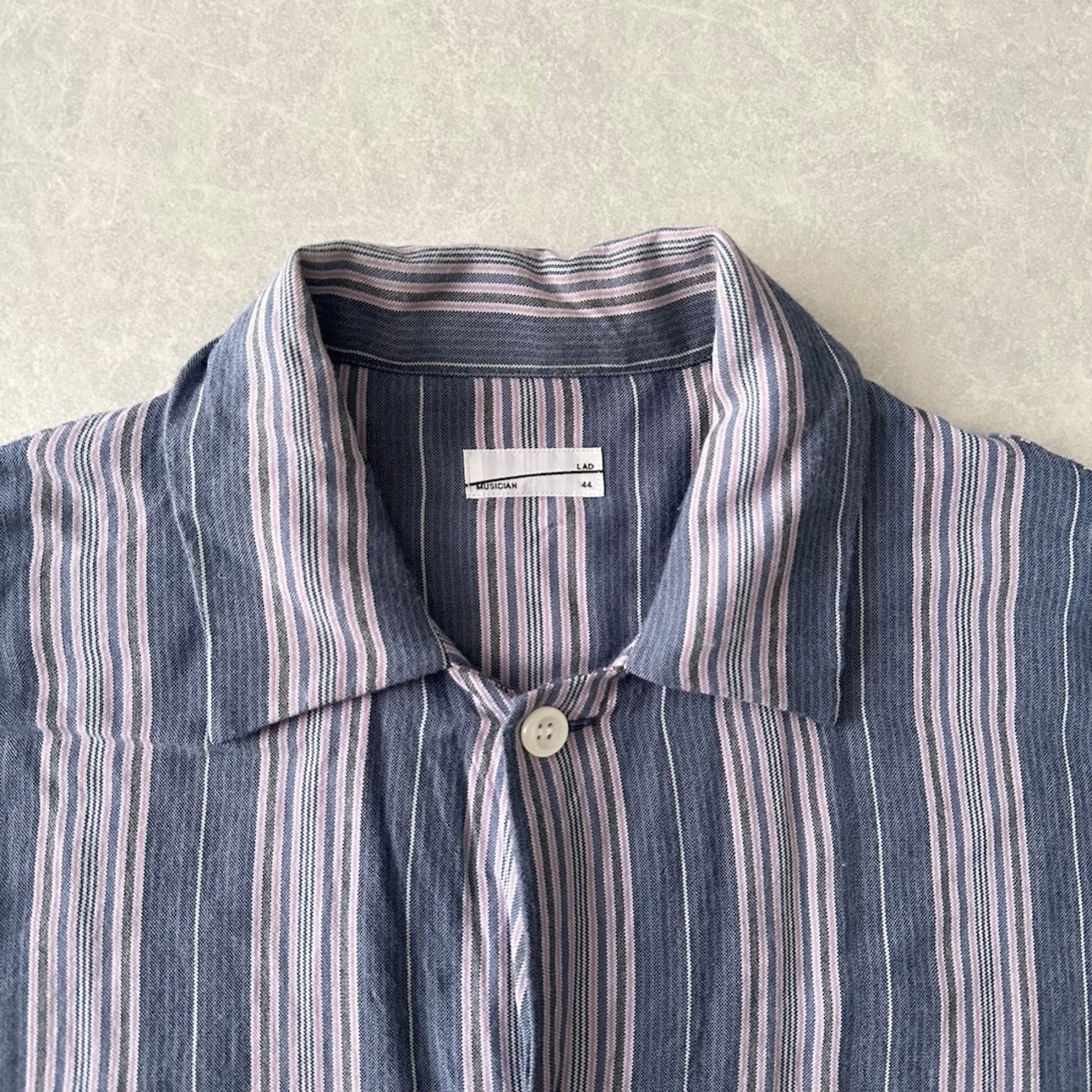【LAD MUSICIAN】マルチストライプステンカラーシャツコート ストライプ柄 44 古着 メンズ
