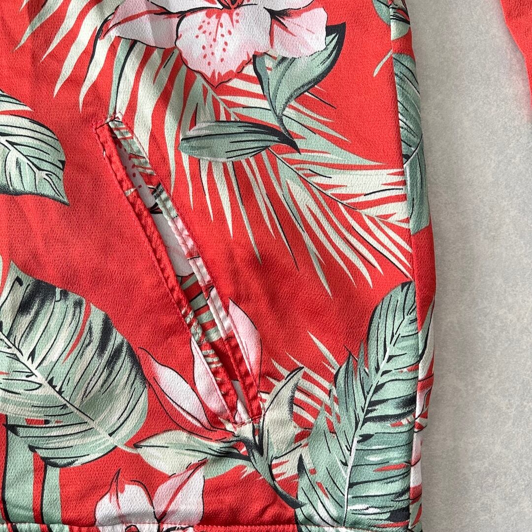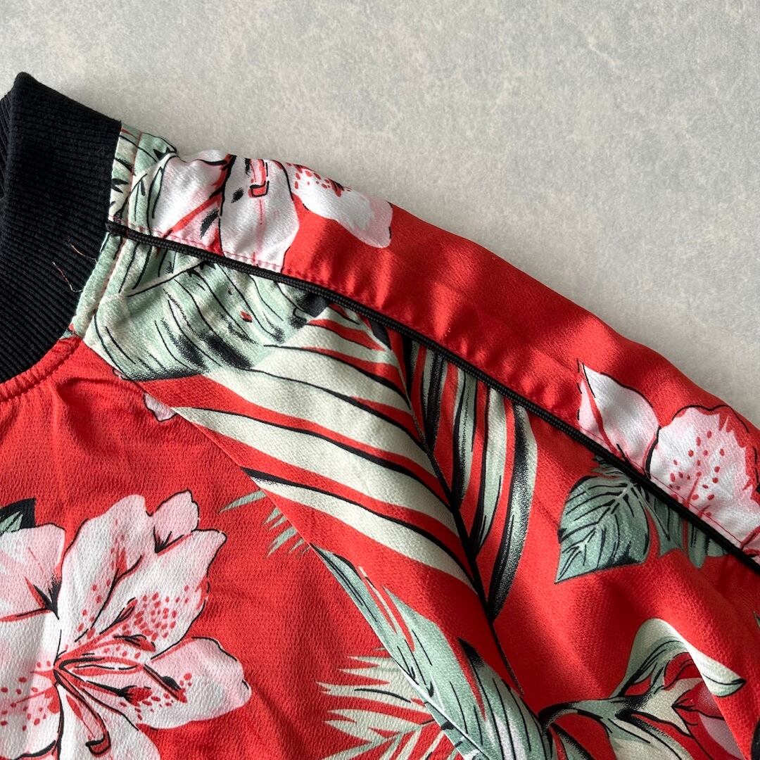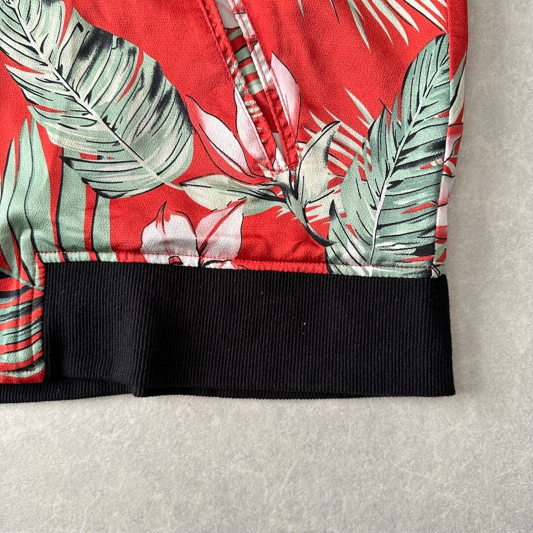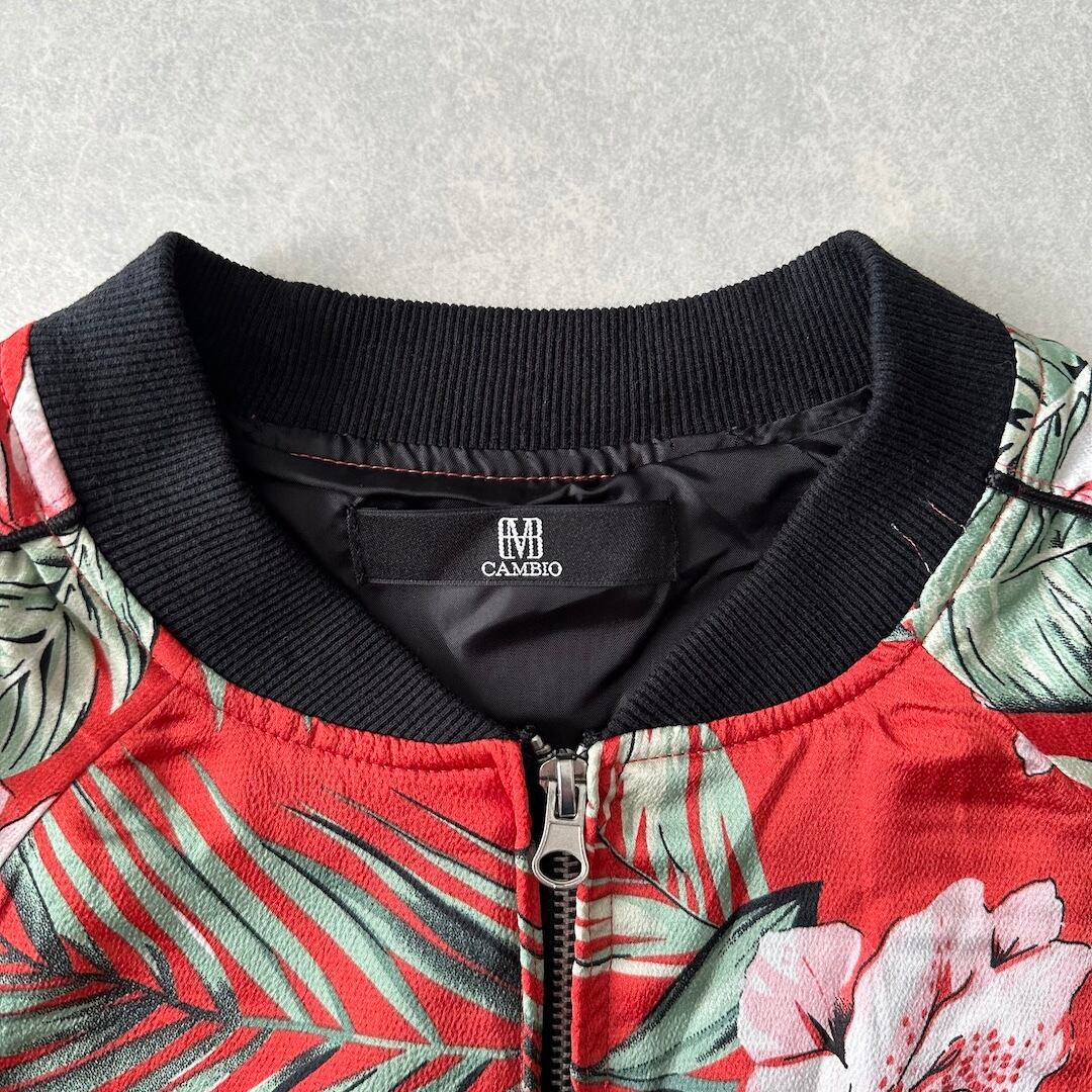 【CAMBIO】ボタニカル柄 リーフ 花柄 ジップ ブルゾン 総柄 L 古着 メンズ 古着男子 ブランド古着 フラワー オレンジ モード アート