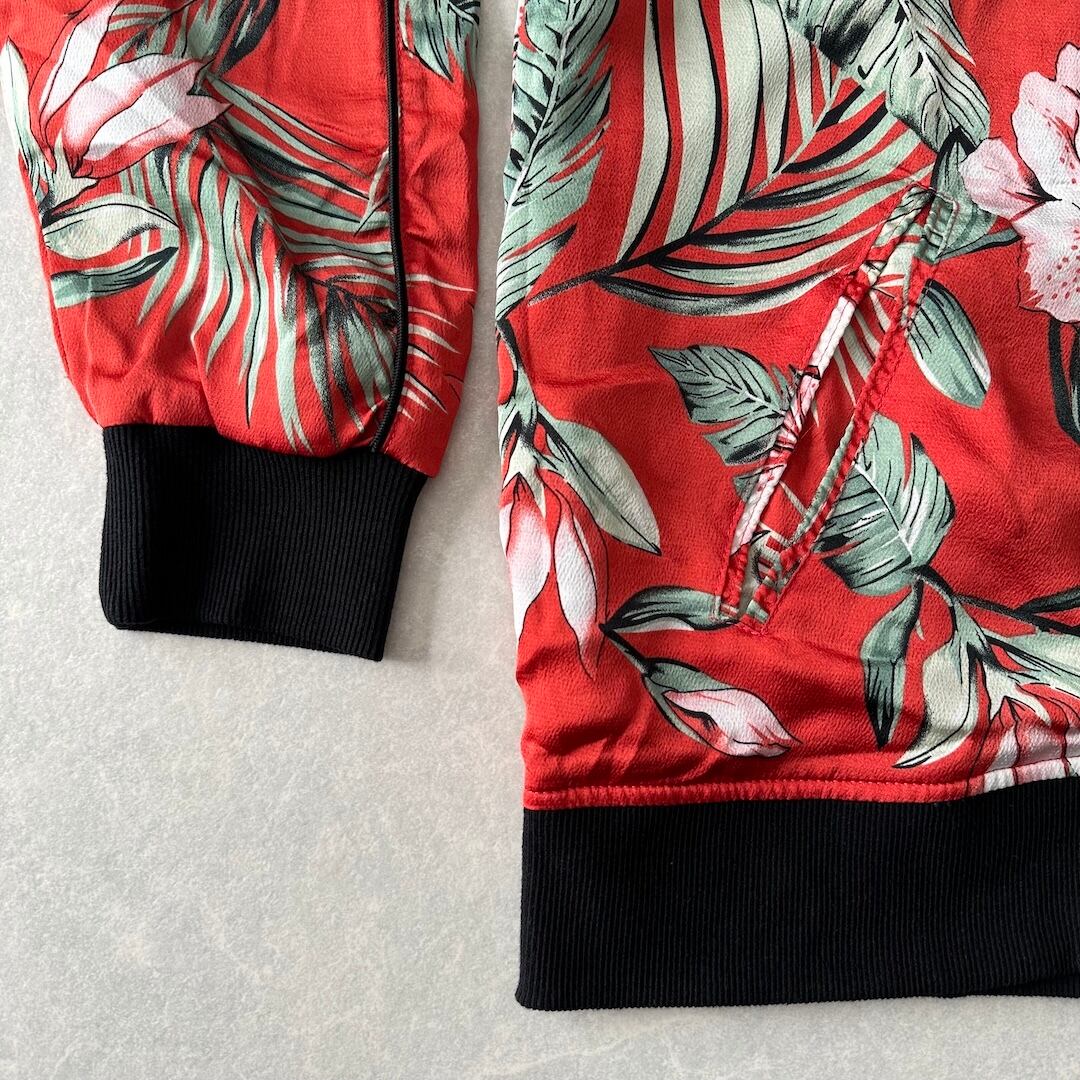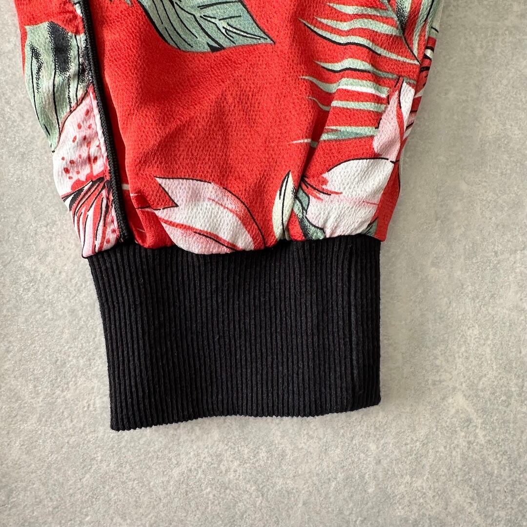 【CAMBIO】ボタニカル柄リーフ花柄ジップブルゾン 総柄 L 古着 メンズ