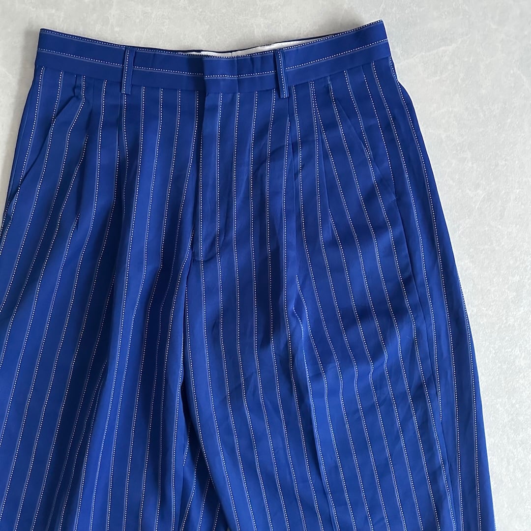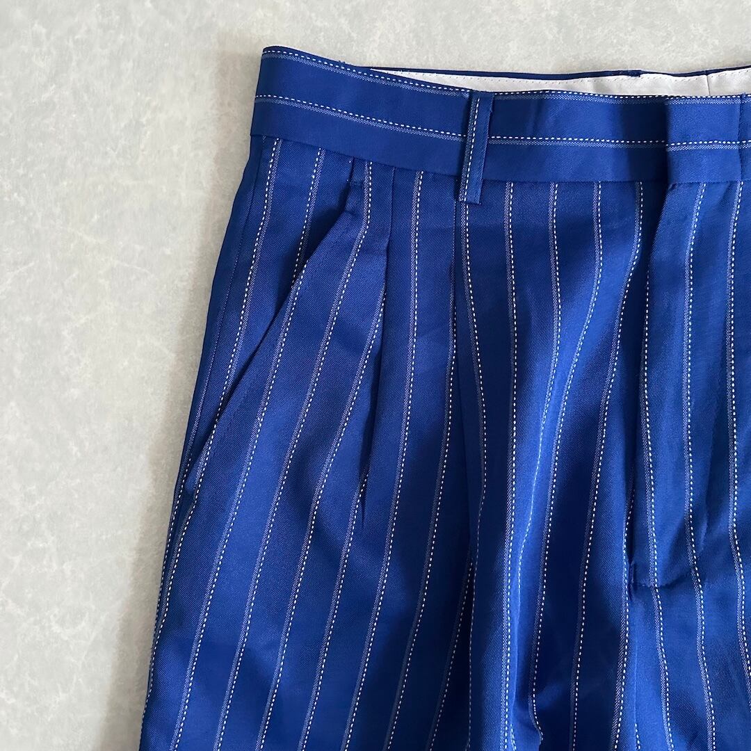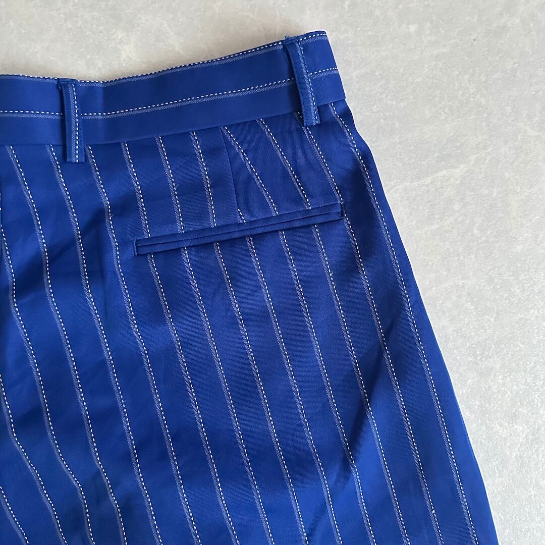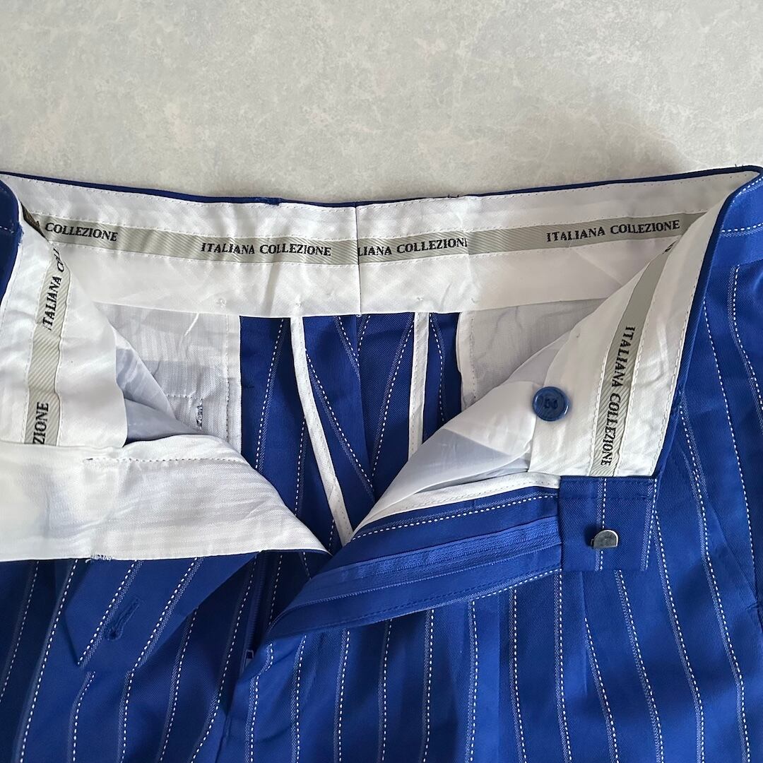 ヴィンテージ風 ピンストライプ ワイドパンツ ストライプ柄 32 古着 メンズ 古着男子 イタリア古着 ブルー 青 イージーパンツ
