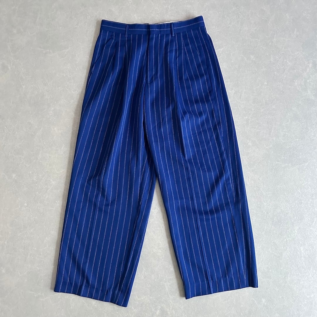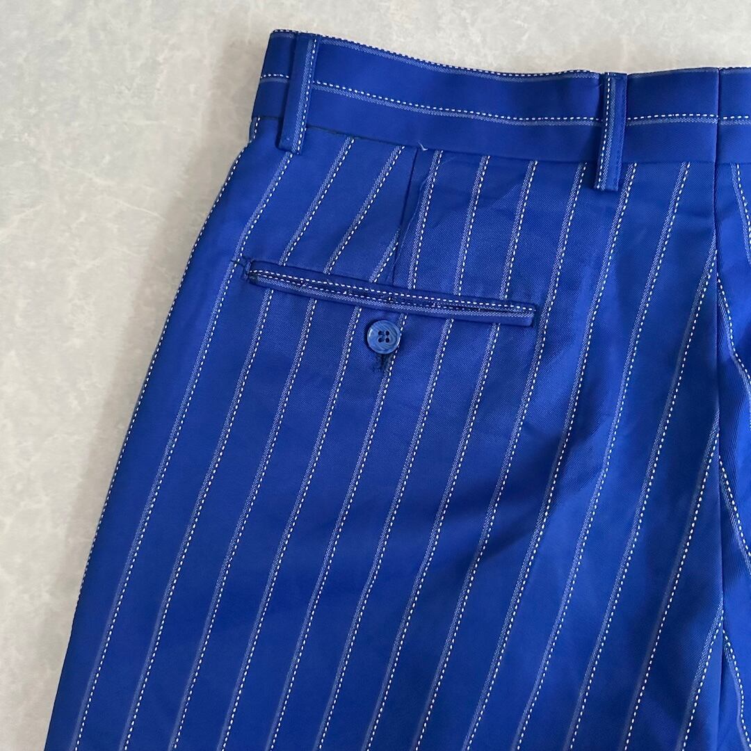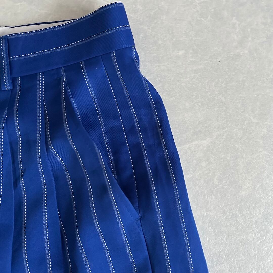 ヴィンテージ風 ピンストライプ ワイドパンツ ストライプ柄 32 古着 メンズ 古着男子 イタリア古着 ブルー 青 イージーパンツ